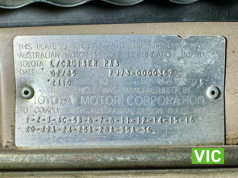 VIN / Chassis No: FJ730000367