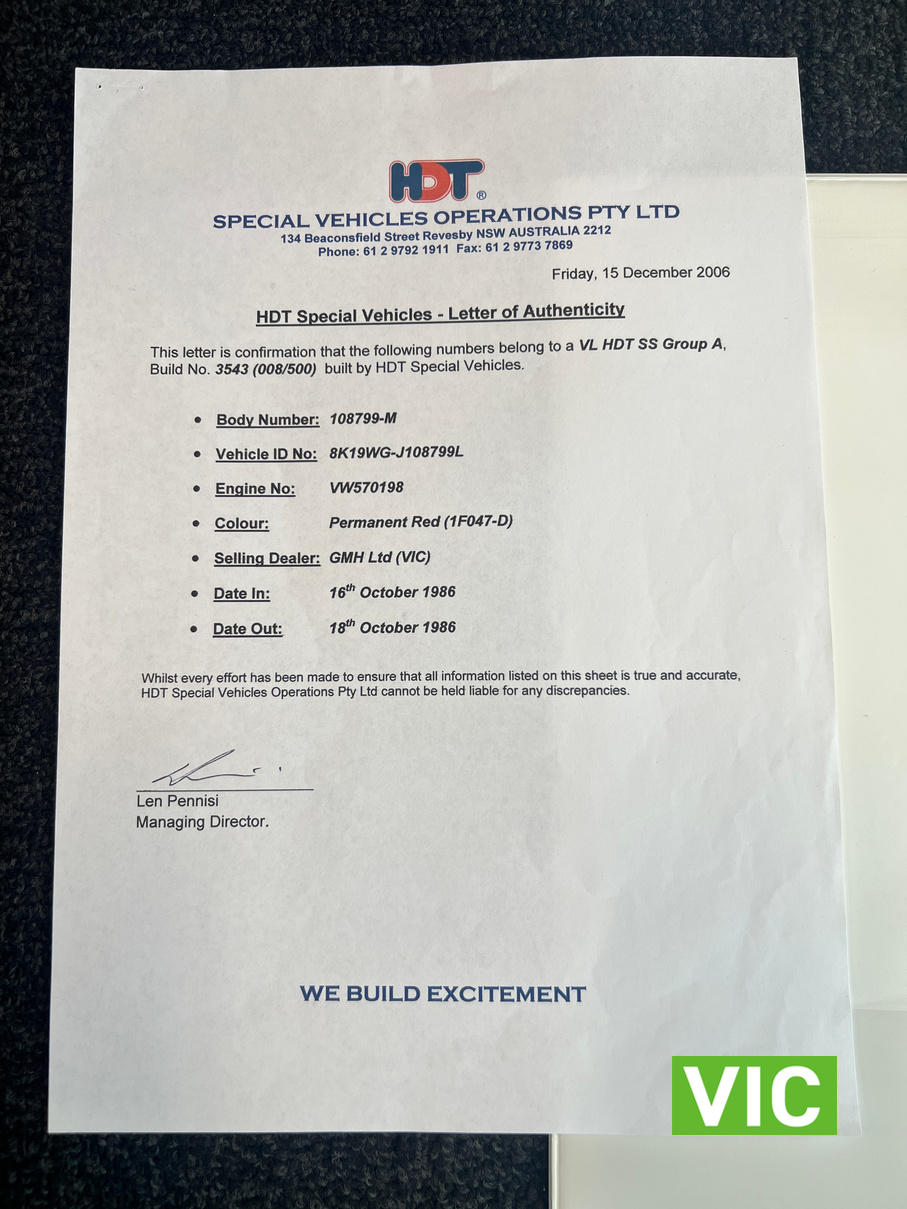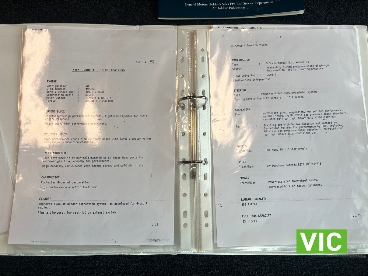 This outstanding example is genuine and is a very early build being number 008. The first 12 VL Group A’s were kept by GMH and then retailed to a dealer. The first 12 cars had the build number plaque on the dashboard instead of the glove box. Flawless inside and out, 109267 Kms with original interior. One look in the flesh and you’ll appreciate it’s outstanding condition. Has all the pedigree the collectors are after, original books and paperwork. Full mechanical rebuild, original matching numbers engine has been stroked to a 355. All new componentry, new tail shaft, refurbished original wheels. New brakes, new master cylinder and heater core. Original crank and all removed original mechanical componentry available to buyer upon request. Extensive receipt folder available to buyer upon request.