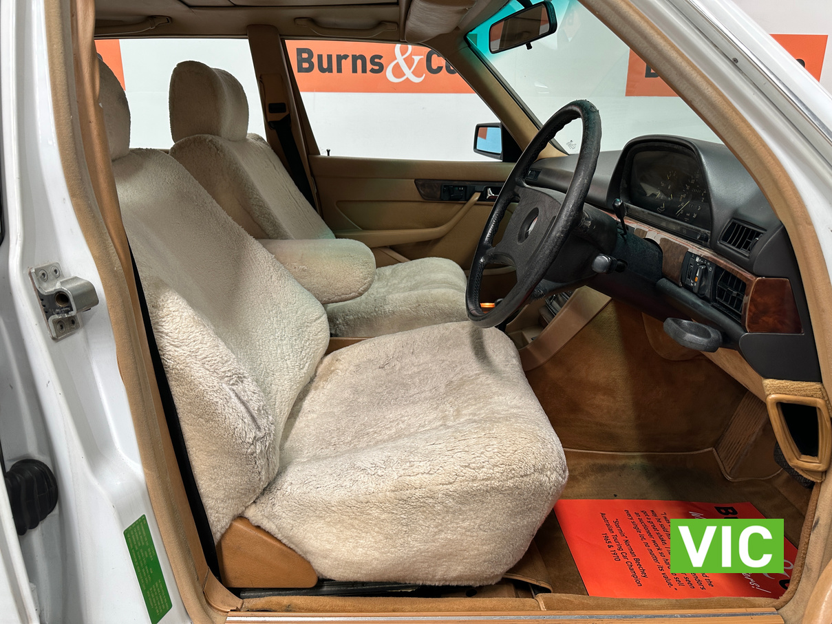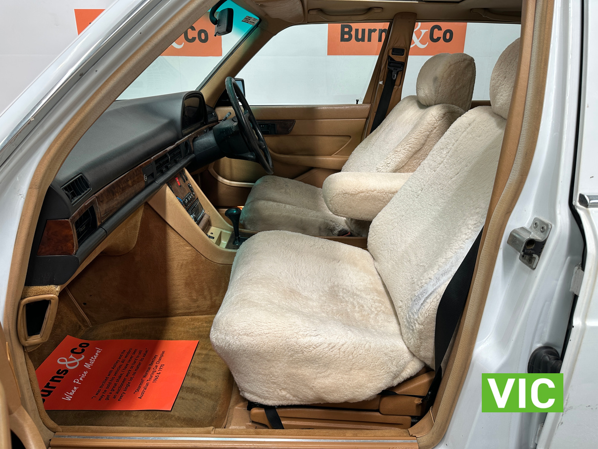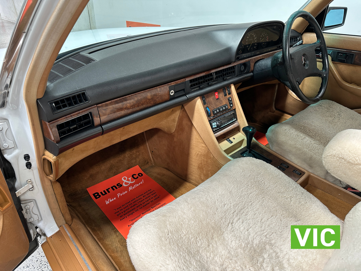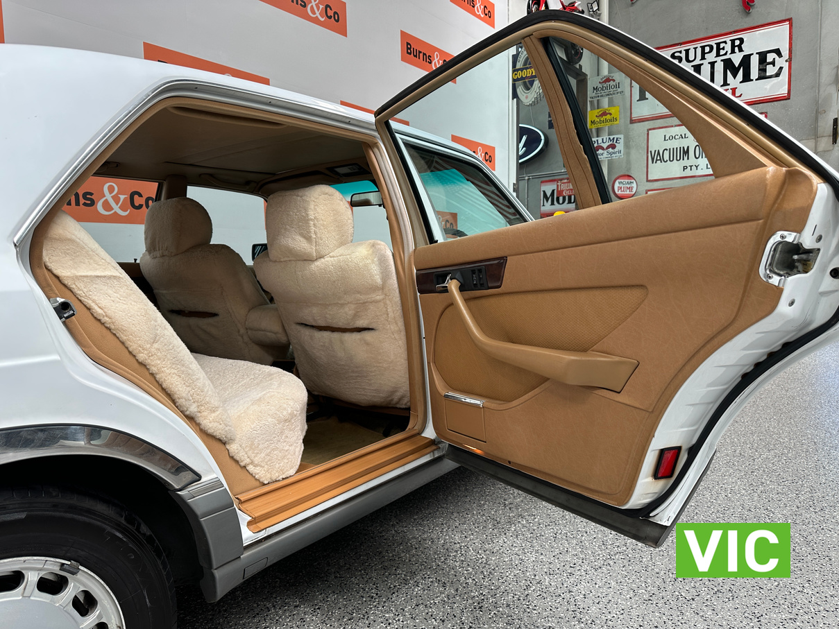 The little old ladies Mercedes Benz! Owned by its late owner for the past 30 years up until she was 84 years of age. This 560 SEL has been well kept and maintained and represents the height of luxury in the late 1980s. Factory fitted V8 paired to a smooth automatic transmission, this example comes complete with the original owner’s manual highlighting the features the car comes with. Open up the doors to the classic interior the iconic Mercedes aroma is still prevalent while the seats have had the sheepskin covers fitted protecting the upholstery. This is a great example and opportunity for either a bridal car or weekend cruiser.