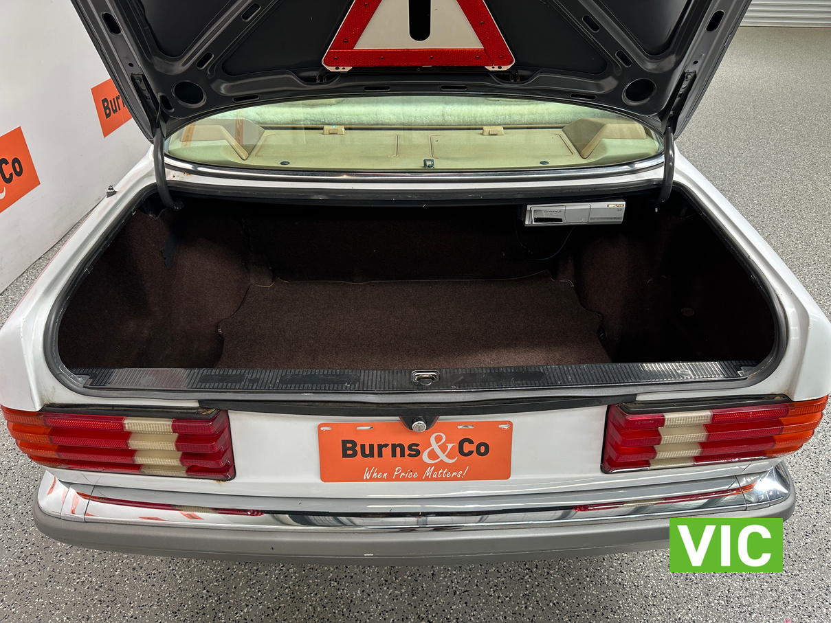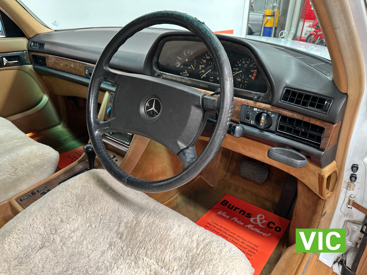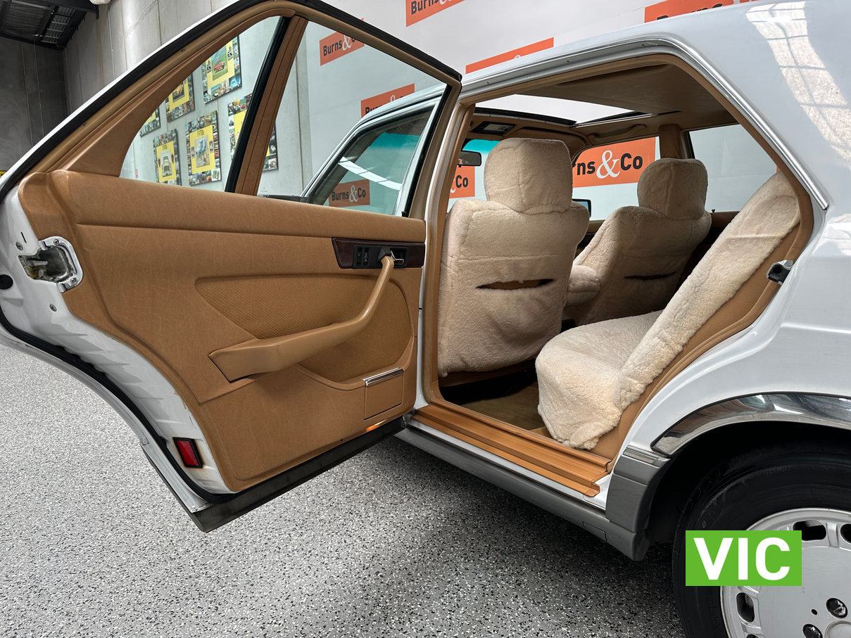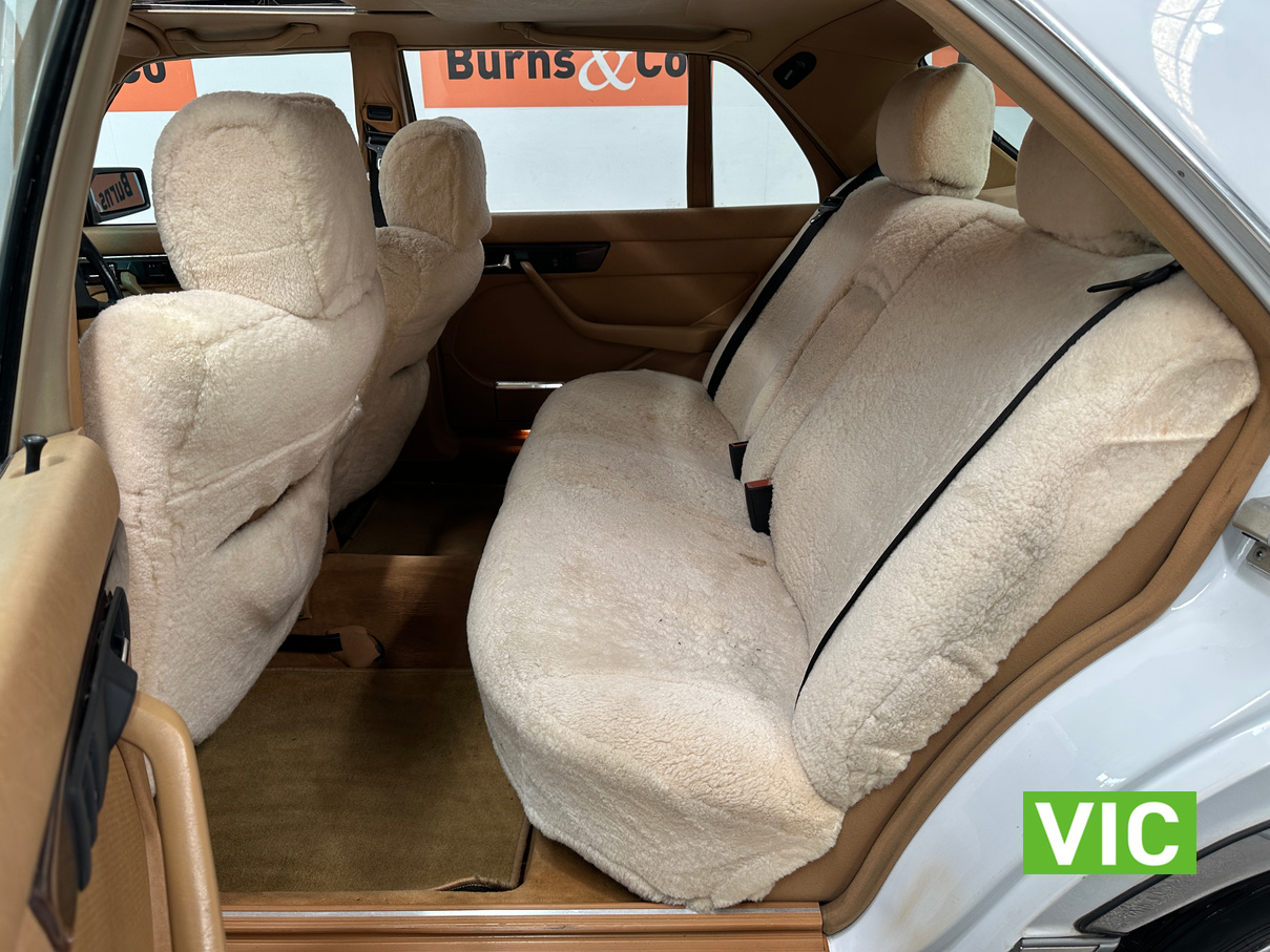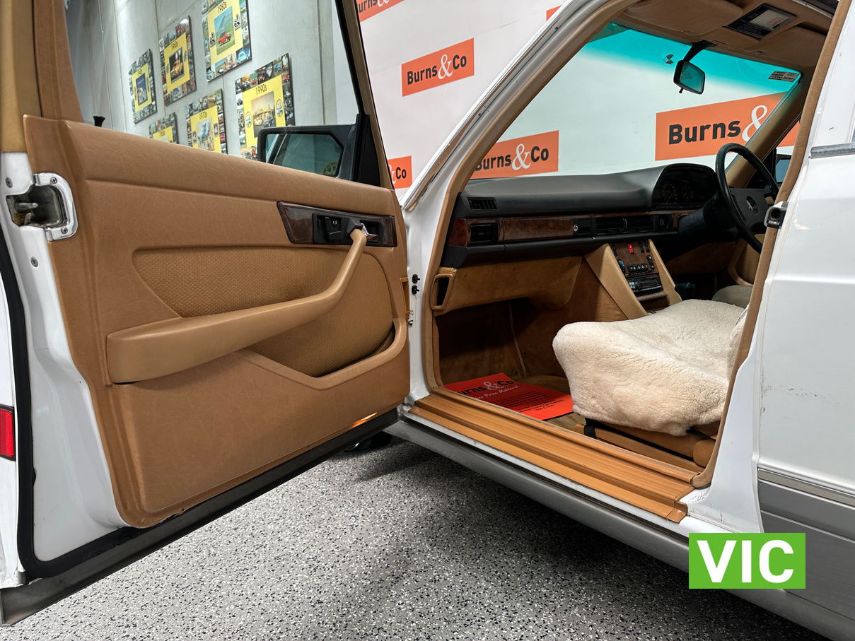 The little old ladies Mercedes Benz! Owned by its late owner for the past 30 years up until she was 84 years of age. This 560 SEL has been well kept and maintained and represents the height of luxury in the late 1980s. Factory fitted V8 paired to a smooth automatic transmission, this example comes complete with the original owner’s manual highlighting the features the car comes with. Open up the doors to the classic interior the iconic Mercedes aroma is still prevalent while the seats have had the sheepskin covers fitted protecting the upholstery. This is a great example and opportunity for either a bridal car or weekend cruiser.