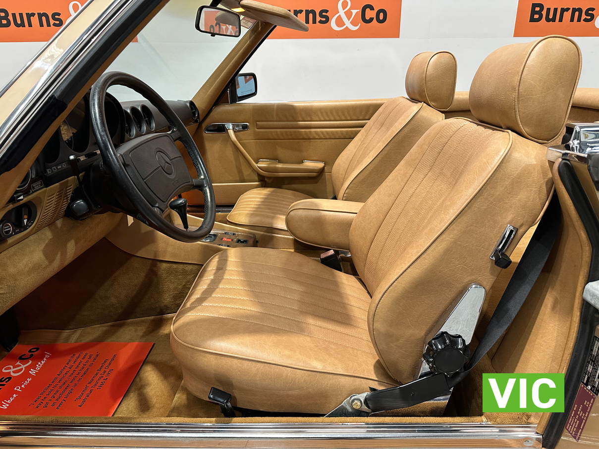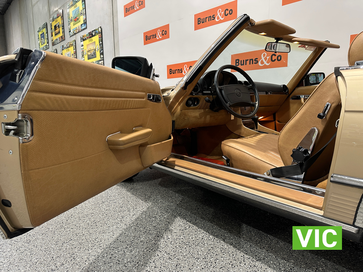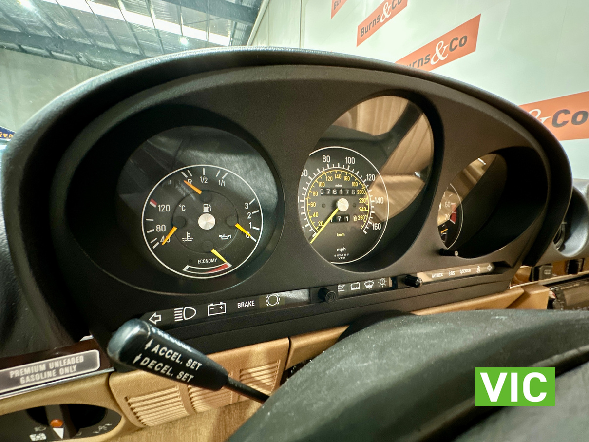 This example is fully optioned including factory chrome accent package. A 2 owner car (imported by the current owner approx. 10 years) with just 76000 original miles on the clock. Champagne metallic exterior with Palomino leather interior trim. Comes with books (see photos). Features include first aid kit, original radio in boot, 5.6lt V8 mechanical injection, high octane, less than 500kms original spare.