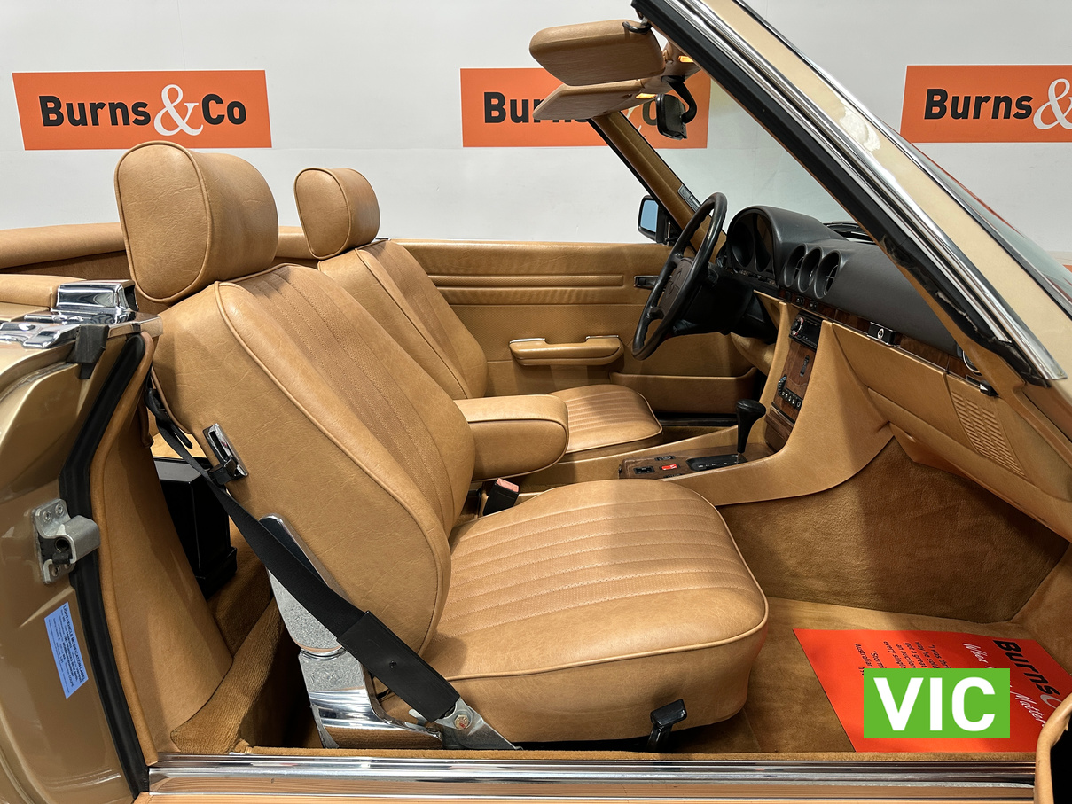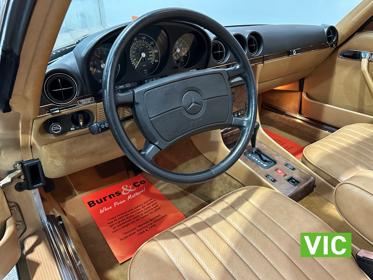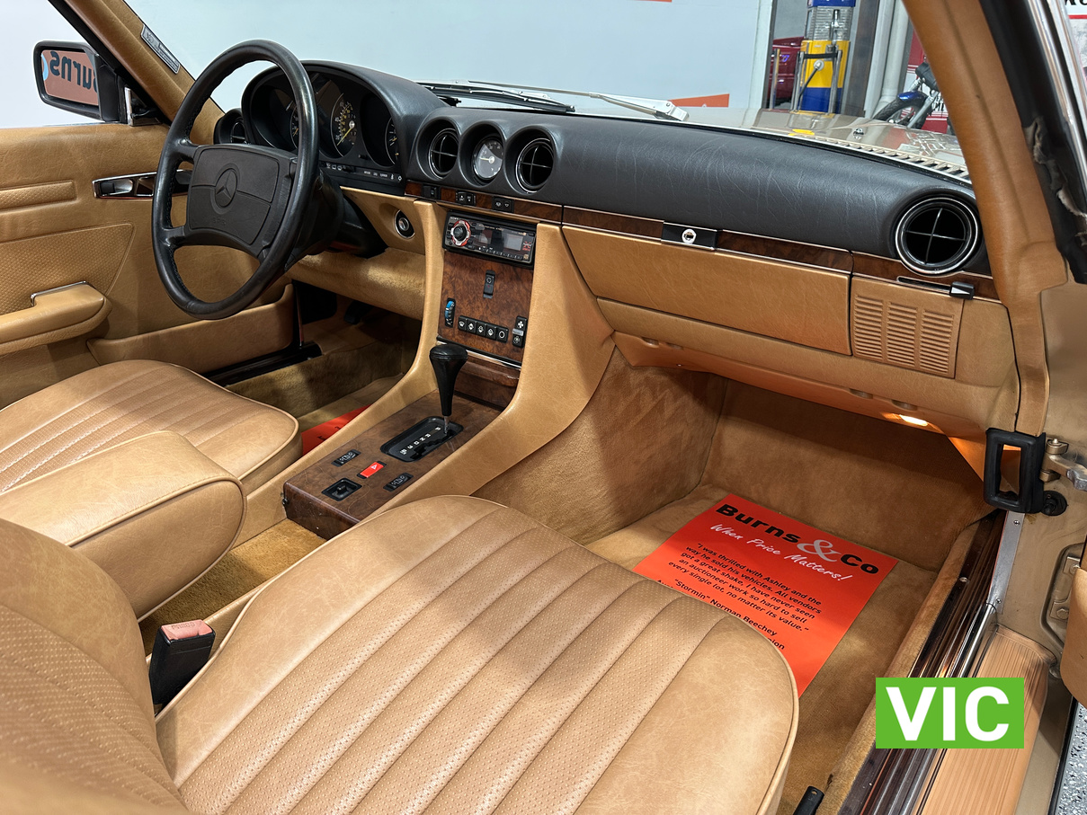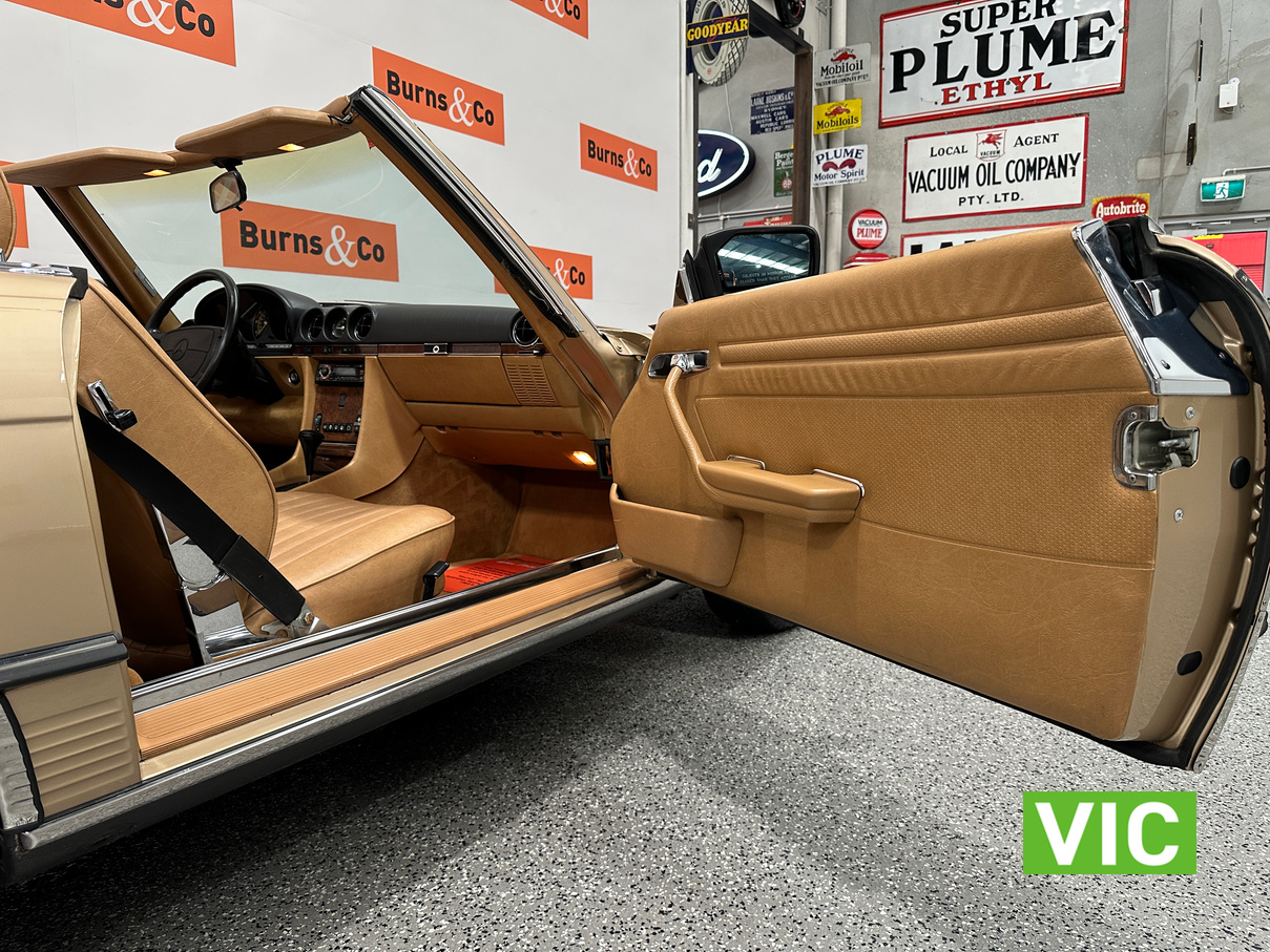 This example is fully optioned including factory chrome accent package. A 2 owner car (imported by the current owner approx. 10 years) with just 76000 original miles on the clock. Champagne metallic exterior with Palomino leather interior trim. Comes with books (see photos). Features include first aid kit, original radio in boot, 5.6lt V8 mechanical injection, high octane, less than 500kms original spare.
