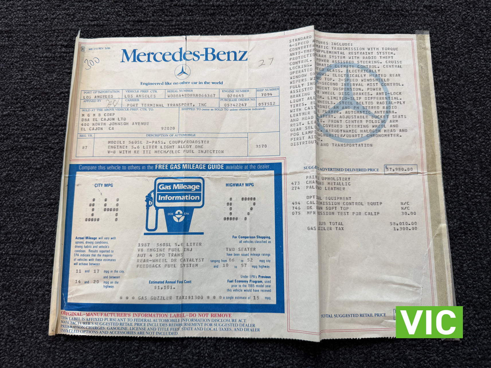 The 1987 Mercedes-Benz 560SL is widely considered the pinnacle of the R107 chassis (1971–1989), offering the most refined performance and modern safety features of the series. German engineering at its best.