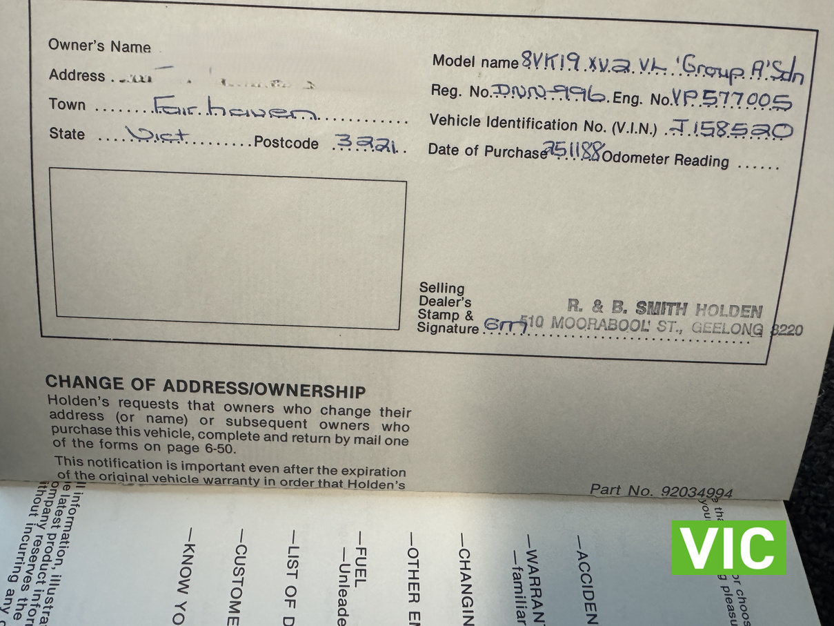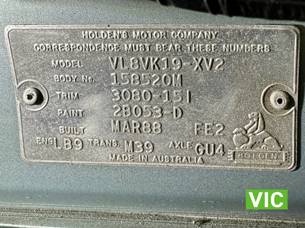 Complete with the original books, this is a matching numbers example sold new by R & B Smith Holden of Geelong on the 25/11/1988 to Mr R T Heffernan of Fair Haven. Built in Melbourne in March 1988 this is one of the best original preserved examples we’ve seen.