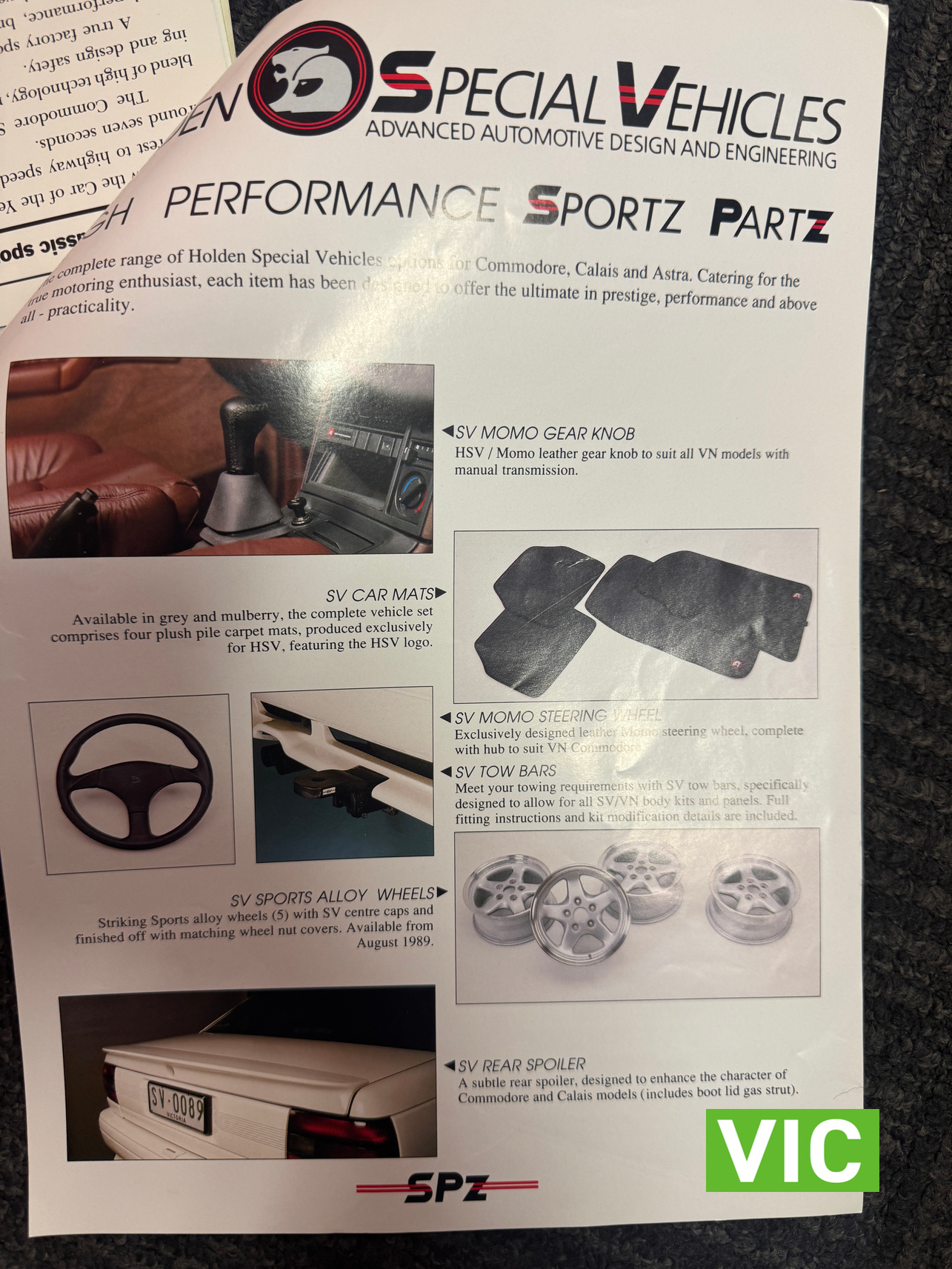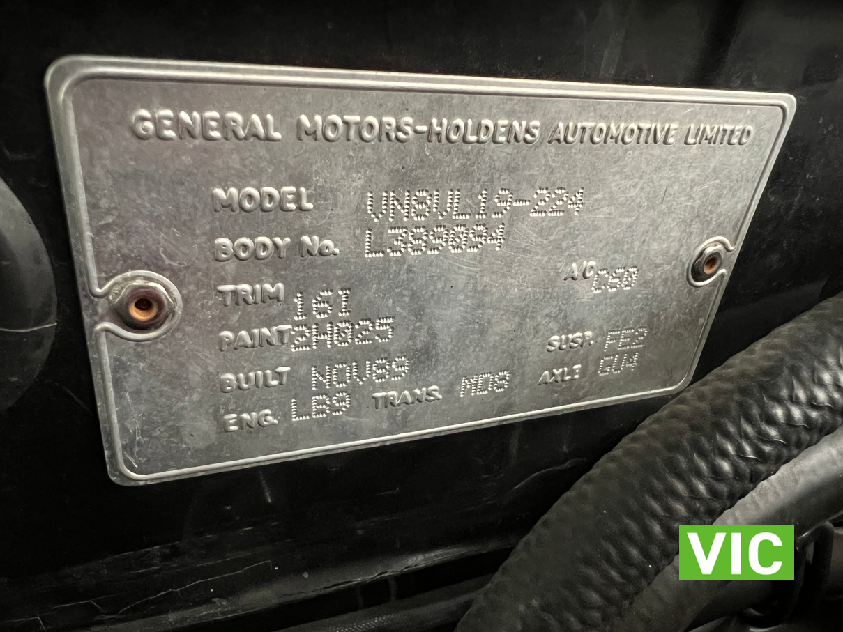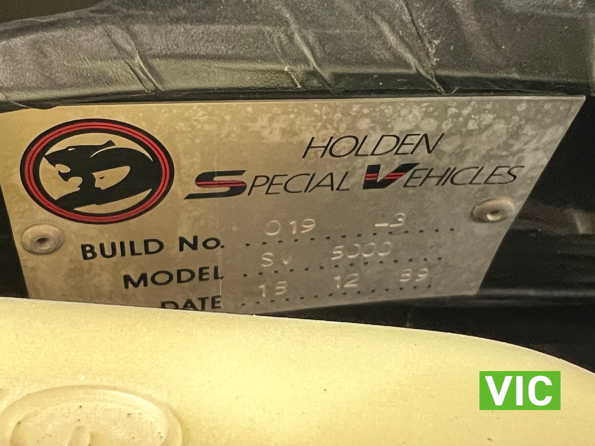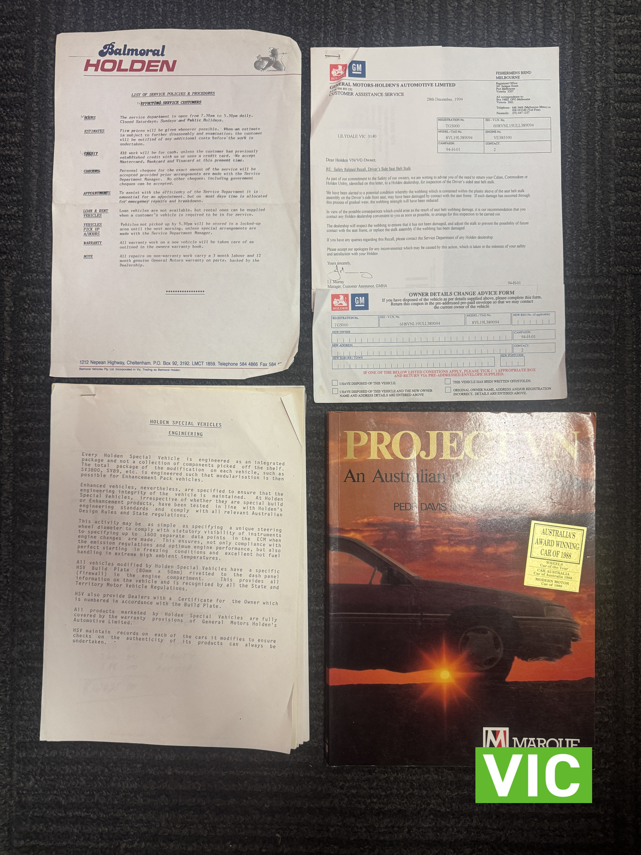 Only being sold as the vendor is downsizing. The vehicle comes with FULL Pedigree, original order forms, HDT itemised breakdown of costs, dealer wallet and a vast range of additional paperwork from the time of purchase. Originally sold from Balmoral Holden in Cheltenham on the 22/12/1989 it has always been kept undercover and only travelled 124778 Kms. Matching numbers vehicle. It goes without saying this is one for the collectors and is a great investment opportunity.