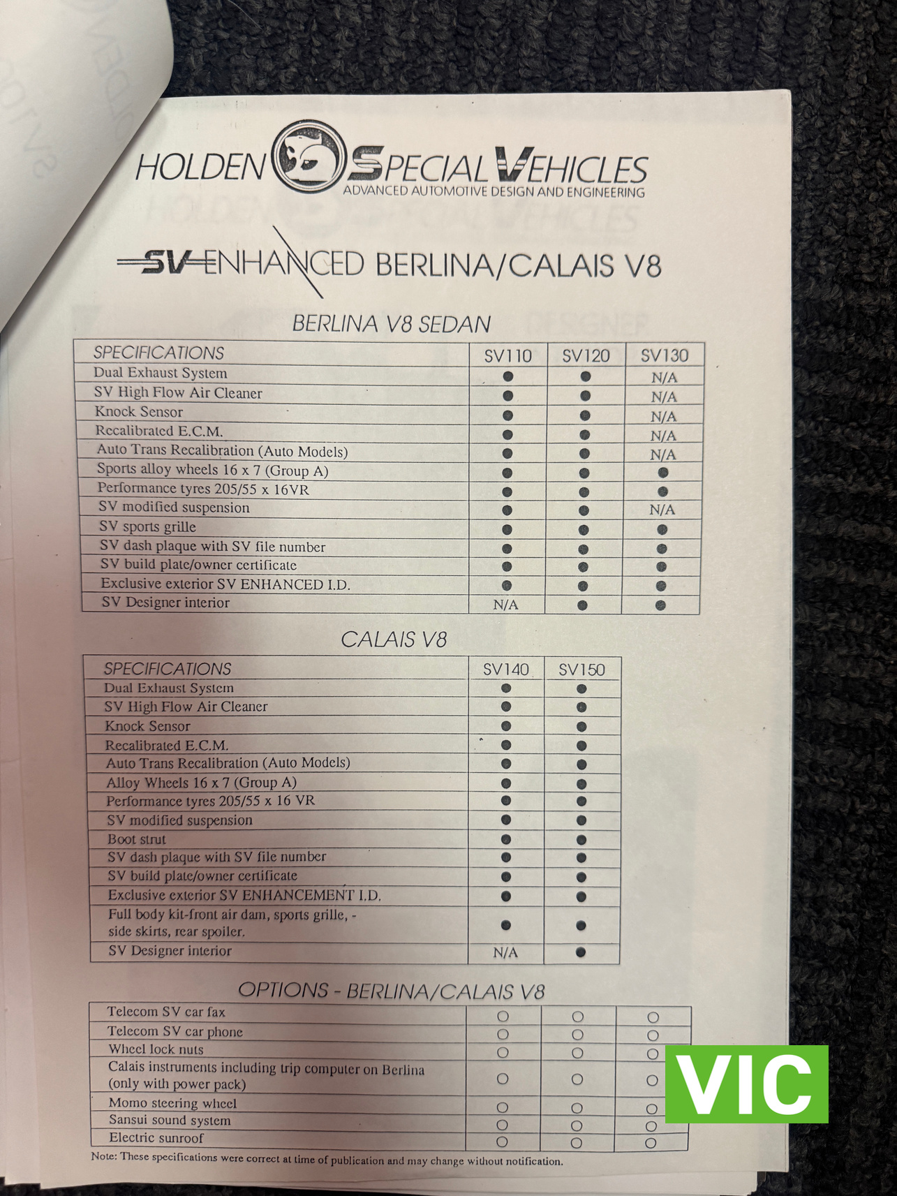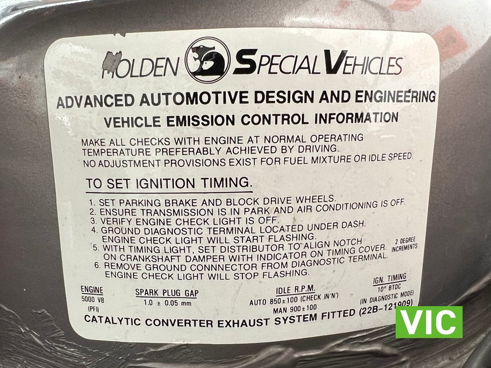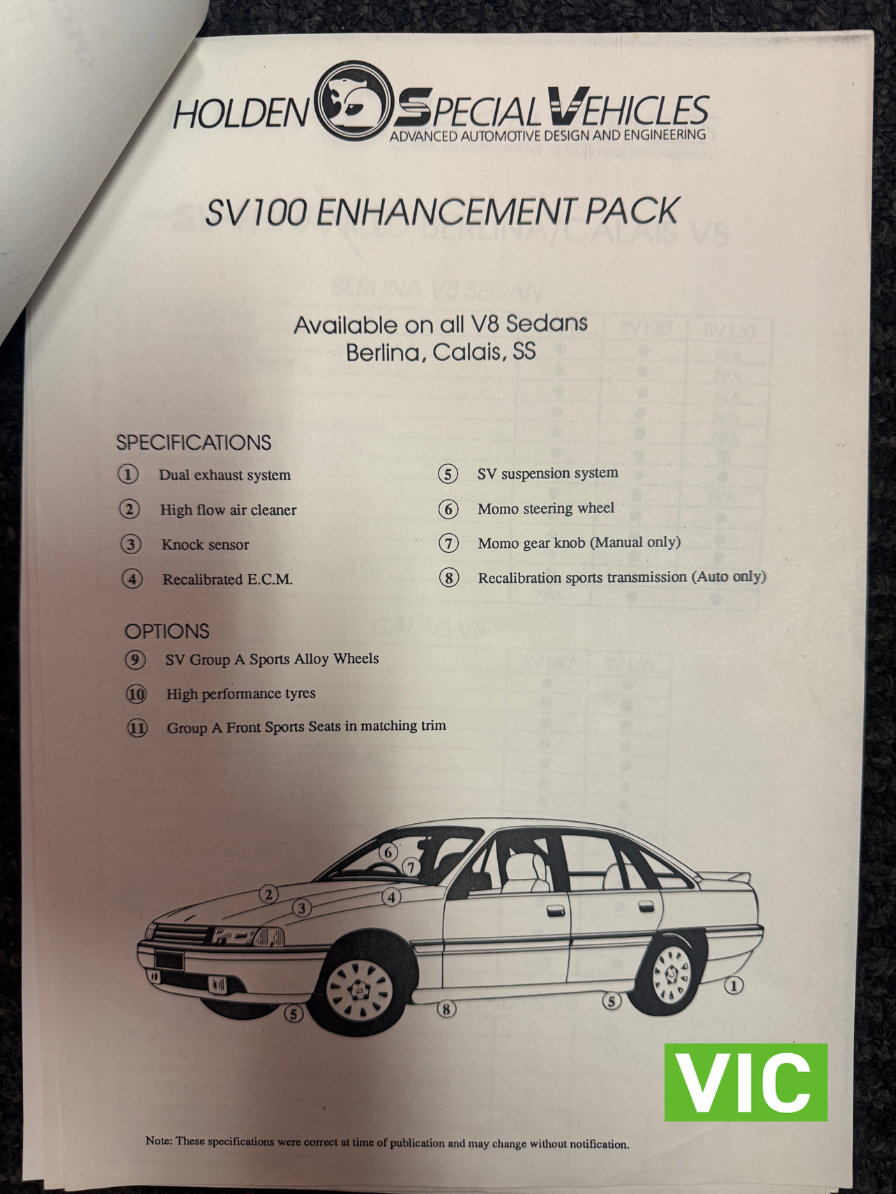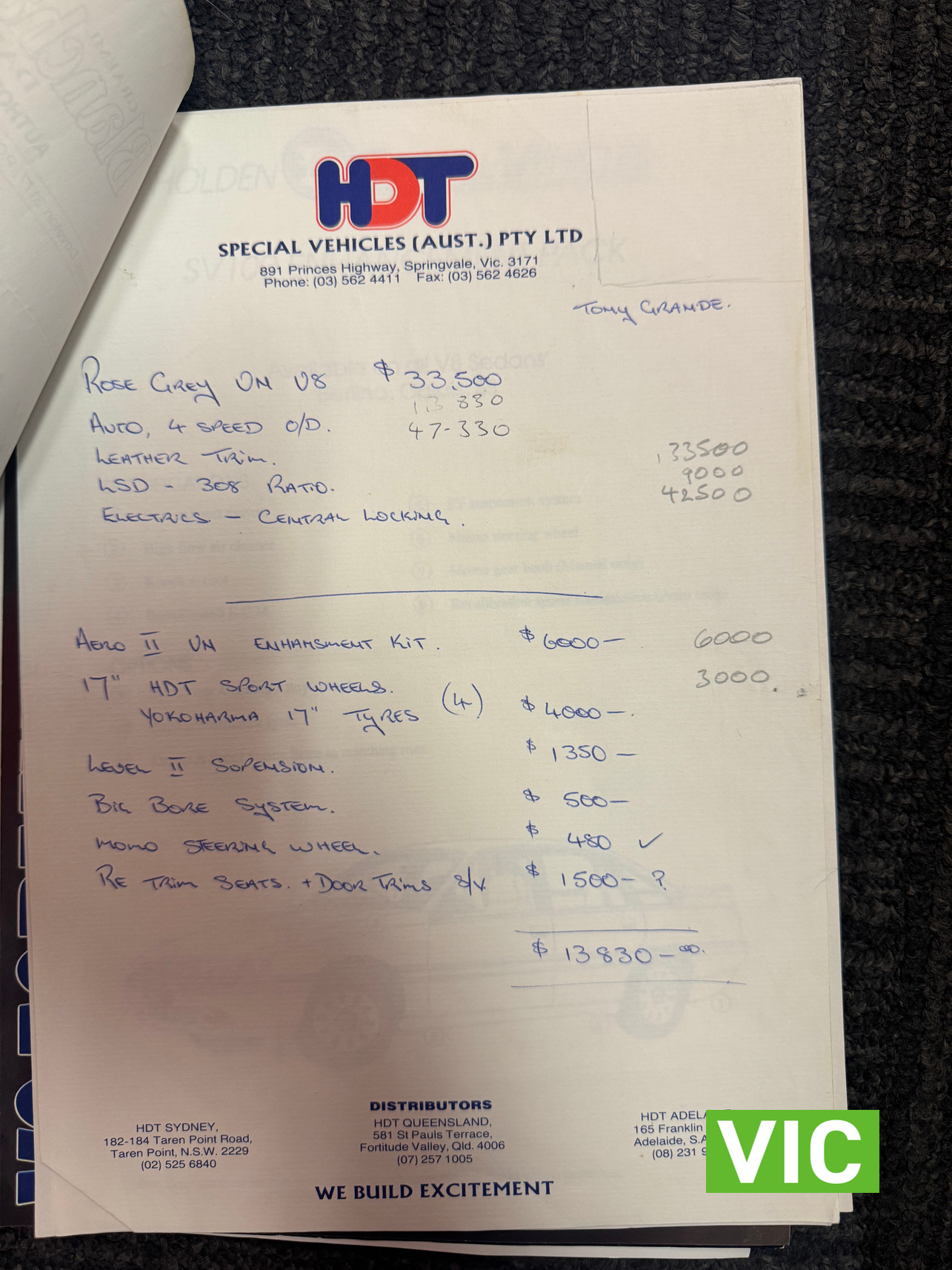 Only being sold as the vendor is downsizing. The vehicle comes with FULL Pedigree, original order forms, HDT itemised breakdown of costs, dealer wallet and a vast range of additional paperwork from the time of purchase. Originally sold from Balmoral Holden in Cheltenham on the 22/12/1989 it has always been kept undercover and only travelled 124778 Kms. Matching numbers vehicle. It goes without saying this is one for the collectors and is a great investment opportunity.