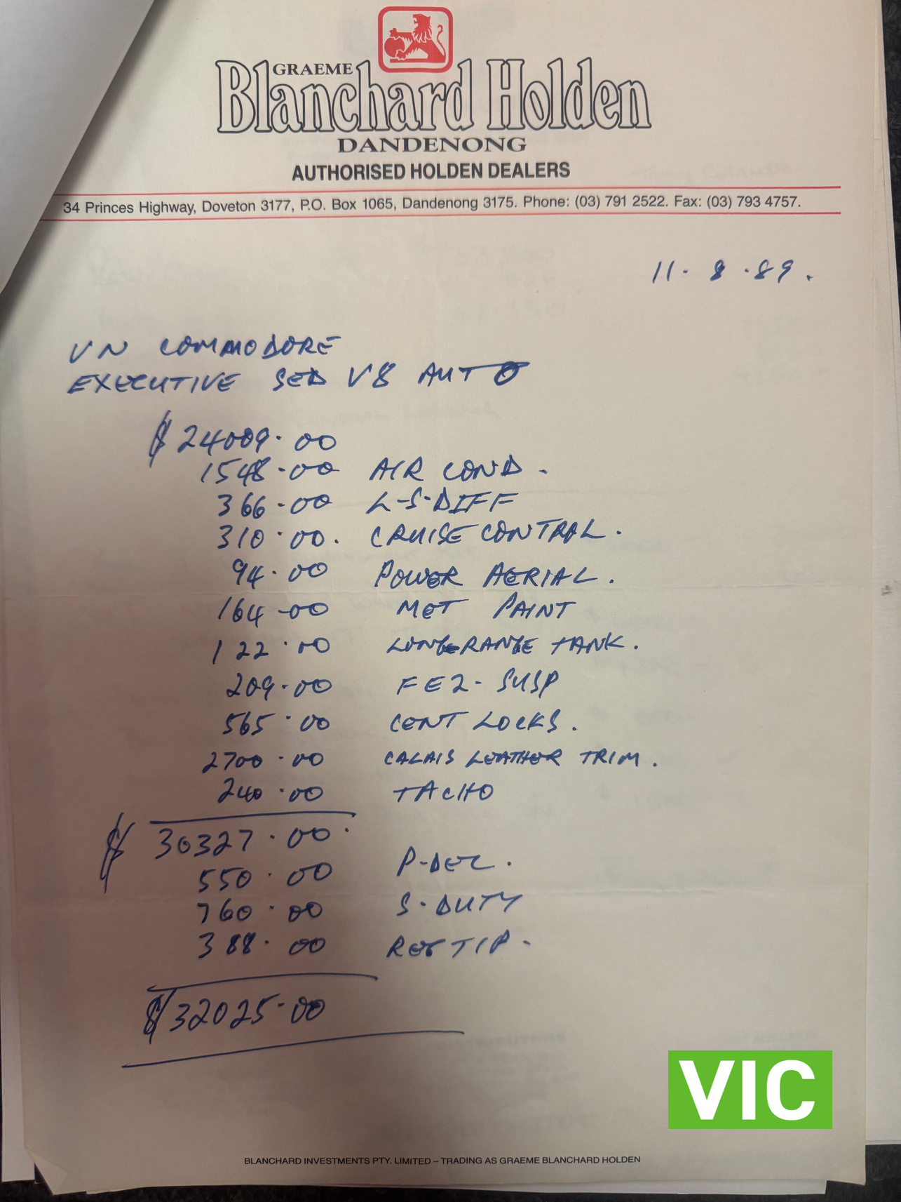 VN SV5000 Build No 019, 1 owner for over 35 years, low milage, an exceptional survivor! 11/1989 Holden VN SV5000 finished in the original Rose Grey it’s an absolute time warp!