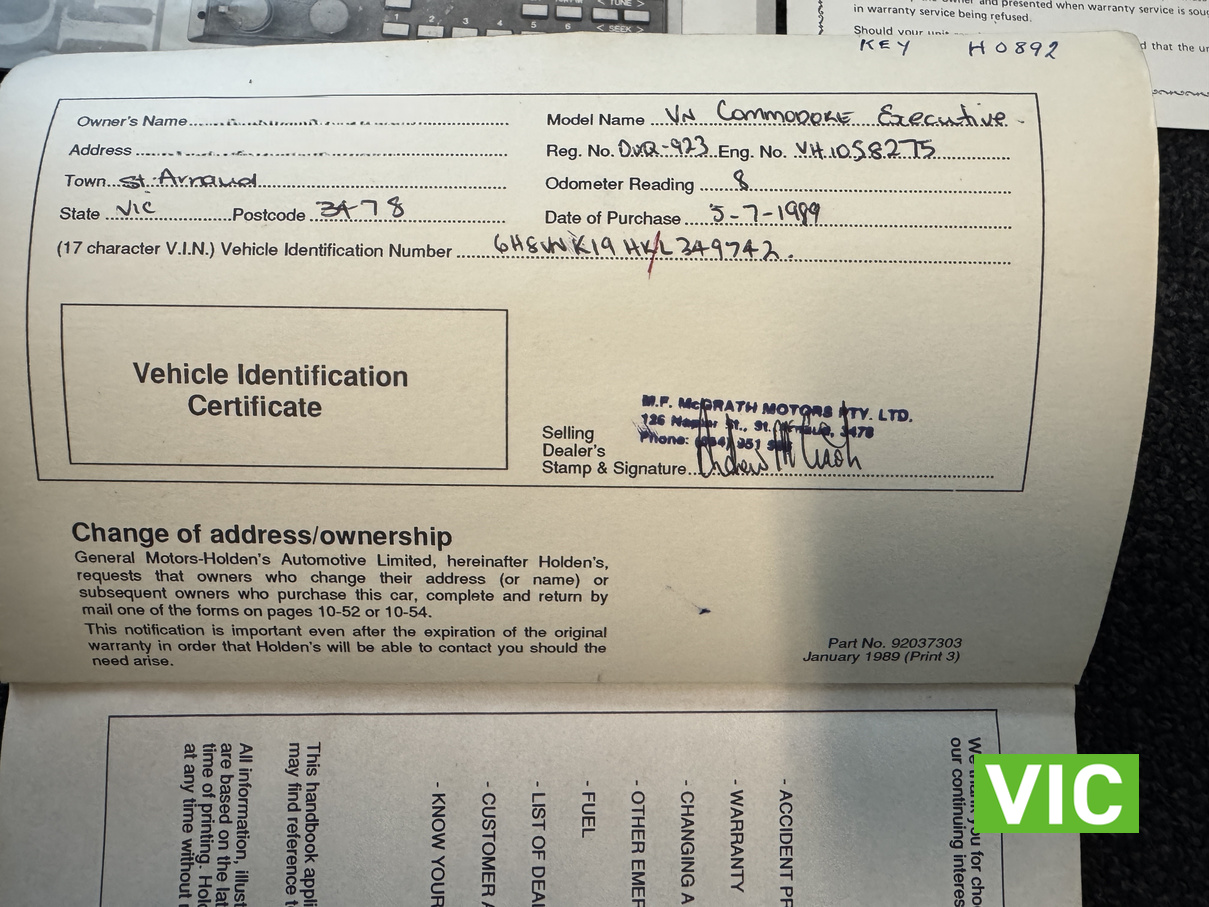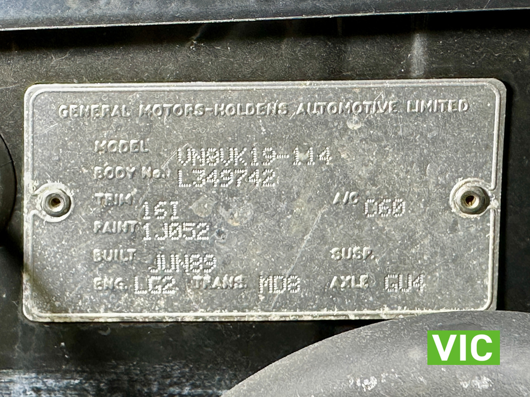Sold new to Mr Ken McDonald of St Arnaud Victoria on the 5/7/1989 by M.F McGrath Motors Holden, it remained under his ownership until his death in 2012. It was subsequently sold to its 2nd and current owner who has kept the car garaged and seldom used. A very solid low milage example that is sure to impress, inspections will not disappoint.