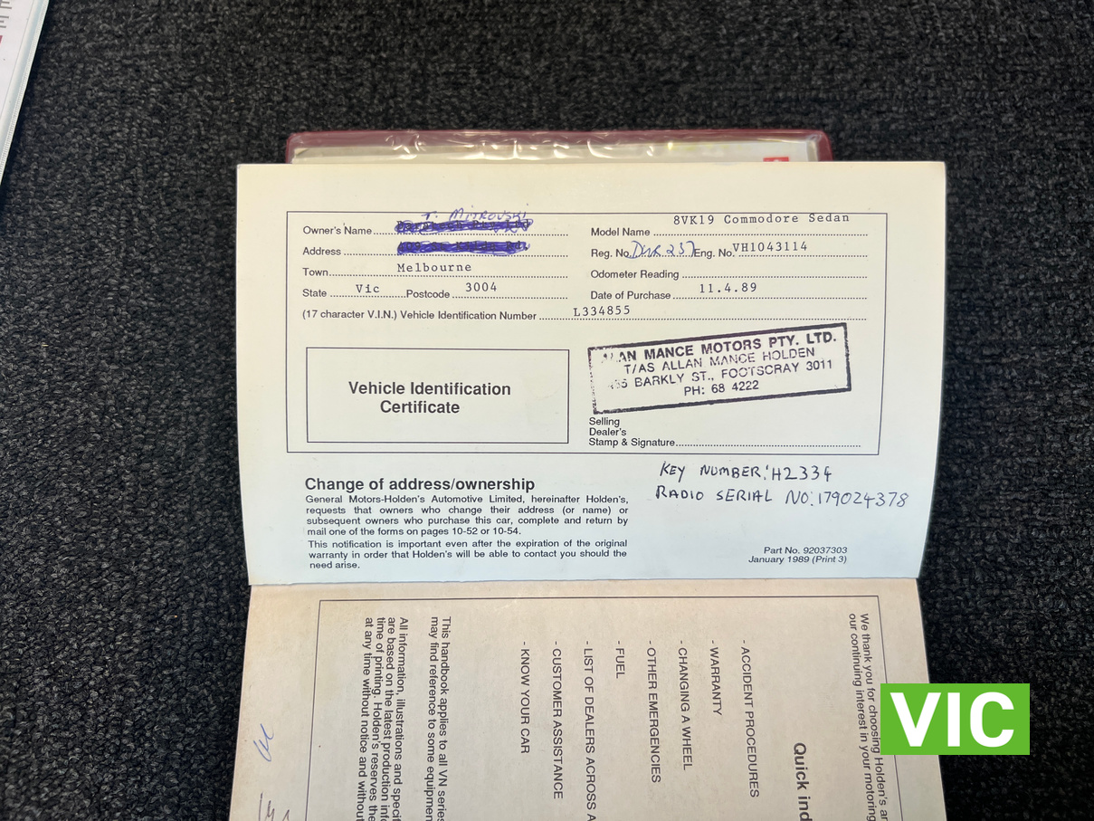 Driven into our Bayswater showroom by its long term owner of over 10 years. This VN Commodore was on display at the National Holden Motor Museum in Echuca for some years prior to its closure in 2024. The vendor advises that the vehicle was purchased by Daratech Pty Ltd from Alan Mance Holden Footscray and was issued to a M Mitrovski as his company car, upon his retirement in the early 1990s he purchased the car and drove it up until his death 10 years ago. The vendor advises that the vehicle has never been involved in an accident and is in exceptional condition. The iconic phoenix red paint work is in flawless condition and the interior is excellent as you would expect for a car that has only travelled a bit over 80k kms. The original owner’s manual is supplied still in the original Alan Mance Holden wallet. The car has had a full top end rebuild including the balance shaft roller bearing. Receipts are supplied for all work that has been completed.