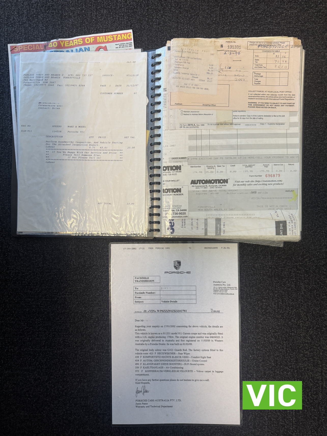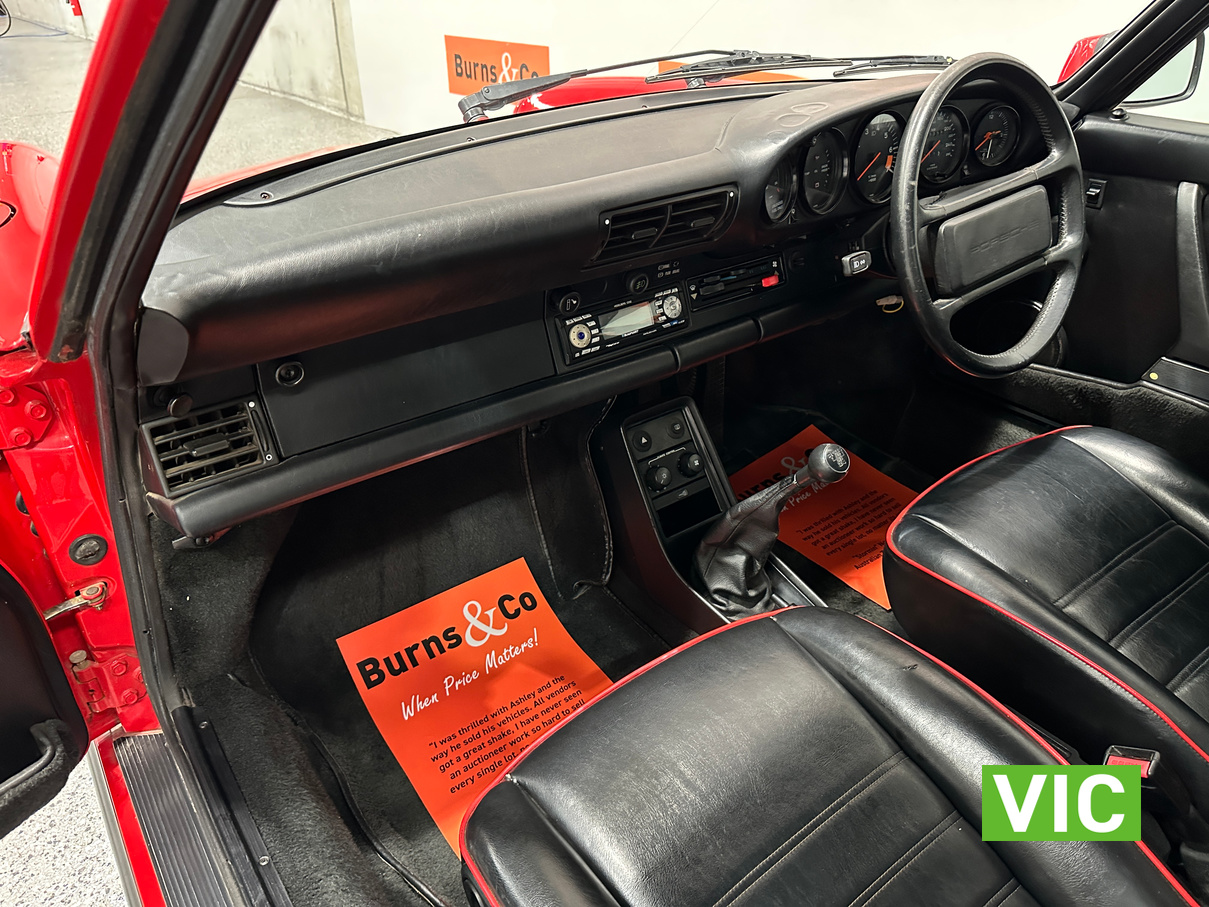 Well known and respected car. Australian delivered 1989, sold new in Western Australia and has a detailed list of all owner’s. Large folder of receipts and paperwork including original owner’s books and folder with detailed build specifications supplied by Porsche accompanies the vehicle. Having featured in Australian Classic car magazine this has been a very well maintained example inside and out. A copy of the magazine is supplied. The car has been the recipient of second prize in the show and shine section of the NSW Porsche club concours. Driven into our Bayswater showroom for genuine sale, the presentation of this 911 is excellent. Suited to a Porsche devotee and collector, inspections will not disappoint.