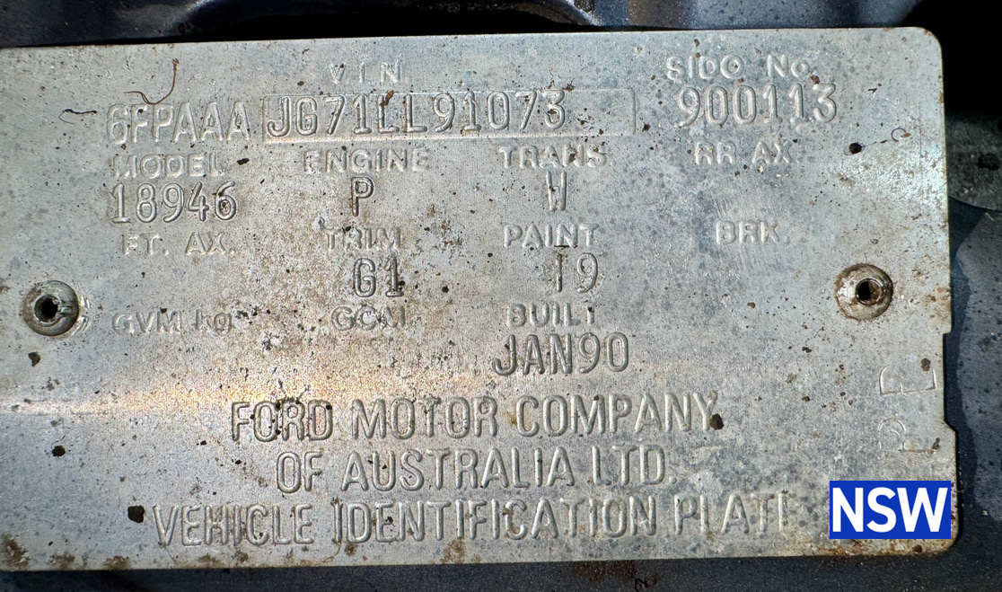 VIN / Chassis No: 6FPAAAJG71LL91073