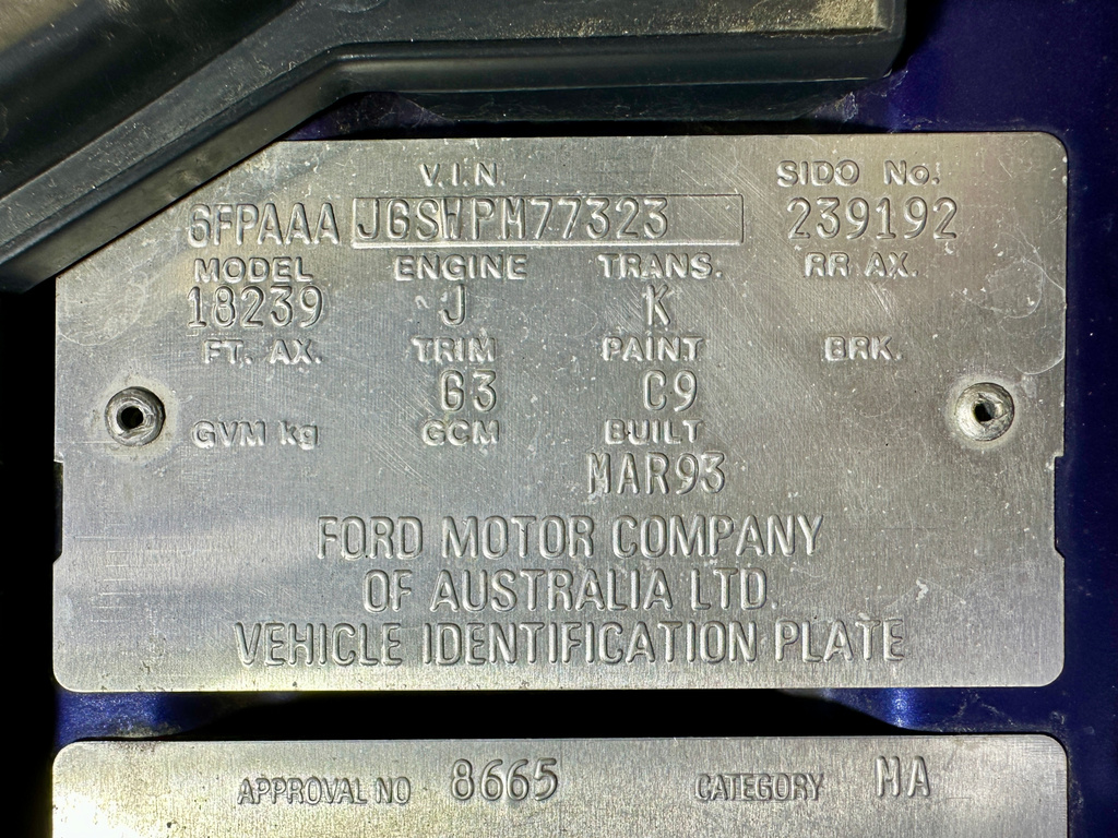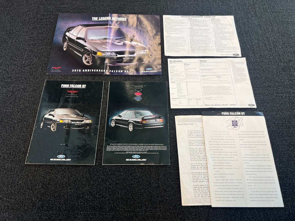 Delivered new by Alan Flohr Ford Toowoomba on 23/4/1993. The original owner’s books and Ford wallet accompanies the vehicle including the GT brochure.