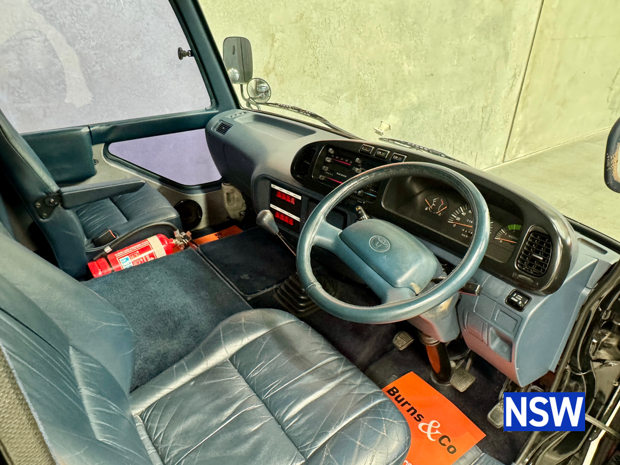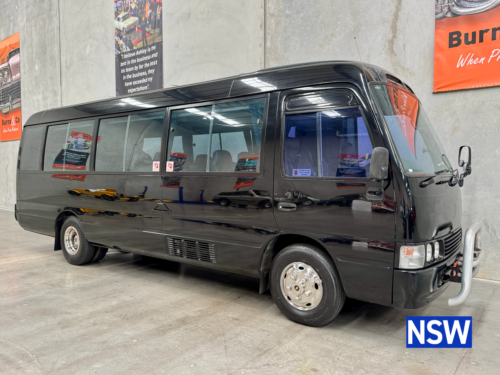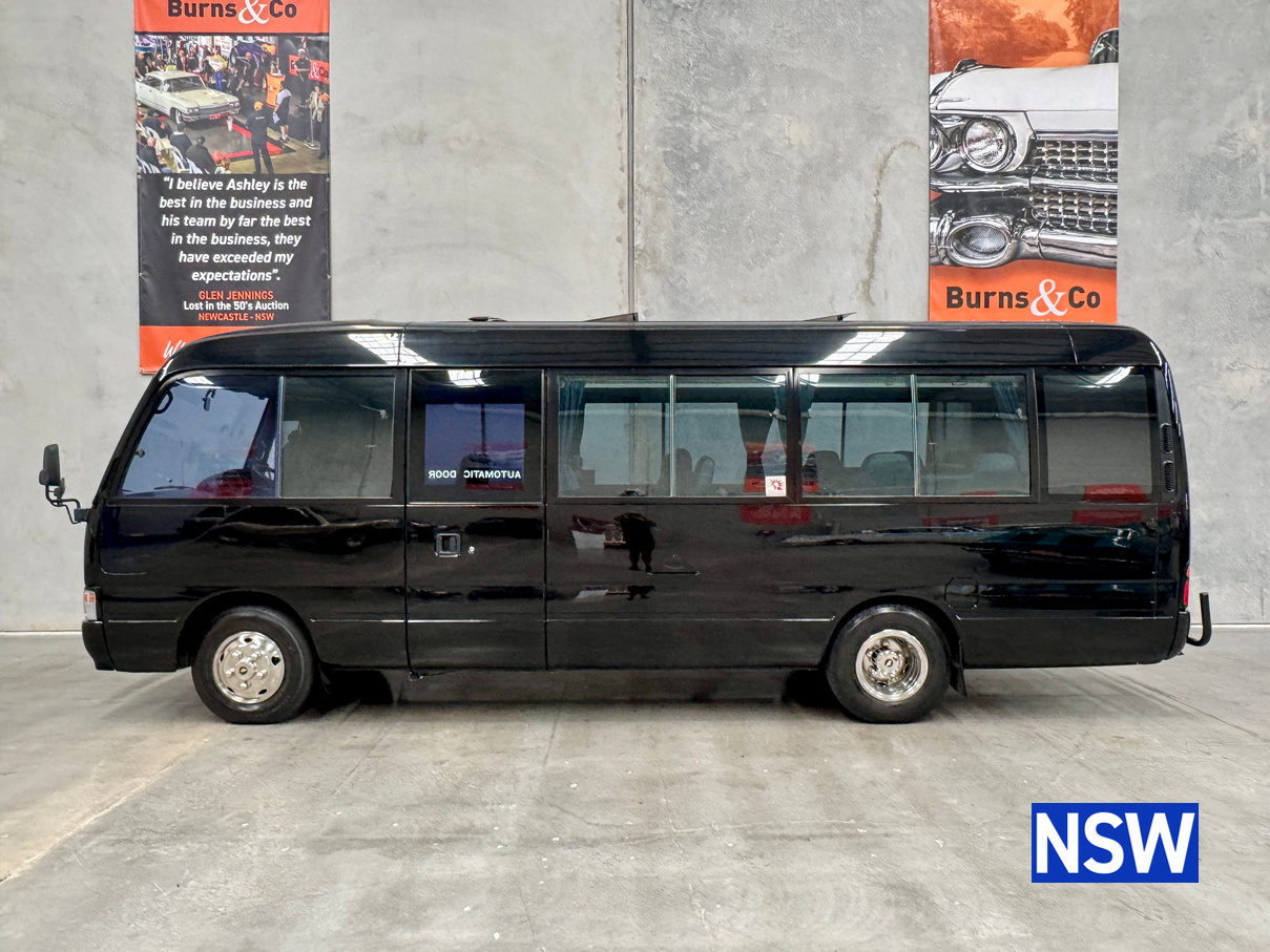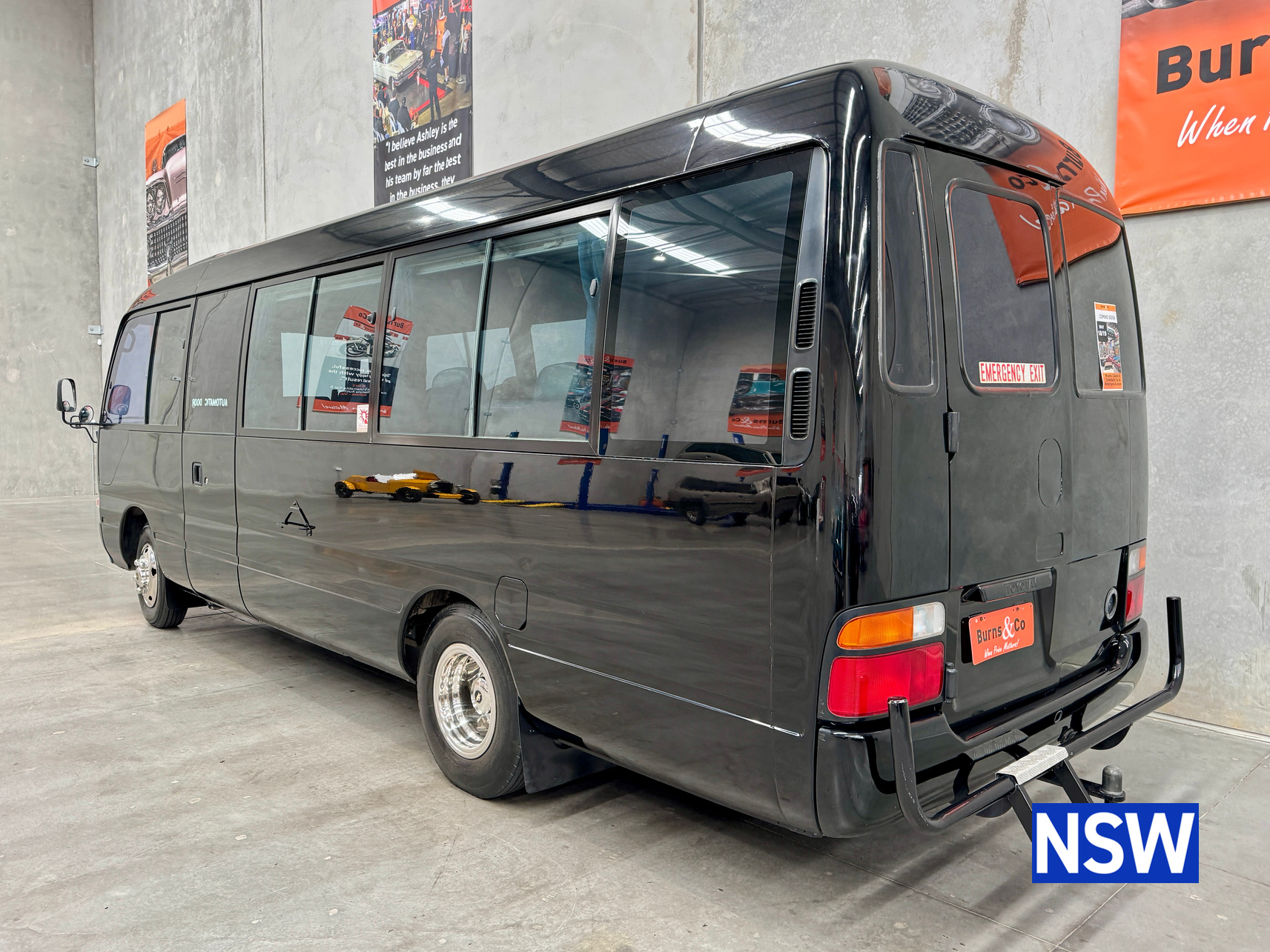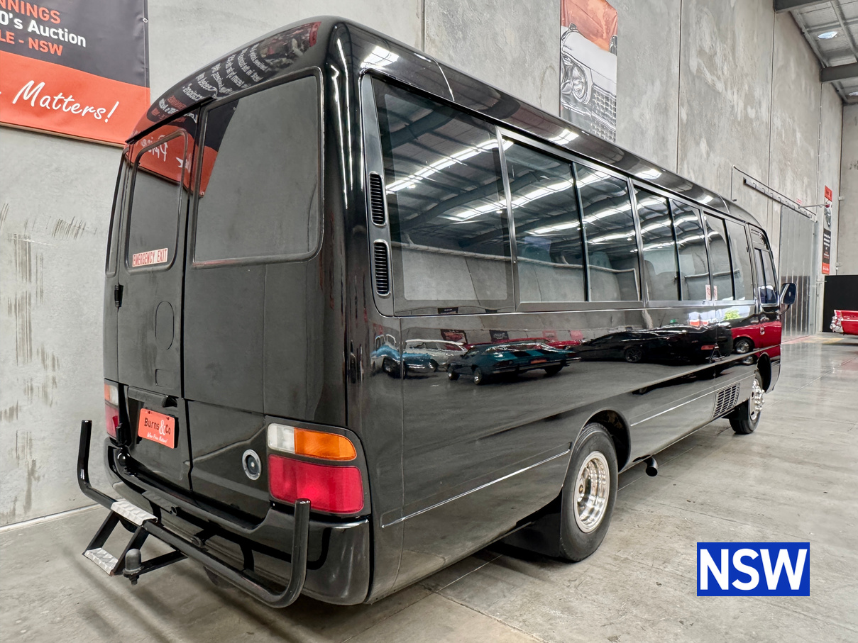 Ideal business opportunity! 1993 Toyota Coaster Bus kitted out for all occasions, weddings or VIP Transfers. Fitted with the 6 cylinder 1HZ Diesel motor paired to a six speed manual. Body presents well with no signs of rust and paint in great condition. Fitted with full custom leather interior, carpeted floor to ceiling, under seat lighting throughout, floor mounted mini bar, 2 mahogany bar areas with glassware, 32-inch TV and 2 wall mounted monitors and Playstation, full top of the line stereo system throughout, 2 separate sunroofs, 15 seats, exhaust brake spring suspension, power steering, genuine A/C system throughout, Driven into our Beresfield showroom for genuine sale, this is a great opportunity for either a business or private use.