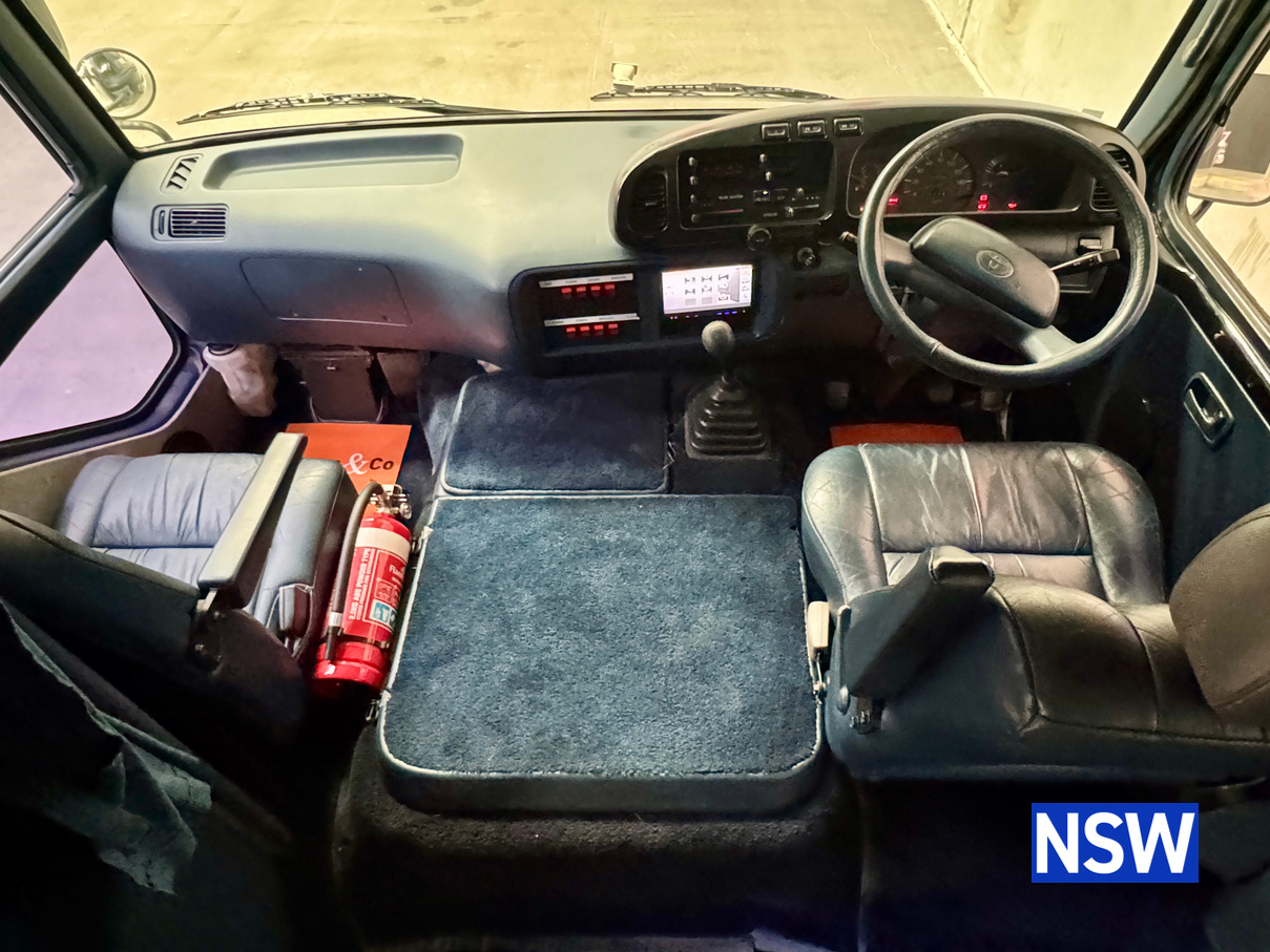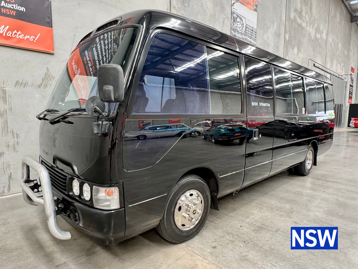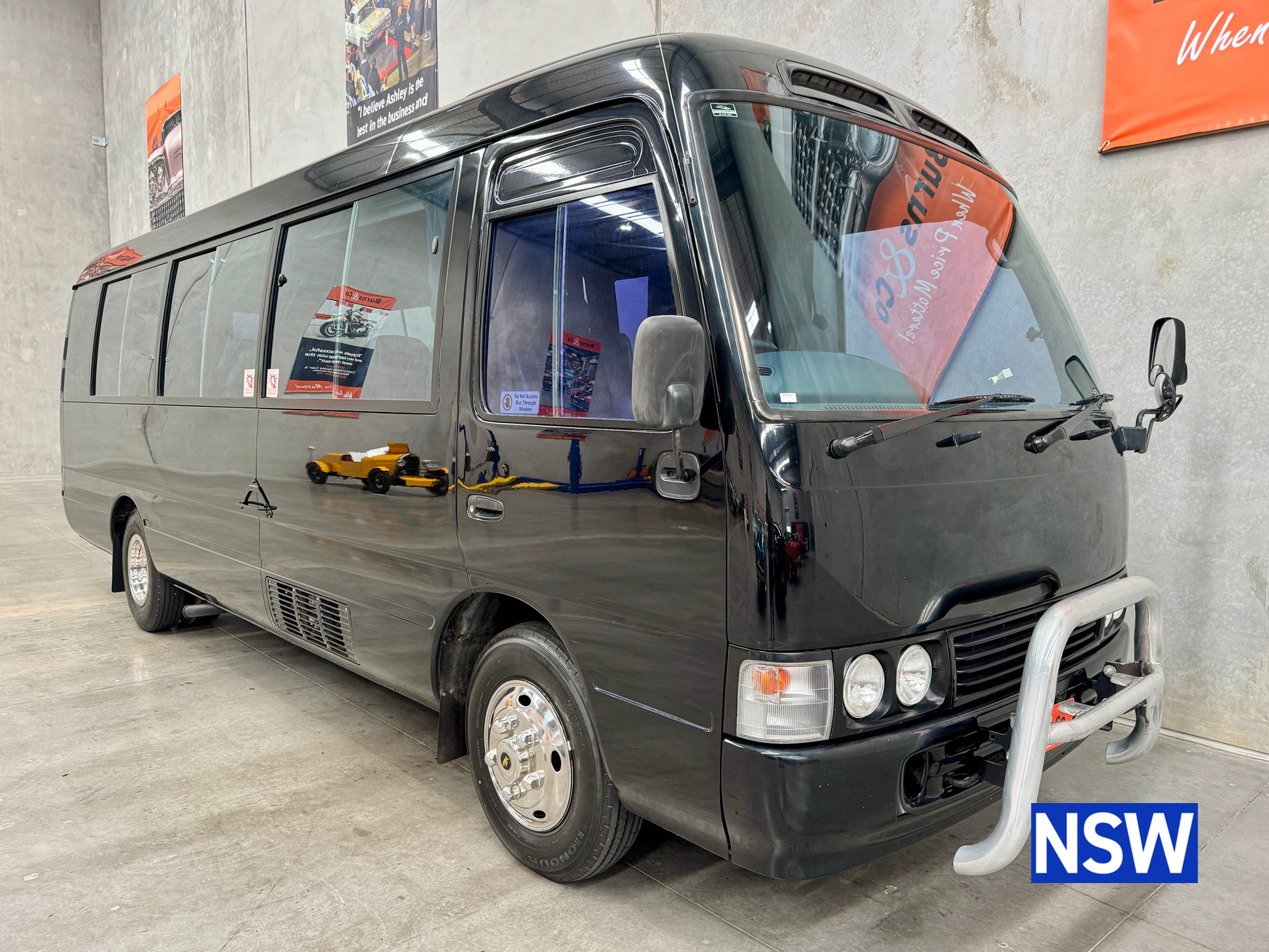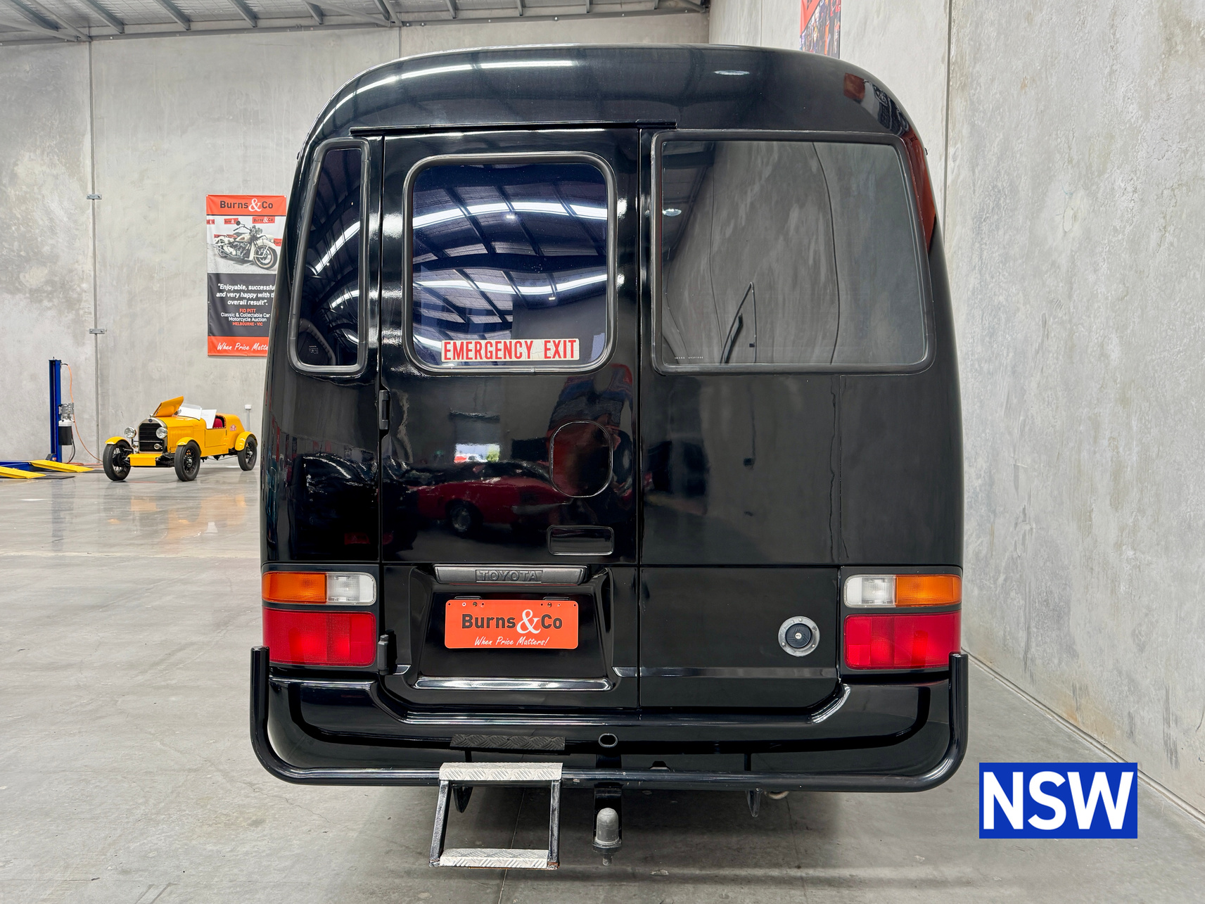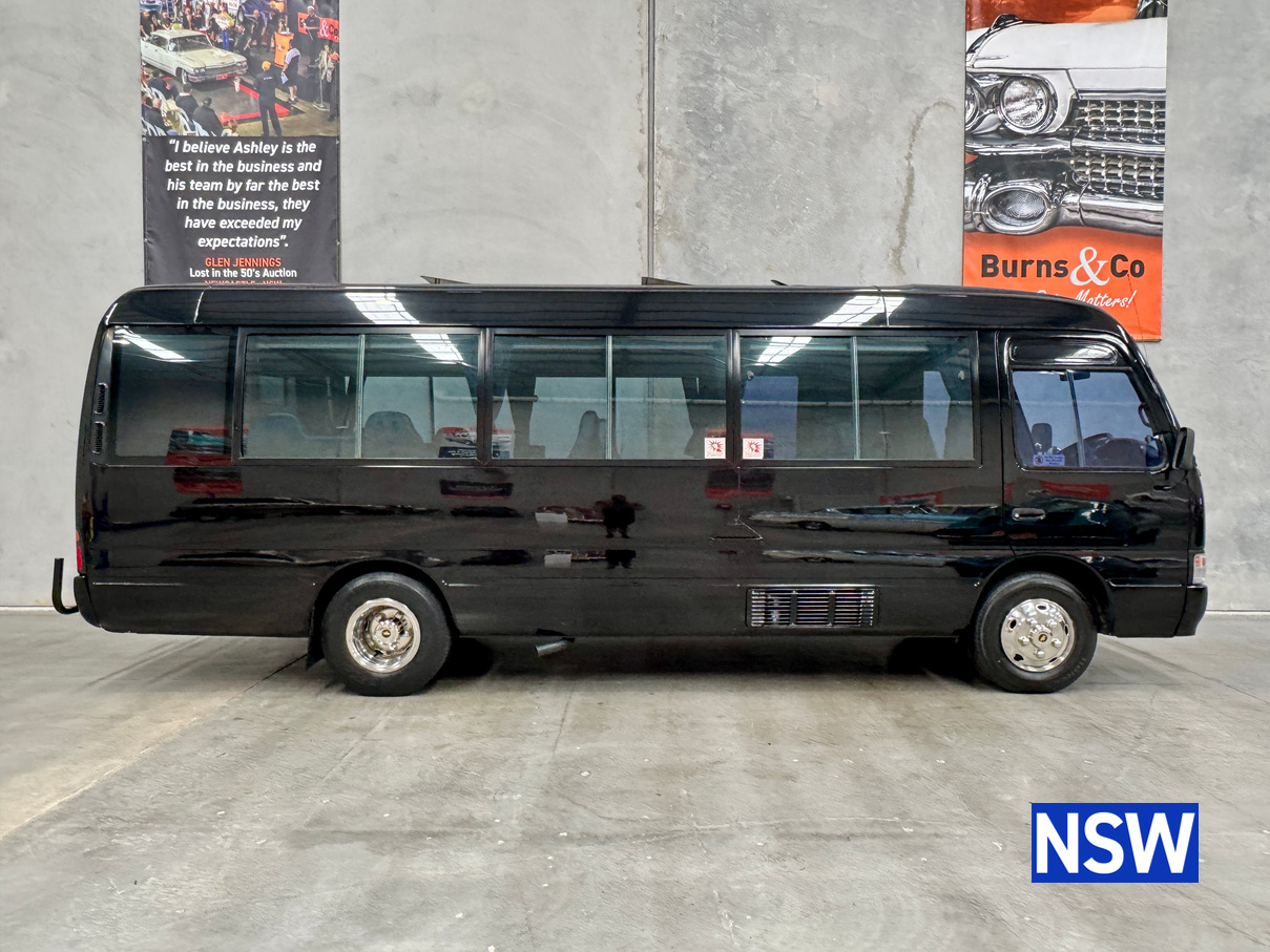 Ideal business opportunity! 1993 Toyota Coaster Bus kitted out for all occasions, weddings or VIP Transfers. Fitted with the 6 cylinder 1HZ Diesel motor paired to a six speed manual. Body presents well with no signs of rust and paint in great condition. Fitted with full custom leather interior, carpeted floor to ceiling, under seat lighting throughout, floor mounted mini bar, 2 mahogany bar areas with glassware, 32-inch TV and 2 wall mounted monitors and Playstation, full top of the line stereo system throughout, 2 separate sunroofs, 15 seats, exhaust brake spring suspension, power steering, genuine A/C system throughout, Driven into our Beresfield showroom for genuine sale, this is a great opportunity for either a business or private use.