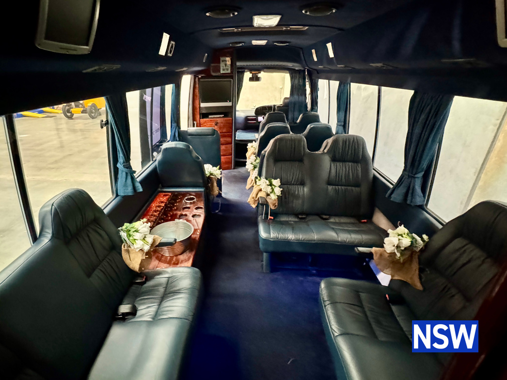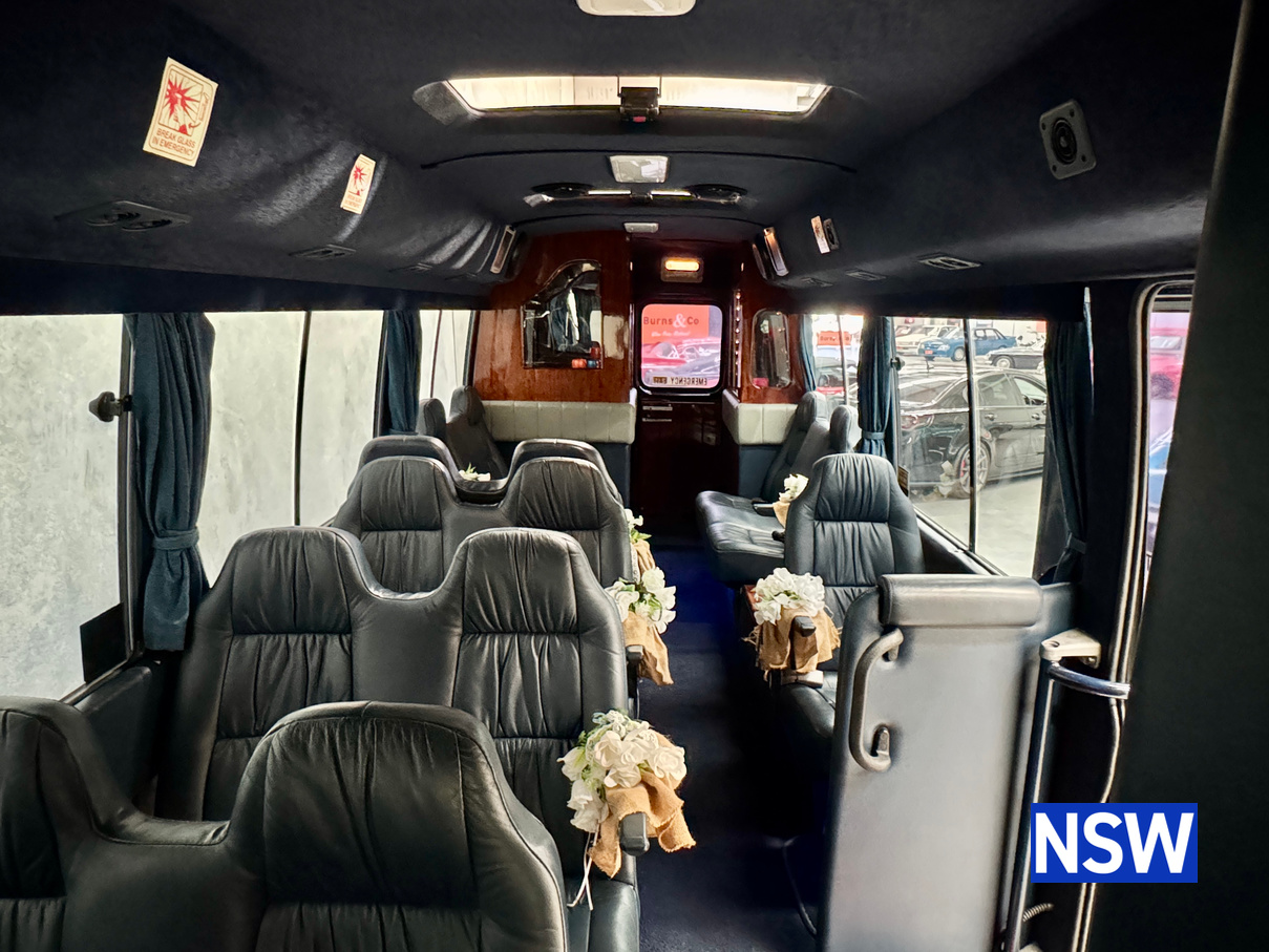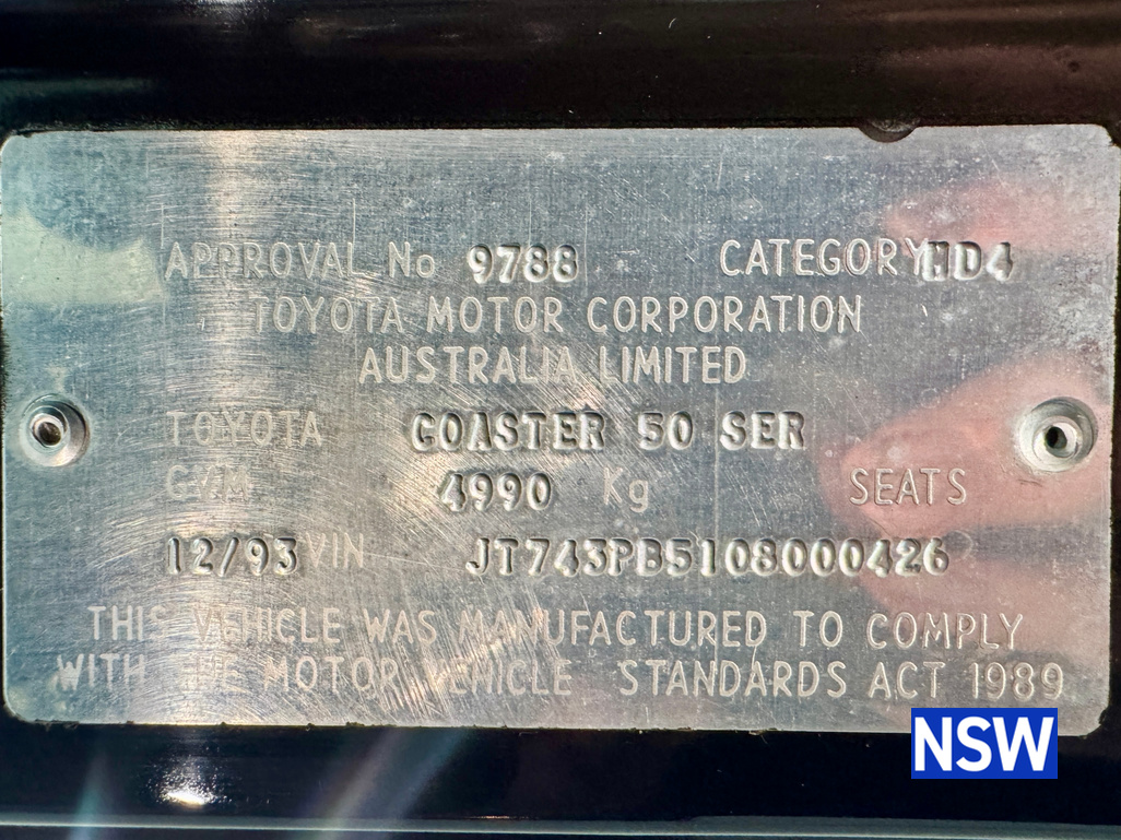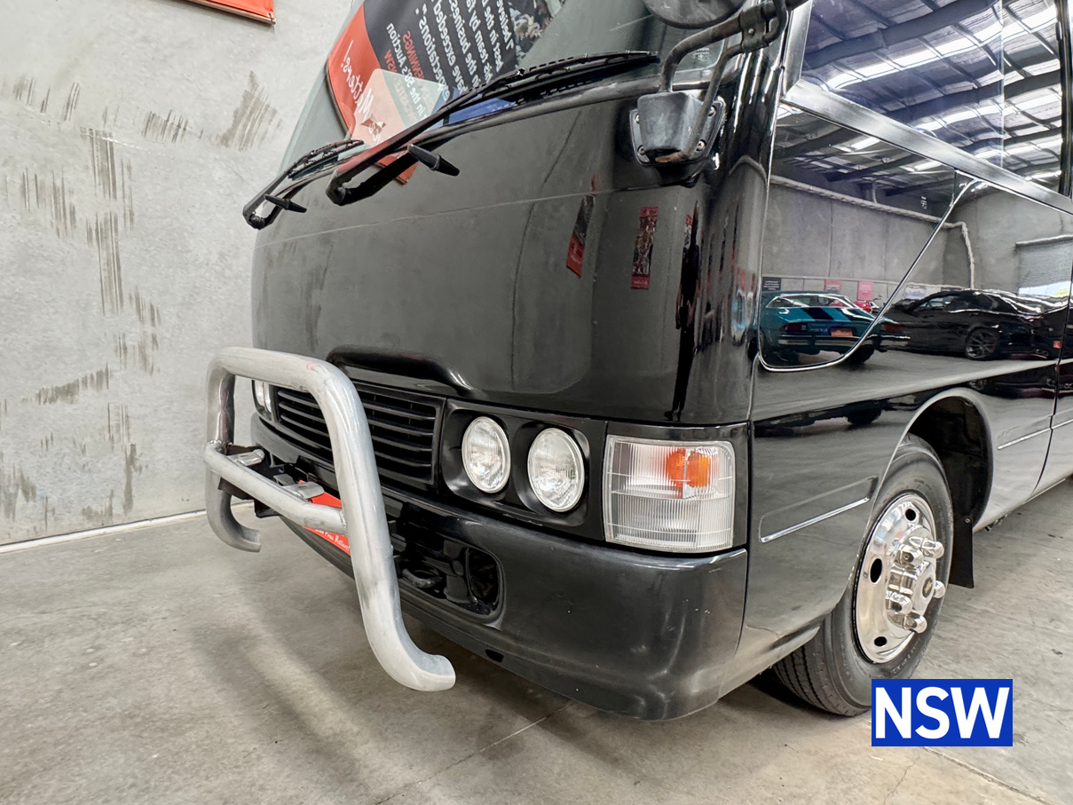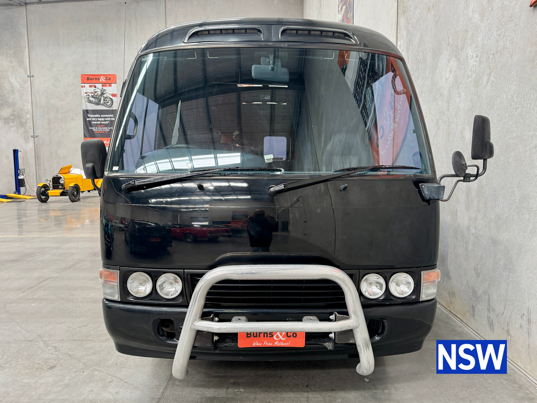 Ideal business opportunity! 1993 Toyota Coaster Bus kitted out for all occasions, weddings or VIP Transfers. Fitted with the 6 cylinder 1HZ Diesel motor paired to a six speed manual. Body presents well with no signs of rust and paint in great condition. Fitted with full custom leather interior, carpeted floor to ceiling, under seat lighting throughout, floor mounted mini bar, 2 mahogany bar areas with glassware, 32-inch TV and 2 wall mounted monitors and Playstation, full top of the line stereo system throughout, 2 separate sunroofs, 15 seats, exhaust brake spring suspension, power steering, genuine A/C system throughout, Driven into our Beresfield showroom for genuine sale, this is a great opportunity for either a business or private use.
