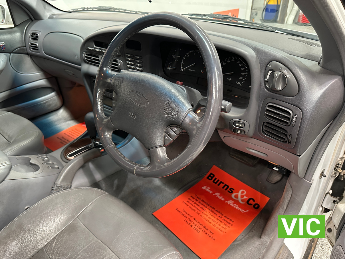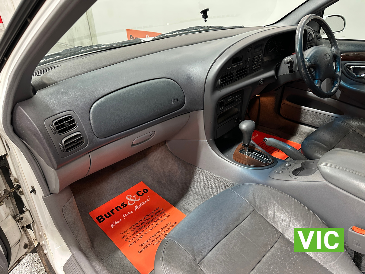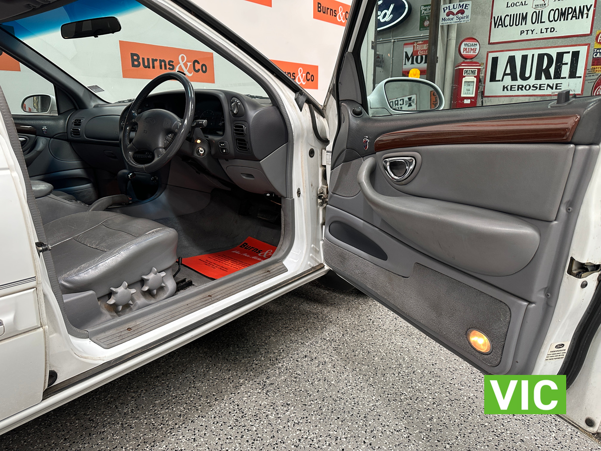 Sold new on the 16/7/1998 by Nuford of Wangara WA to one of the Managers of Boral construction. It was then sold and made its way to Victoria where the vendor’s purchased the vehicle and has been under there long-term ownership since. Factory 5 Litre V8 Ghia trim, this is an excellent opportunity to get into a big classic Aussie V8, perfect entry level club car with the comfort of A/C Power steering, cruise control, electric windows and automatic transmission. Very well presented inside and out and complete with the original owner’s manual.