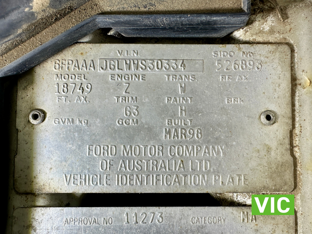 Engine Number: JGLWWS30334 (Vicroads)