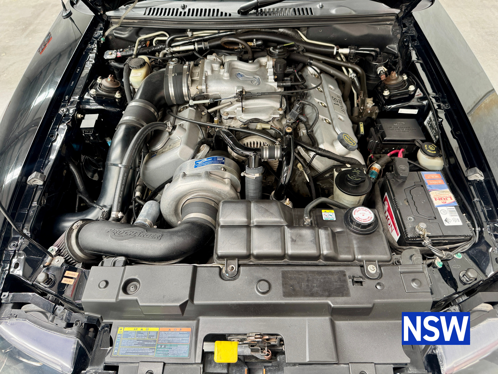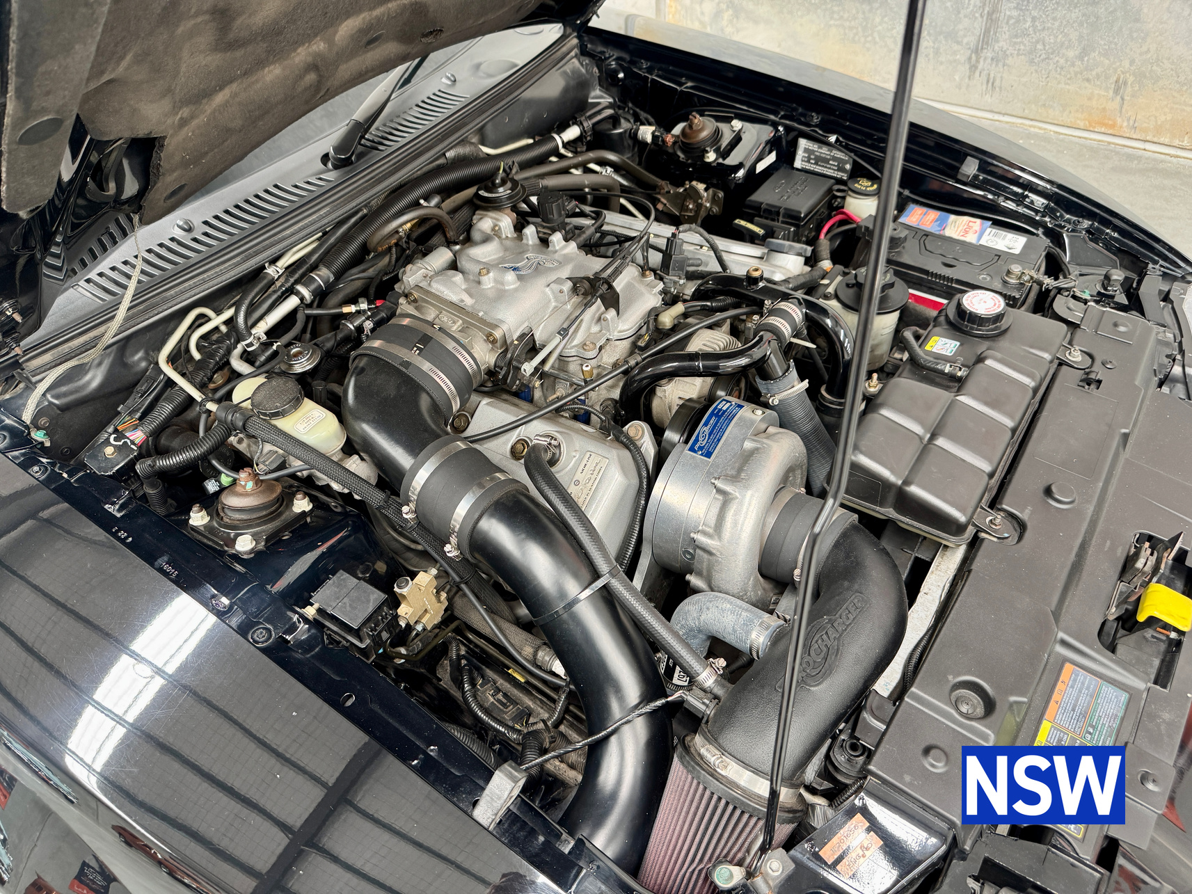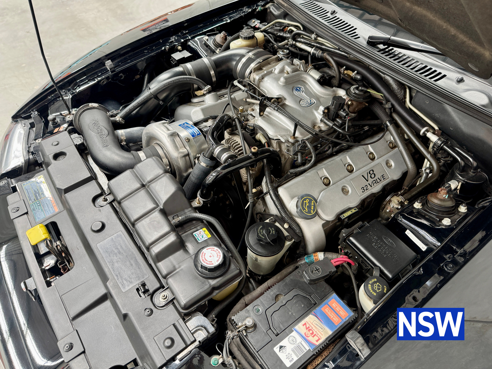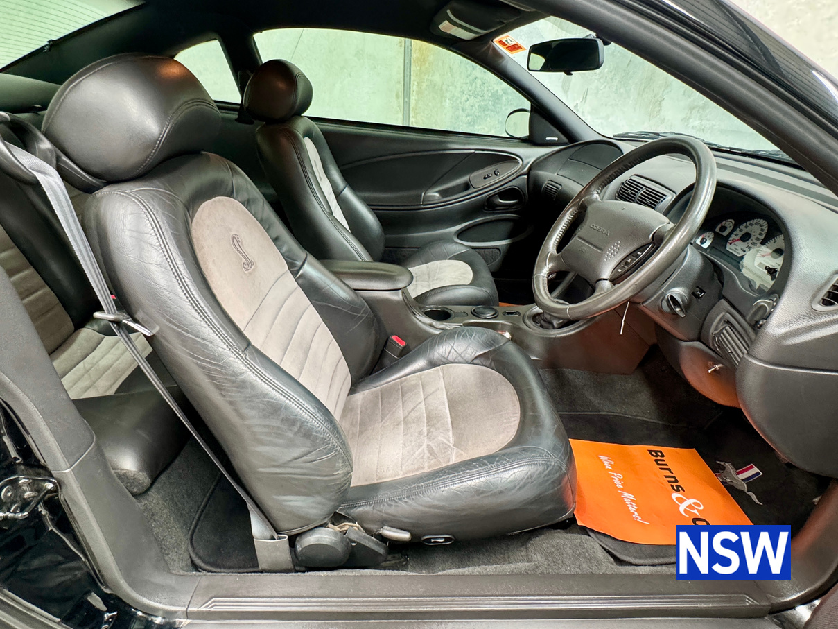 These SVT Mustangs were imported from the USA by Ford Australia and converted to RHD by Tickford Engineering in 2001 to combat the sales of the new CV8 Monaro of the time. This is one of approx 300 imported and 1 of 6 in this colour combination. Driven as a daily driver up until 2008 and then stored for 8 years. Then put back on the road and enjoyed as a weekend car and taken to car shows and motoring events. Fitted with Mustang Bullitt style wheels (18×9 front / 18×10 back), Cold Air Induction System (CJ Pony Parts USA), Hi Flow Cats & Mufflers with dual actuators, 4.1 Diff Gears, P-ISC Procharger Supercharger, Haltech Elite 2500, Bigger Fuel Injectors, Hi Volume Fuel & Booster Pump, Mechanical Restoration, New Fuel Tank and Lines, New Front Diff Bushes, New RHR Wheel Bearing Assembly, New Rear Brake Rotors and New Rear Knuckle Ball Joints.
