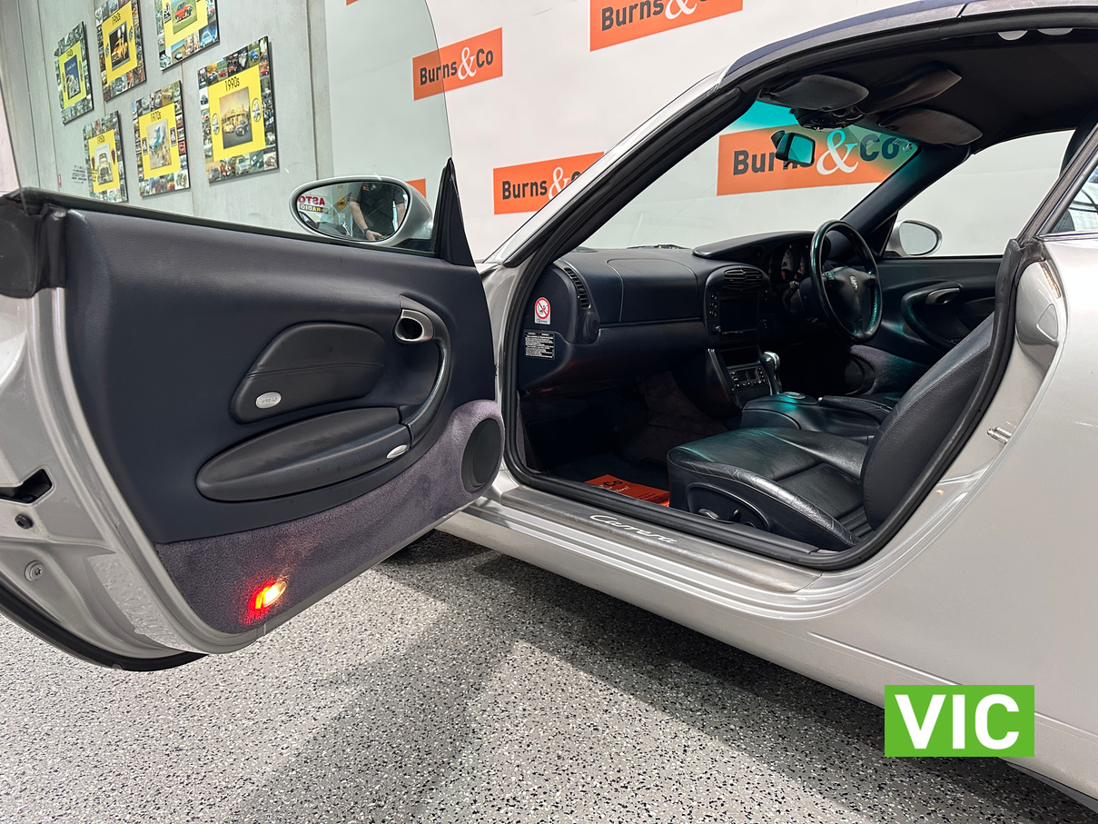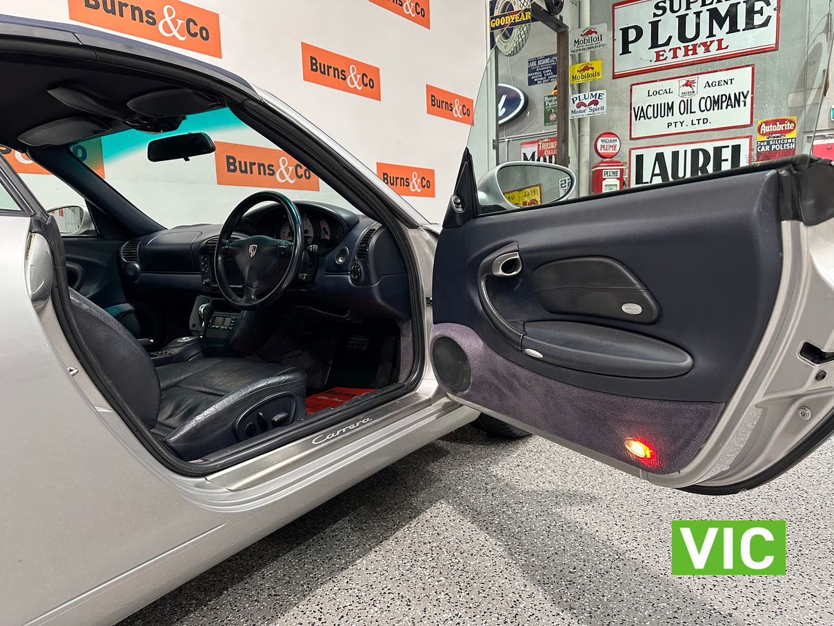 The 2001 Porsche 911 Carrera (996 generation) features a 3.4L water-cooled flat-six engine that produced 300 hp and was fitted with an optional 5-speed Tiptronic automatic transmission. Known as the first water-cooled 911, it offers a more modern, comfortable driving experience with sharp handling, 0-100 km/h in roughly 5-6 seconds, and a more accessible and comfortable entry point into Porsche ownership. The vendor advises that the vehicle has had an IMS bearing kit fitted by Autohaus Hamilton and that a new convertible top hydraulic mechanism was installed. This example presents well with the vendor only selling due to ill health. A very well-presented car inside and out. Eligible for club plates this year this is a perfect and comfortable cruiser for the next club run.