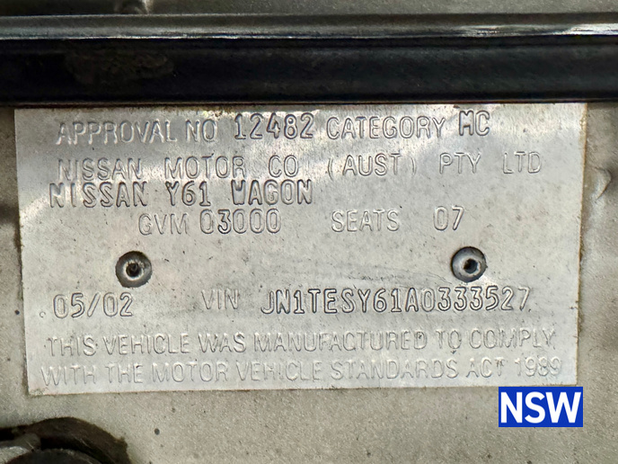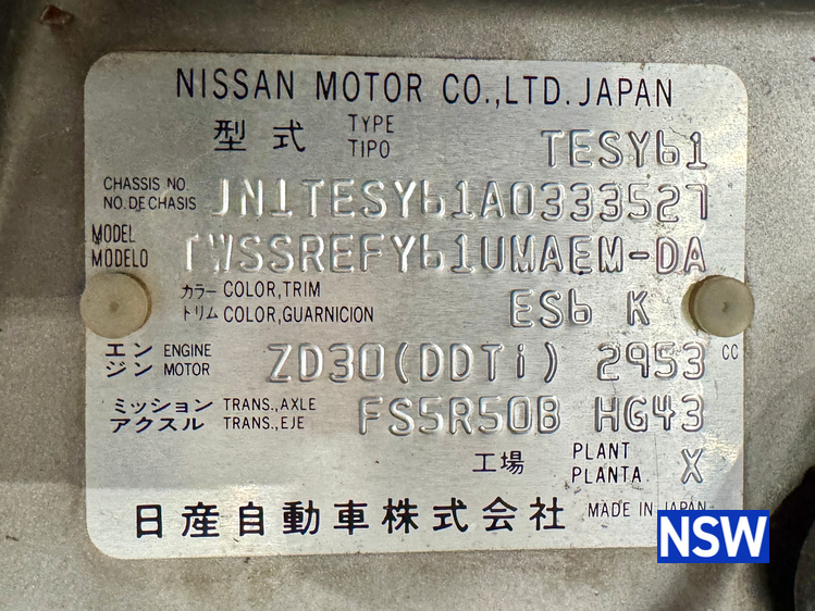 VIN / Chassis No: JN1TESY61A0333527
