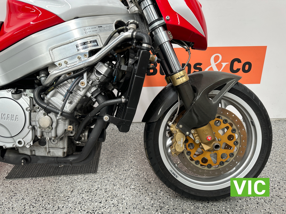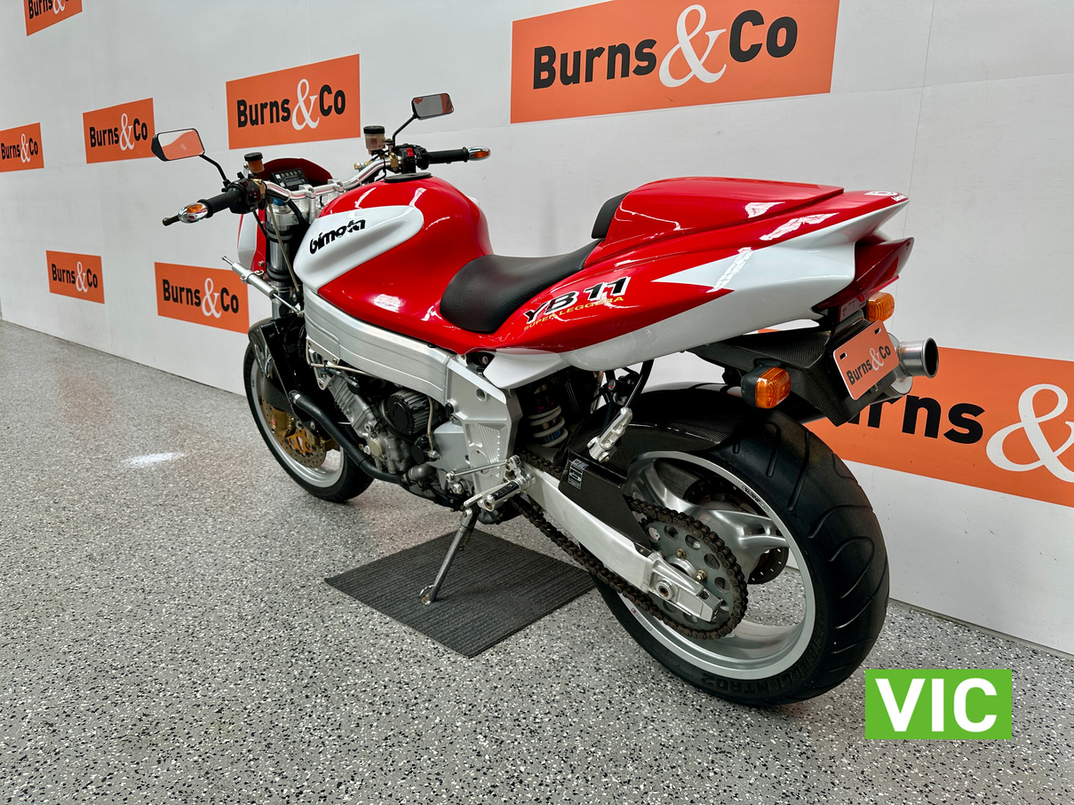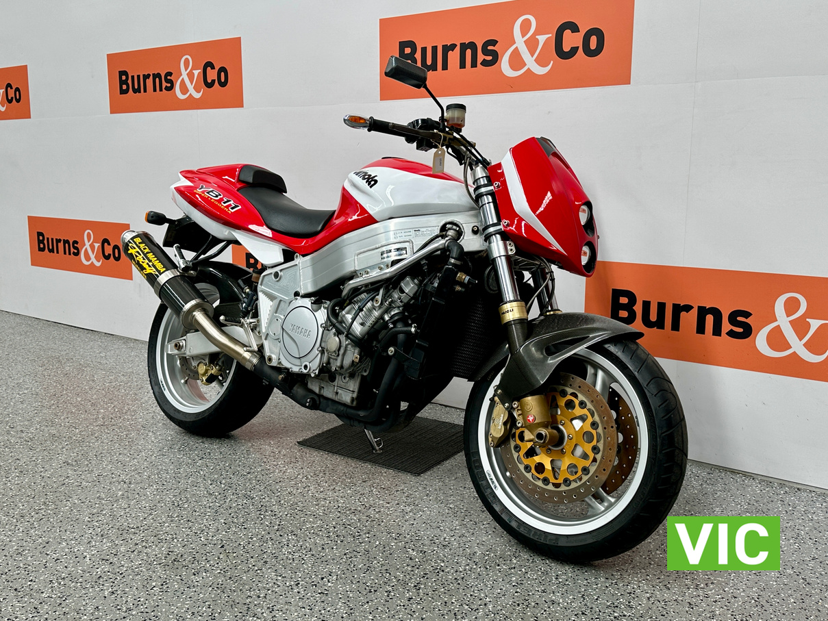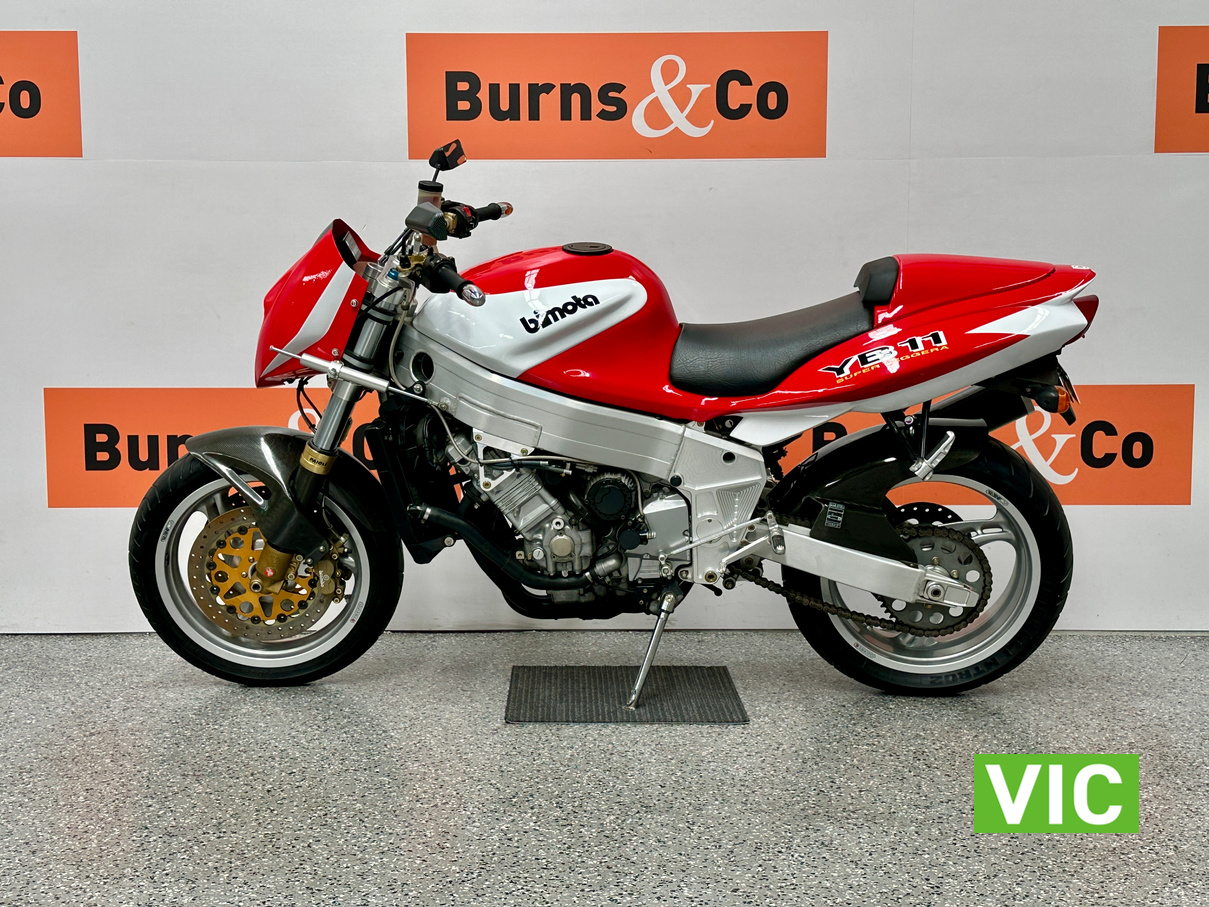2003 Yamaha Bimota YB11, a true collector’s bike rarely offered for sale. This example presents exceptionally well and has been kept in storage and started regularly. Vendor advises it has travelled a genuine 6136 Km and has been very well maintained. Fitted with a 1002cc 4 stroke engine, this would make an excellent addition to any motorcycle collection. Comes with pillion seat and original exhaust.