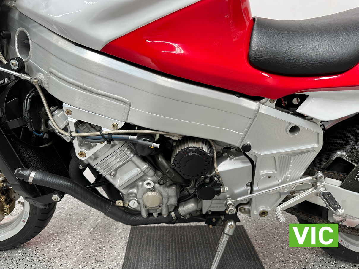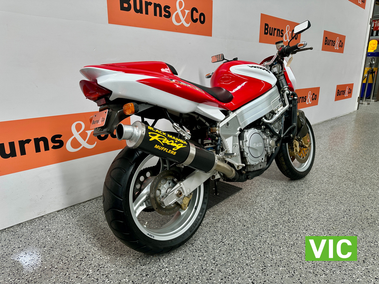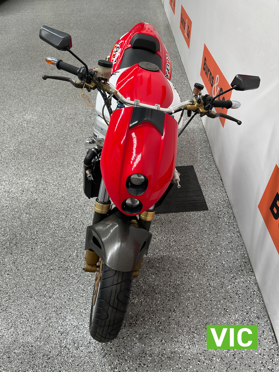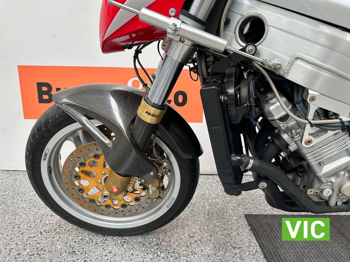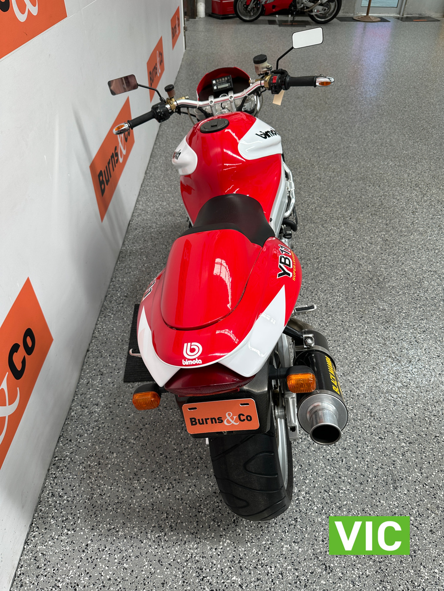 2003 Yamaha Bimota YB11, a true collector’s bike rarely offered for sale. This example presents exceptionally well and has been kept in storage and started regularly. Vendor advises it has travelled a genuine 6136 Km and has been very well maintained. Fitted with a 1002cc 4 stroke engine, this would make an excellent addition to any motorcycle collection. Comes with pillion seat and original exhaust.
