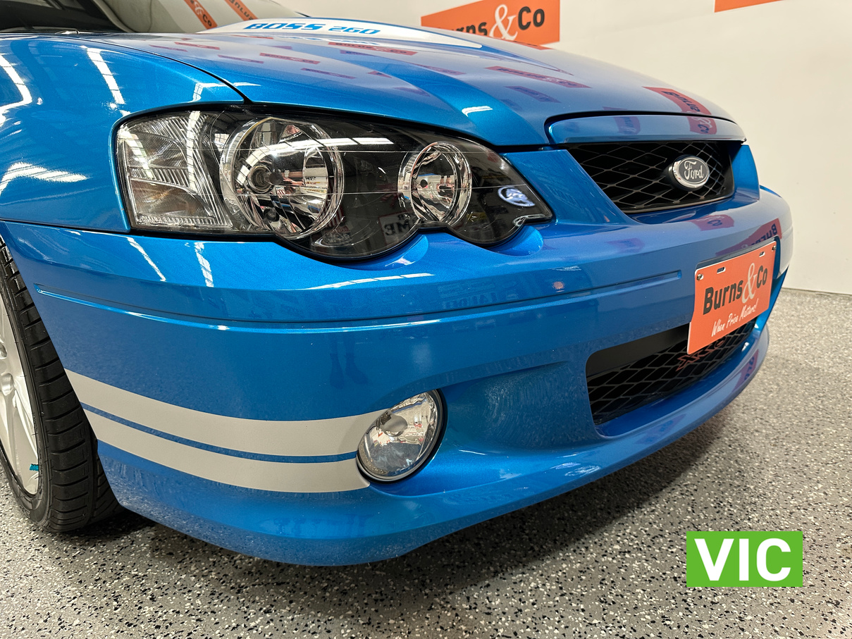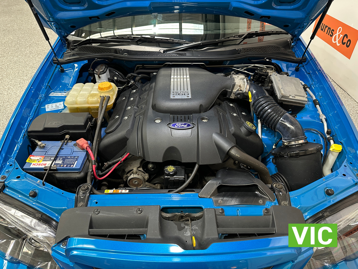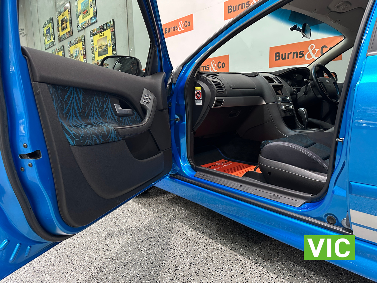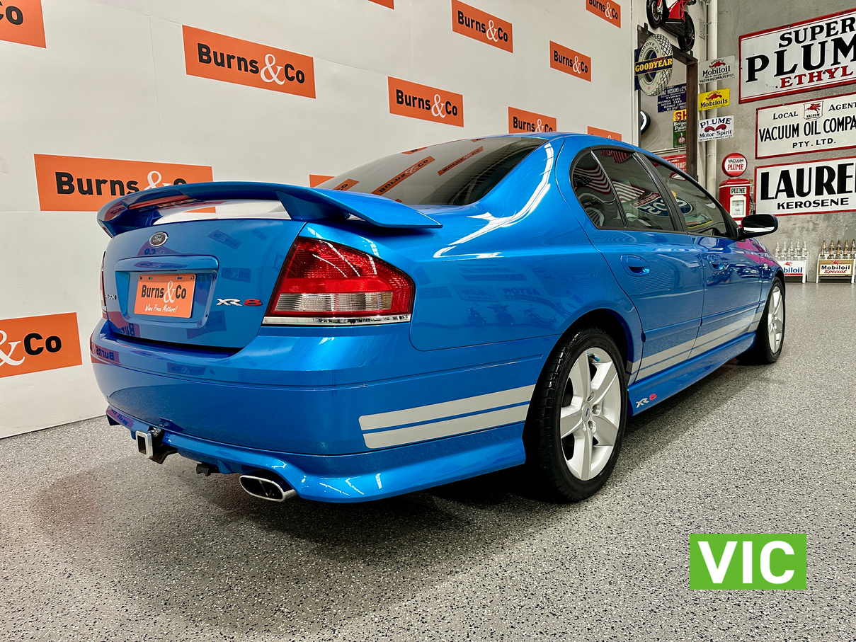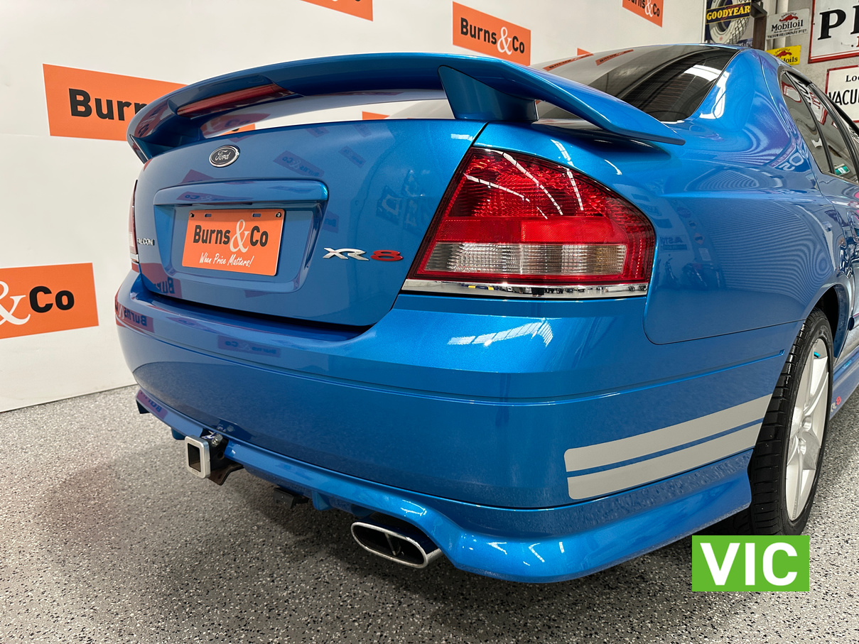 From the exquisite colour combination of Blueprint mica pearl with Blueprint cloth interior to the gleaming silver XR8 wheels, one look at this BA and you know its lived the life of luxury. Having travelled a mere 054491 Kms from new, the vendor purchased the car from Brian Glynn Ford Lilydale on the 8/4/2004. Supplied with the vehicle is the original owner’s manual, Brian Glynn Ford wallet and service books. This is undoubtably the best example of a BA XR8 we’ve seen and inspections will not disappoint.