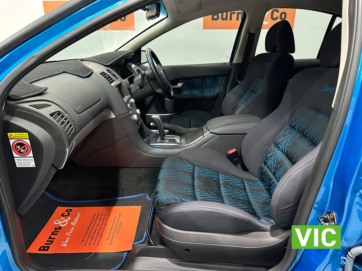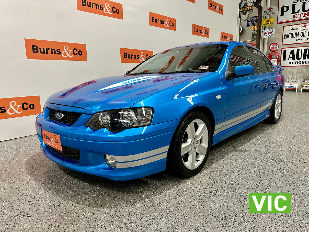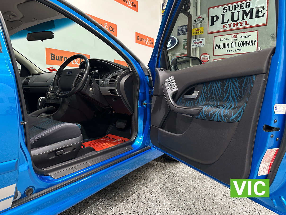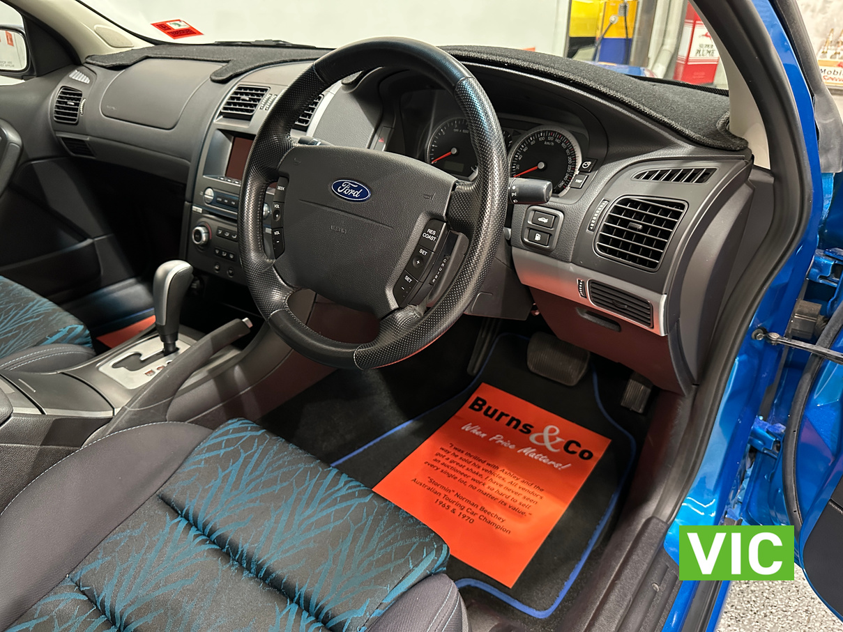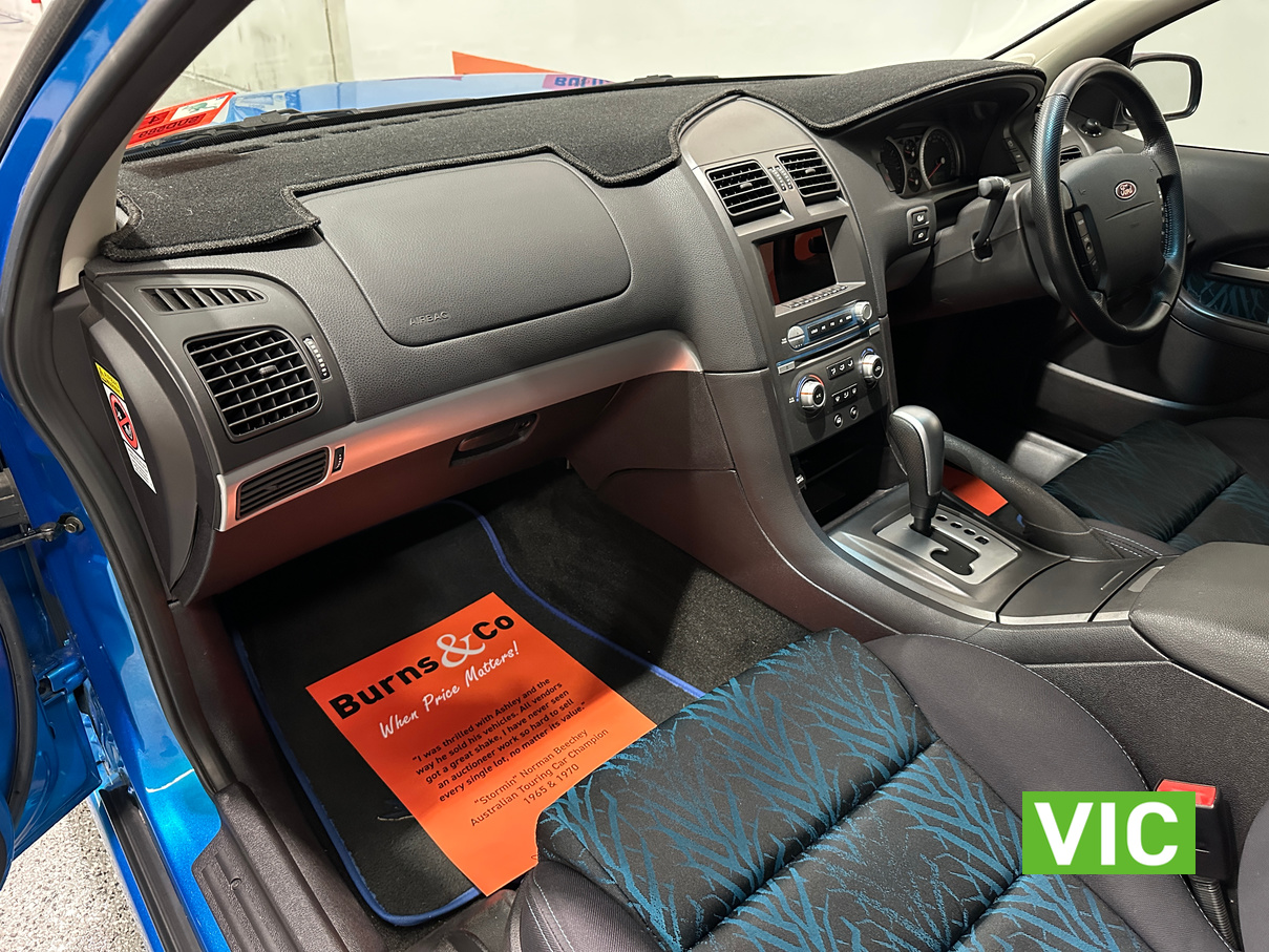 From the exquisite colour combination of Blueprint mica pearl with Blueprint cloth interior to the gleaming silver XR8 wheels, one look at this BA and you know its lived the life of luxury. Having travelled a mere 054491 Kms from new, the vendor purchased the car from Brian Glynn Ford Lilydale on the 8/4/2004. Supplied with the vehicle is the original owner’s manual, Brian Glynn Ford wallet and service books. This is undoubtably the best example of a BA XR8 we’ve seen and inspections will not disappoint.