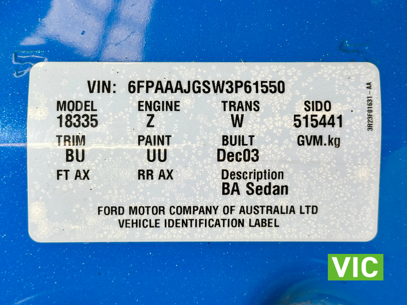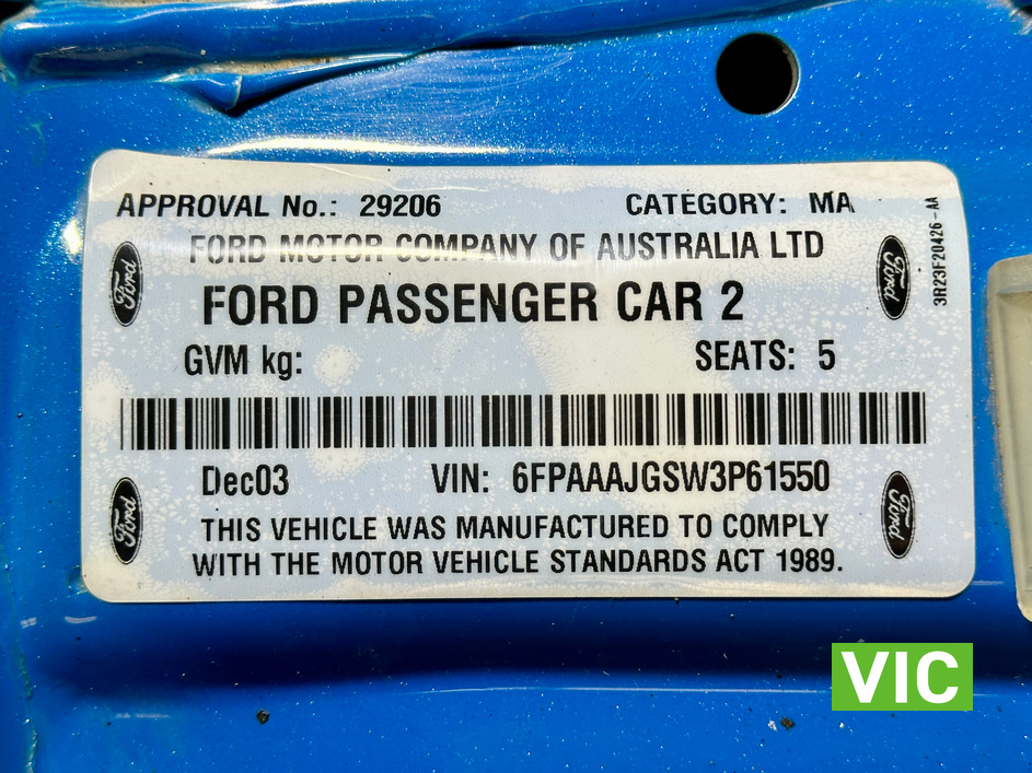 VIN / Chassis No: 6FPAAAJGSW3P61550
