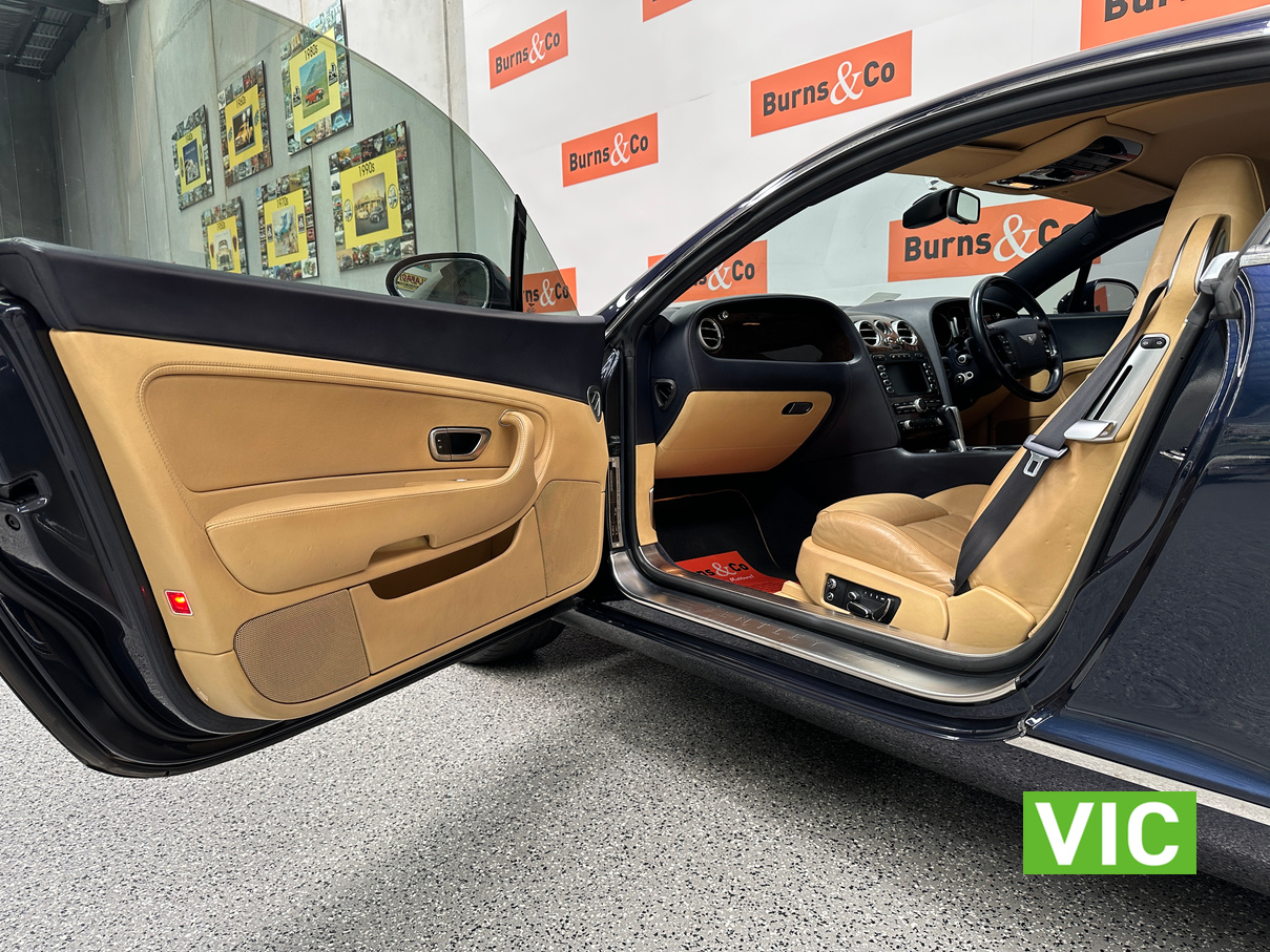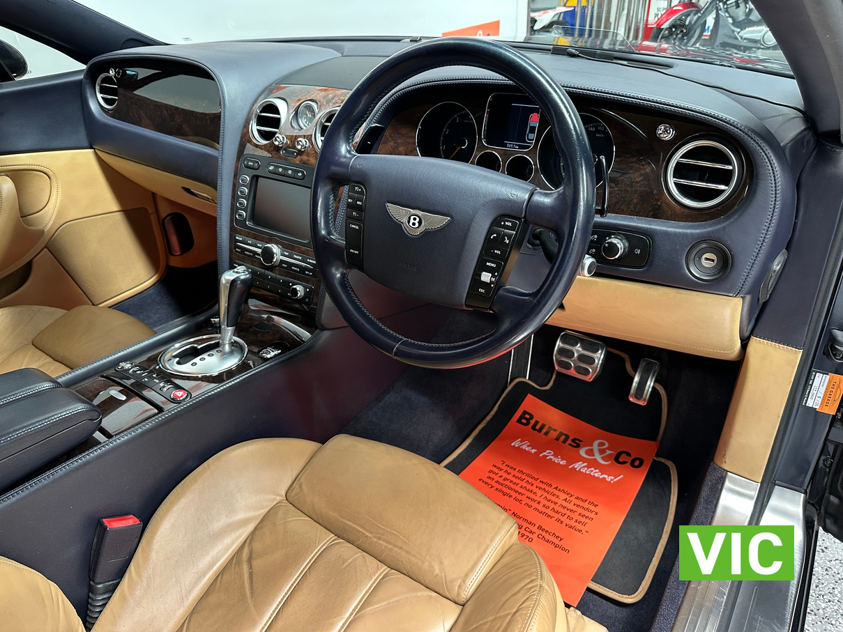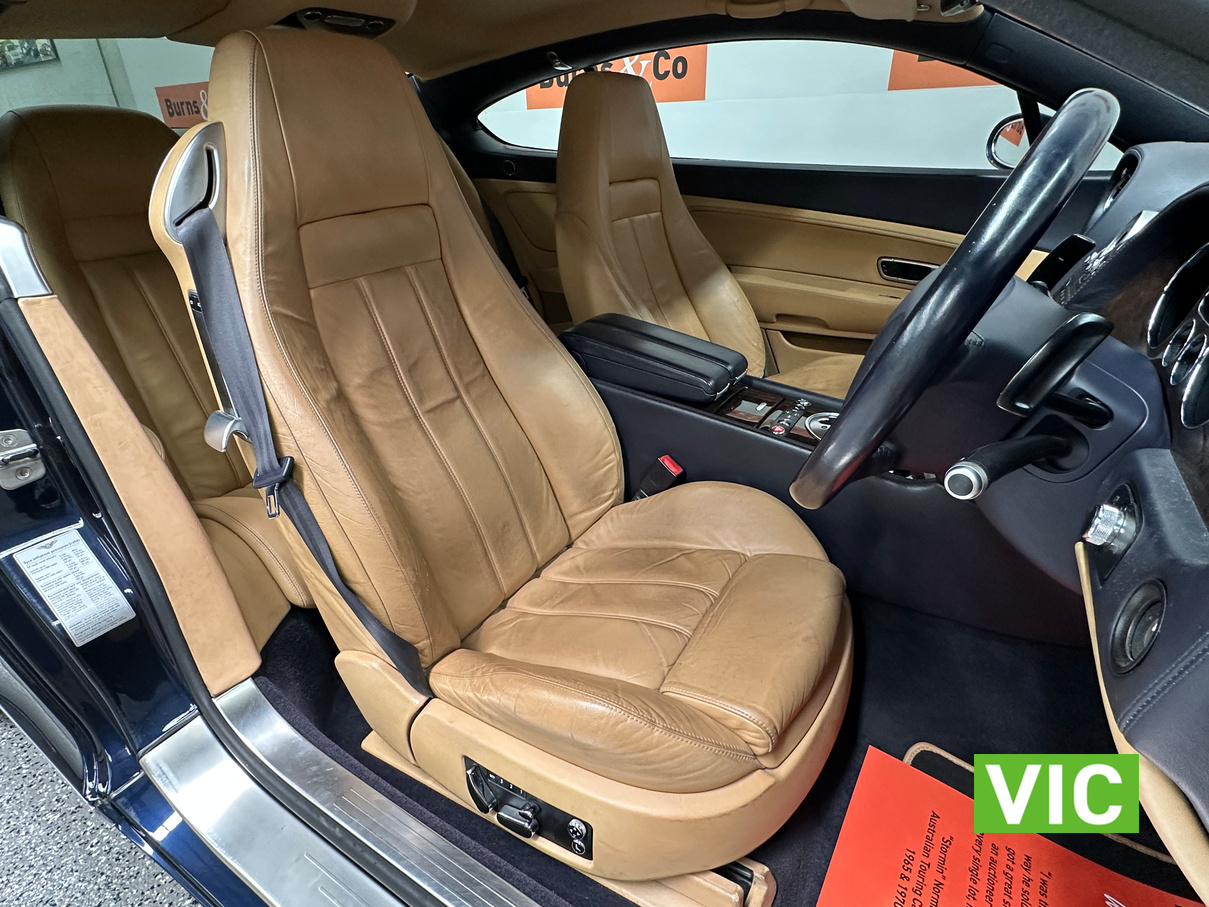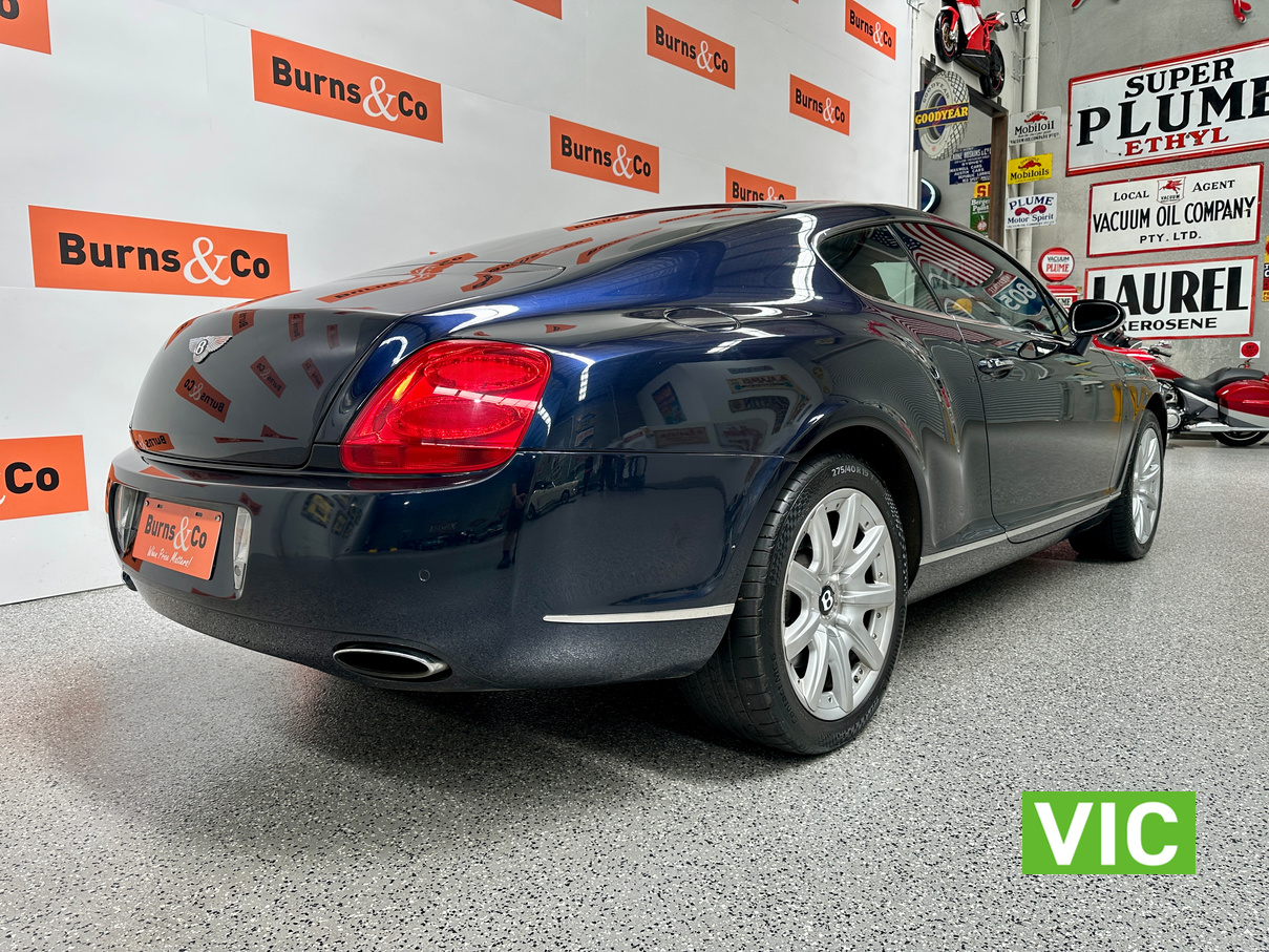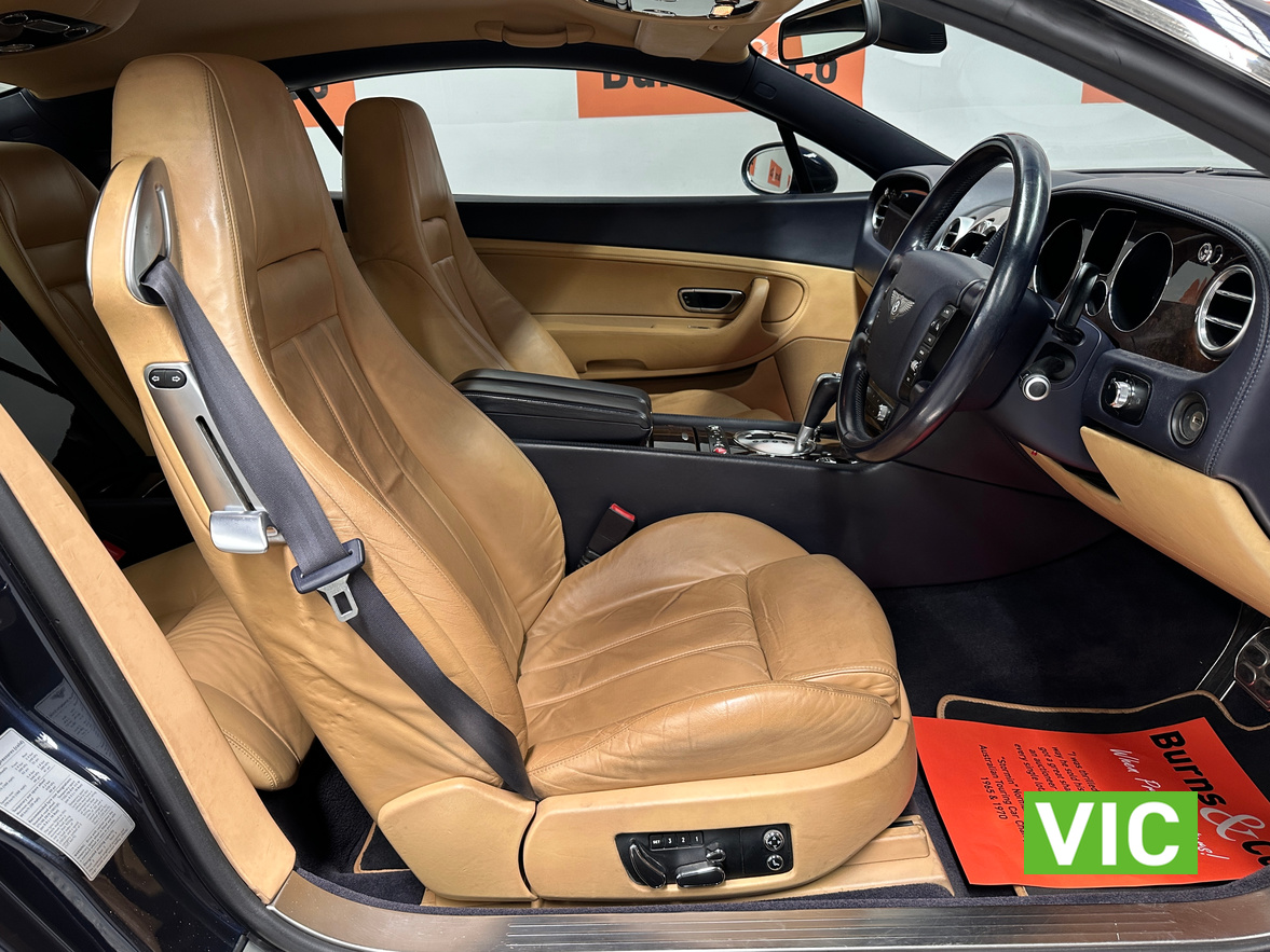 The 2004 Bentley Continental GT offers immense luxury, a powerful W12 engine with effortless speed, and exquisite hand-finished interiors. A muscular yet elegant design that makes a strong statement and turns heads. The 6-litre W12 engine delivers huge power (411kW) and torque (650Nm) for blistering acceleration, making high speeds easily attainable. Masterfully crafted with hand-stitched leather (even headliner), polished metal, wood, and a Breitling clock; feels solid and bespoke. Designed for comfortable, long-distance cruising with immense stability and power.