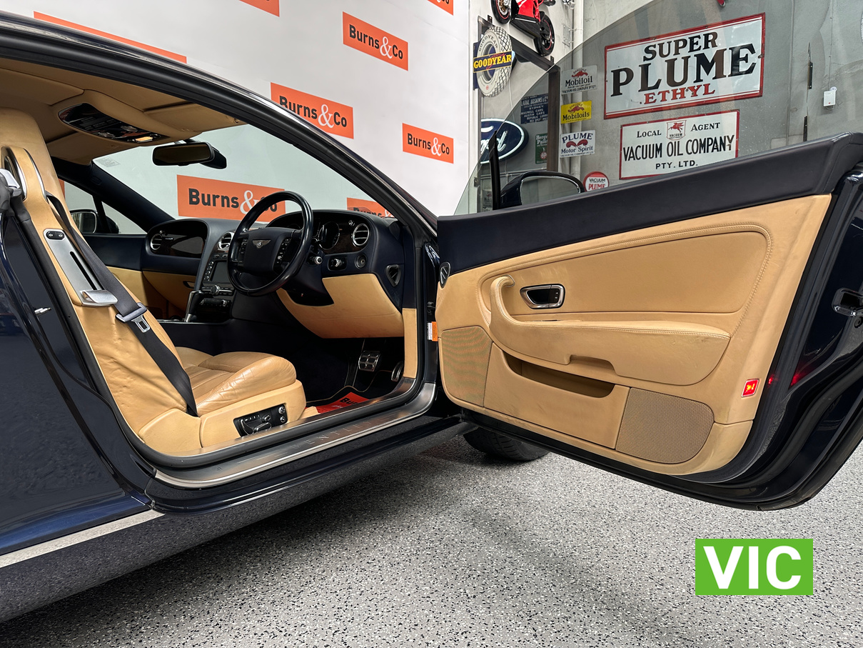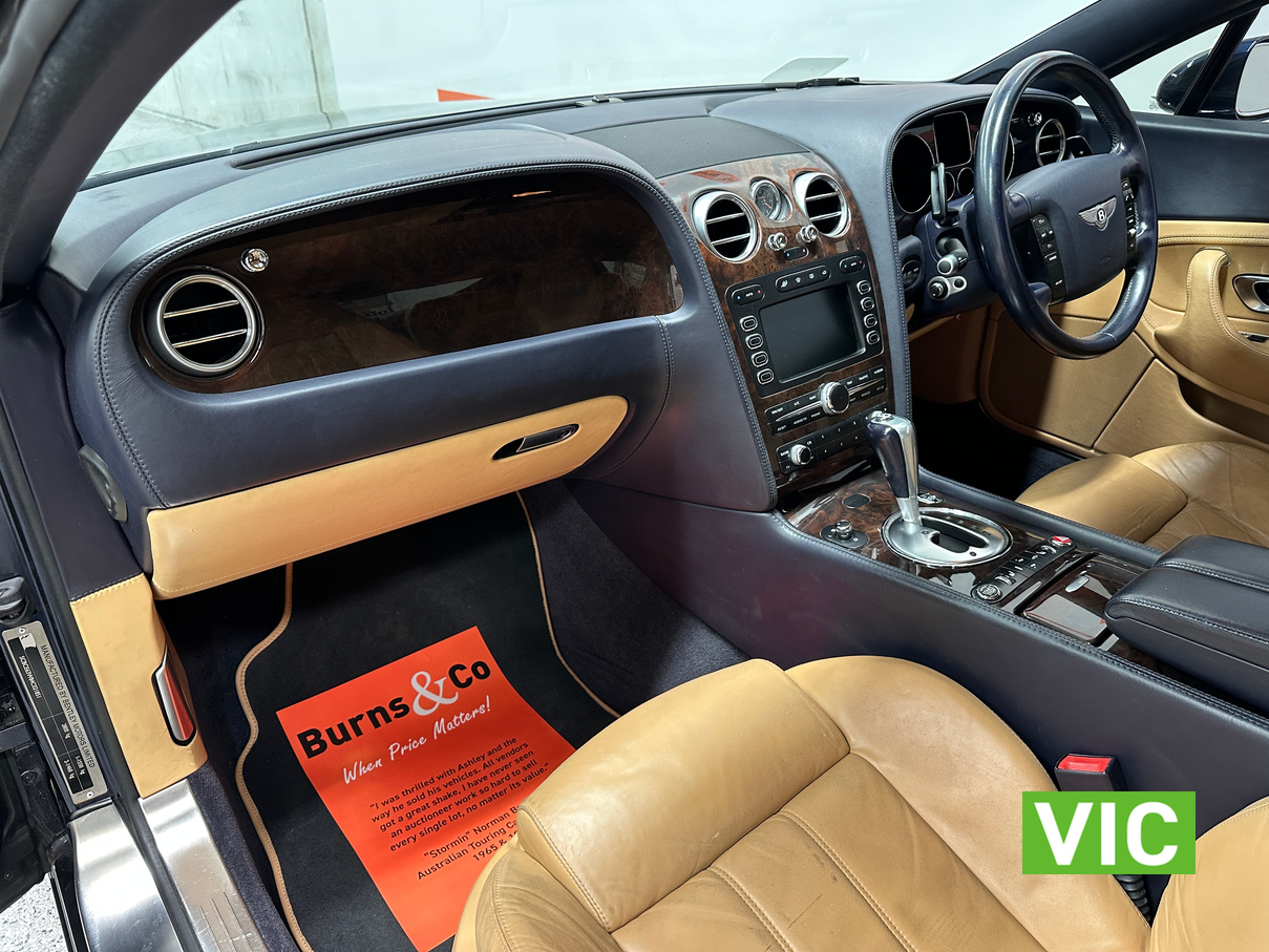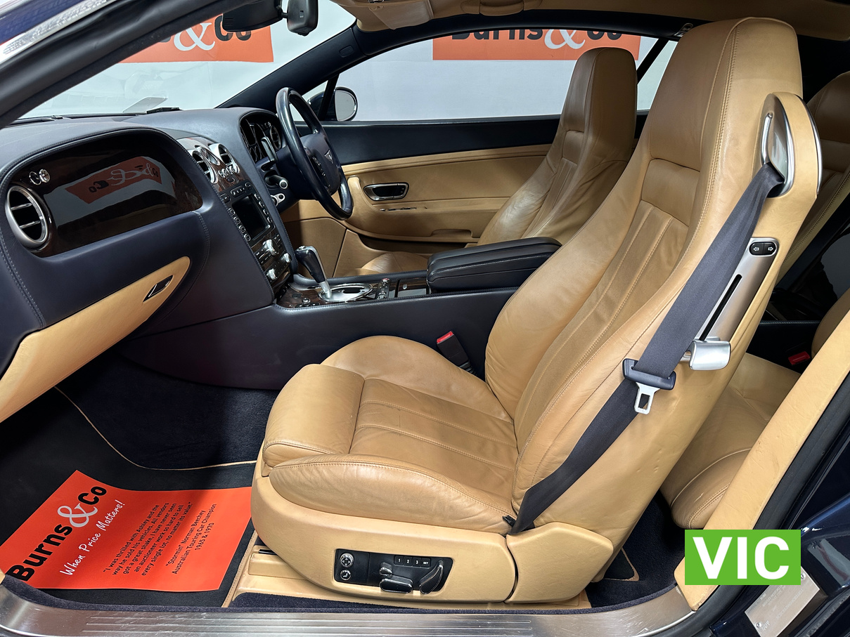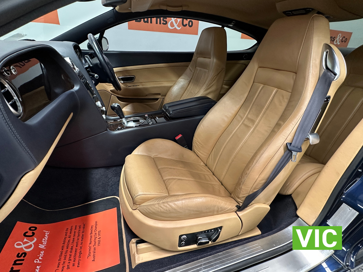 The 2004 Bentley Continental GT offers immense luxury, a powerful W12 engine with effortless speed, and exquisite hand-finished interiors. A muscular yet elegant design that makes a strong statement and turns heads. The 6-litre W12 engine delivers huge power (411kW) and torque (650Nm) for blistering acceleration, making high speeds easily attainable. Masterfully crafted with hand-stitched leather (even headliner), polished metal, wood, and a Breitling clock; feels solid and bespoke. Designed for comfortable, long-distance cruising with immense stability and power.