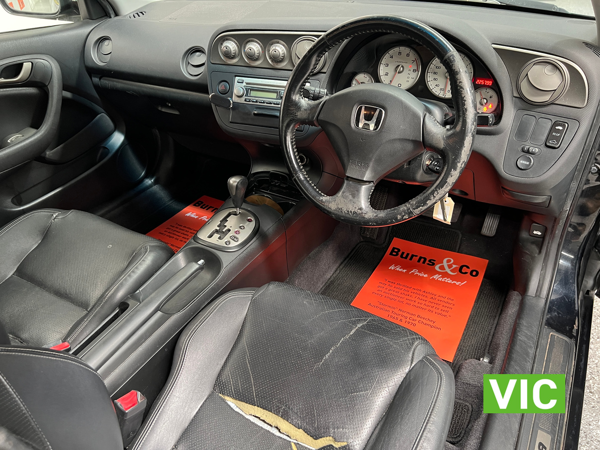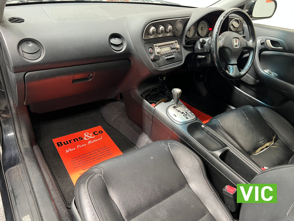 Sporty 2000s Honda coupe! Has been brought into our Bayswater facility for genuine sale. Reasonable condition inside and out. Automatic with leather interior, 225799 Kilometers on the clock, built in the march of 2006 making this one of the last Integras built. Good opportunity.