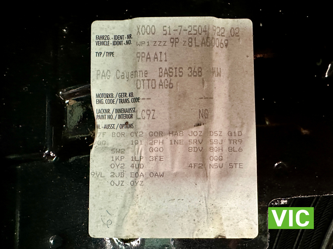 VIN / Chassis No: WP1ZZZ9PZ8LA80069