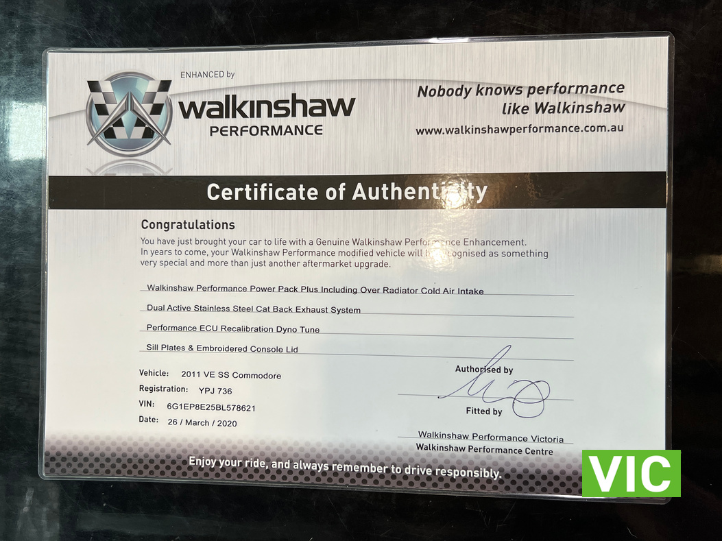 Factory manual VE SSV Redline V8. Long term owner 5+ years, very well maintained inside and out. Regularly serviced with service history supplied. Original owner’s manual and service & warranty book comes with the car. Fitted with Walkinshaw performance power pack, Walkinshaw dual active stainless steel cat back exhaust system, Walkinshaw performance ECU dyno tune and Walkinshaw sill plates. The Walkinshaw certificate is also available certifying correct fitment and guarantee of quality.