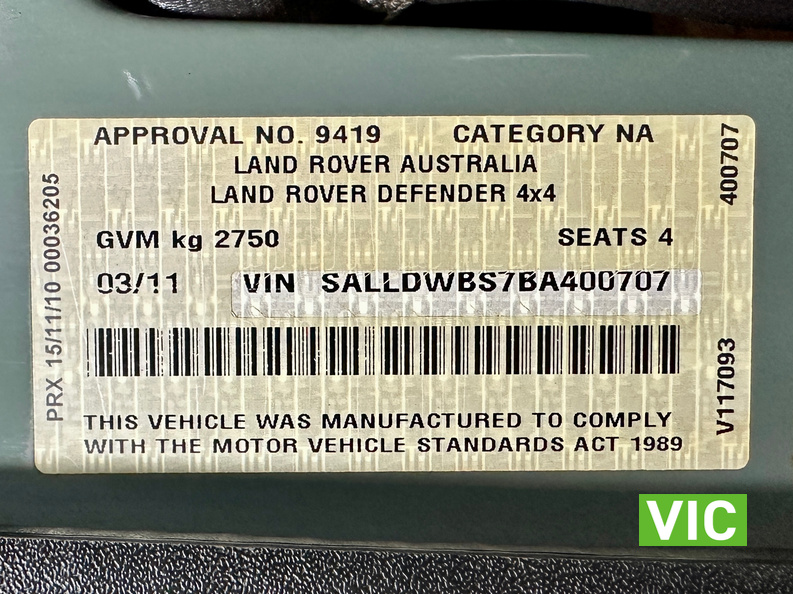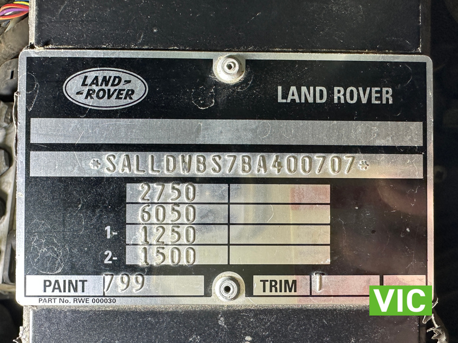 VIN / Chassis No.: SALLDWBS7BA400707