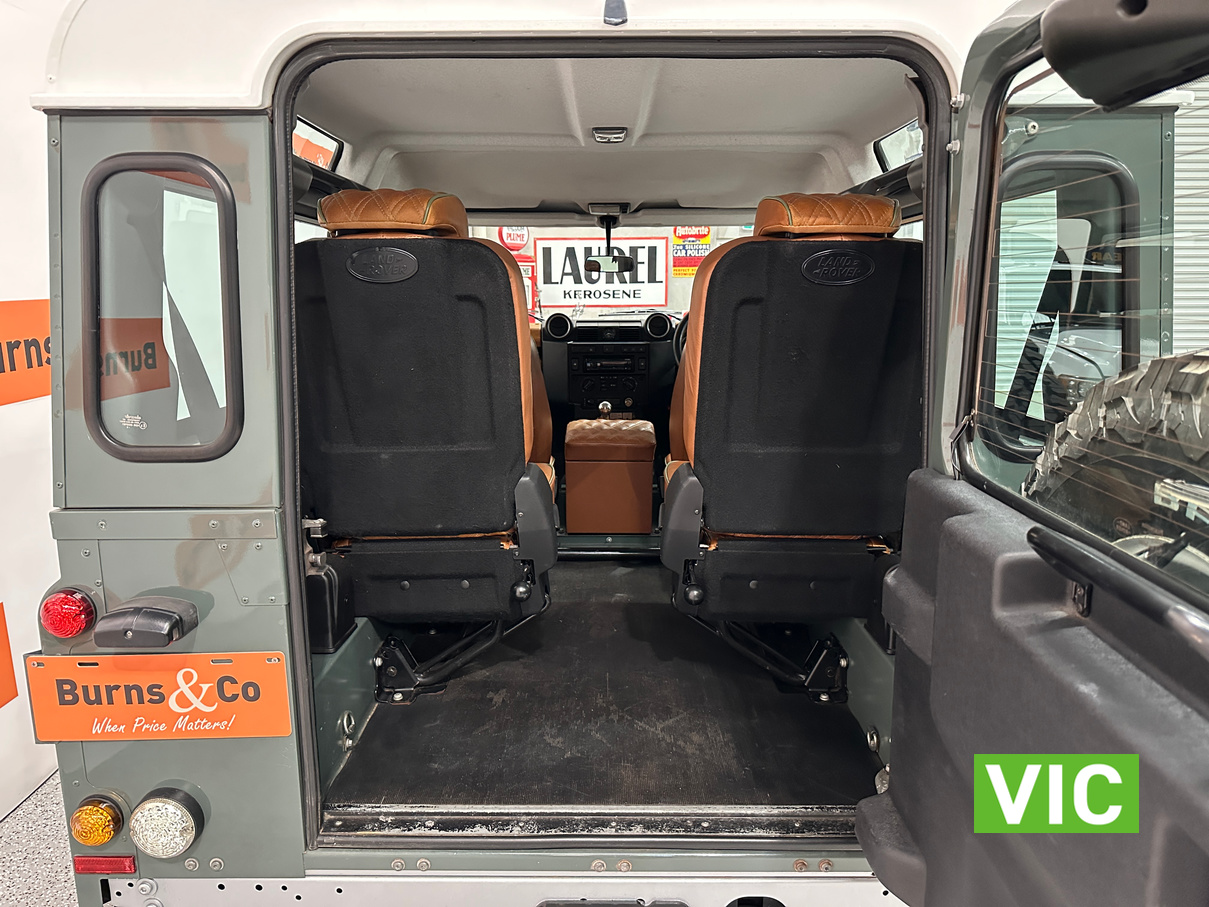 3/2011 Land Rover Defender 90 short wheel base, fitted with the 2.4L turbo diesel and coupled to a 6 speed manual gearbox. Nicely finished off in Heritage green with the white roof and a plush tan leather interior. To make the trip all the more comfortable it has A/C, power steering, power windows and heated seats.