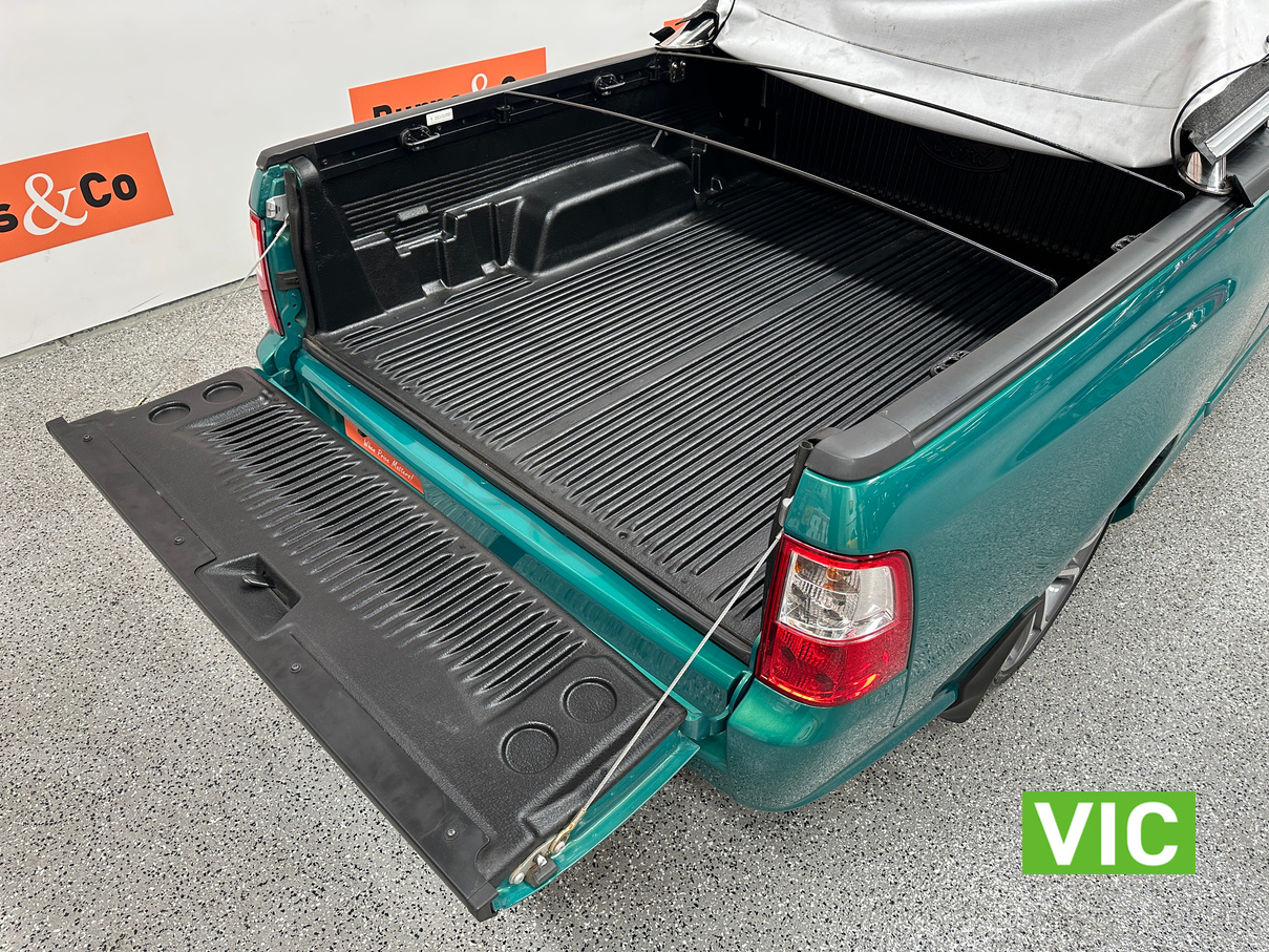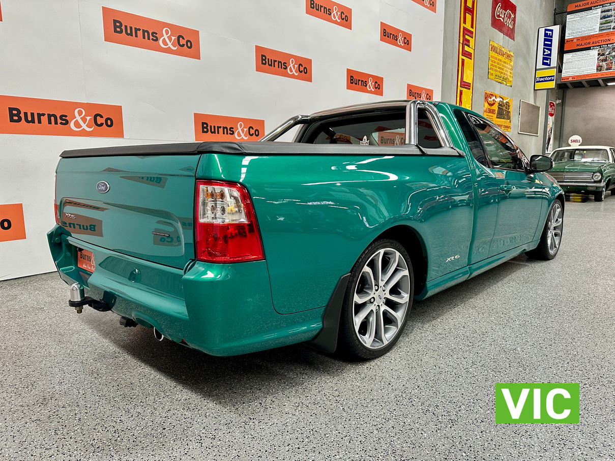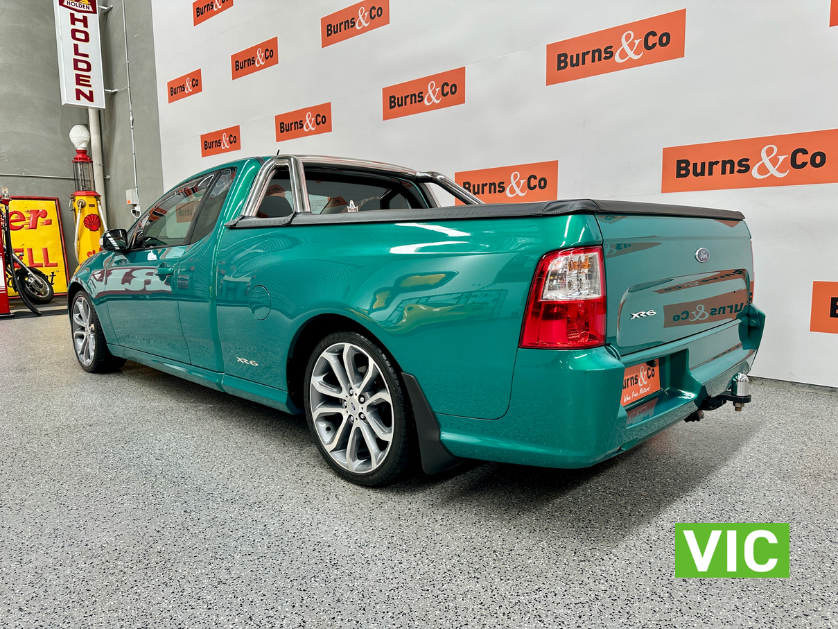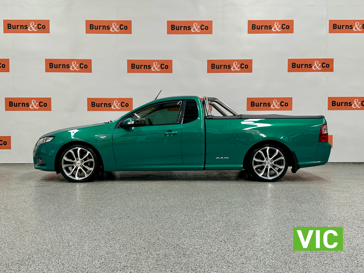 Immaculate FG XR6 Ute! Impeccably kept inside and out, leather trim and upholstery is supple and clean, original XR floor mats, Ford weather shields and tub liner also fitted. A very low 31439 Kms built in August 2012, a very attractive example finished in Swift Green Metallic Pearl. Original books, service papers and other documents are also supplied with the vehicle.