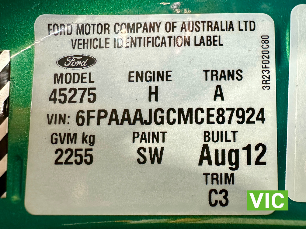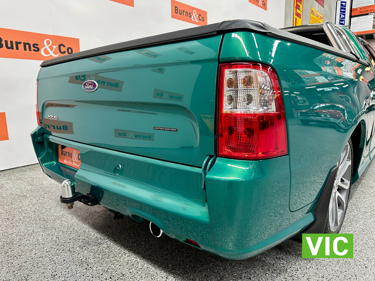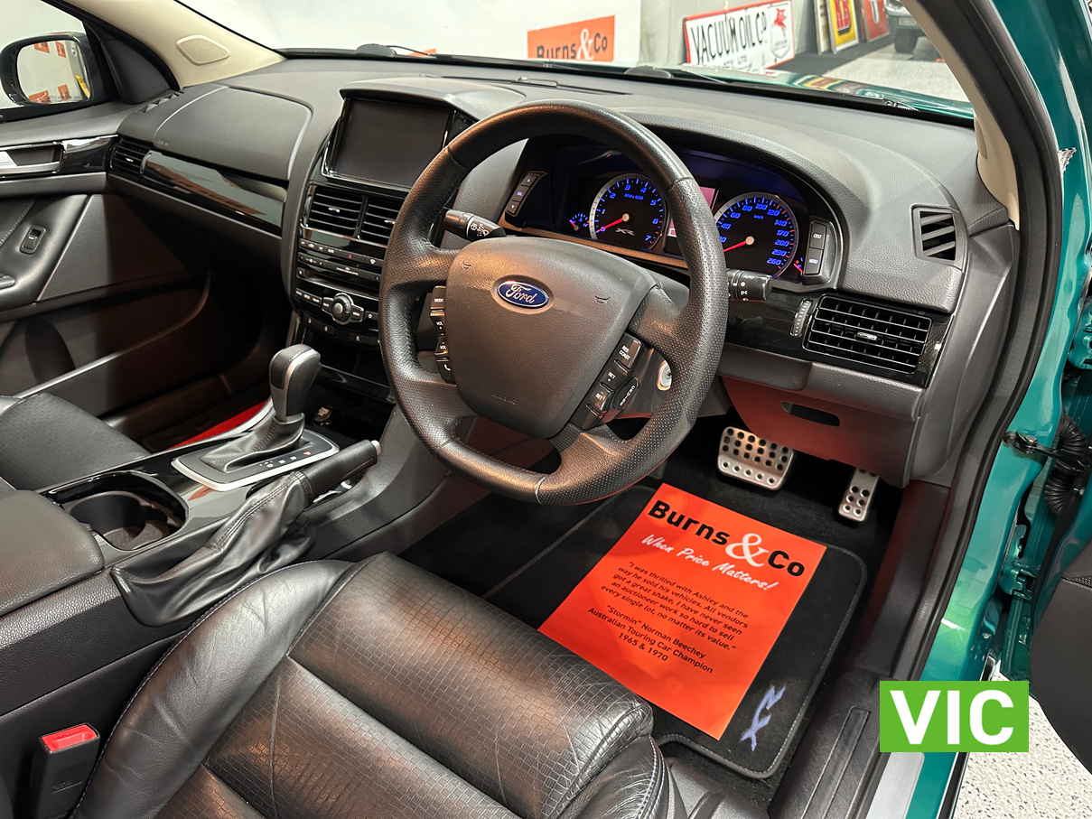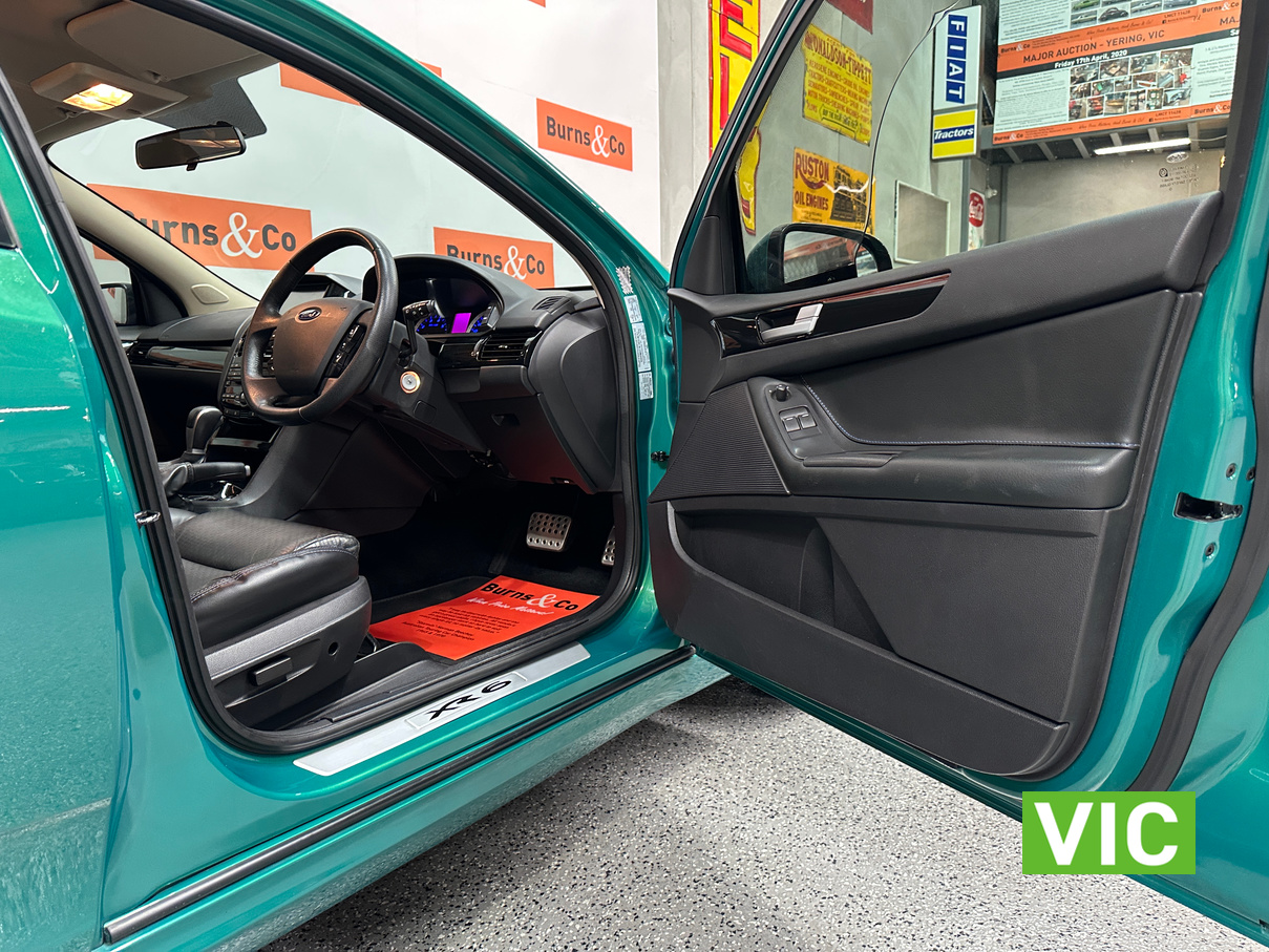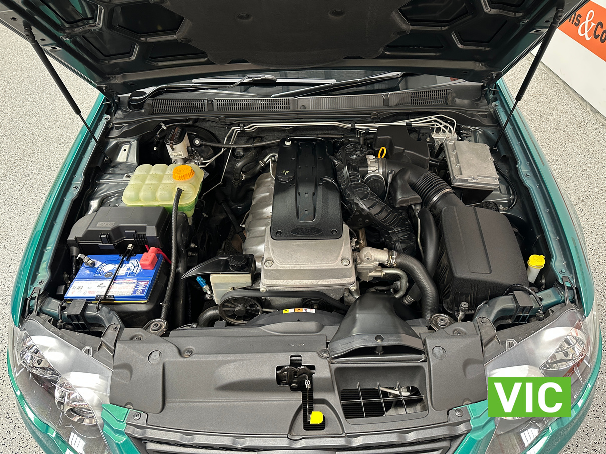 Immaculate FG XR6 Ute! Impeccably kept inside and out, leather trim and upholstery is supple and clean, original XR floor mats, Ford weather shields and tub liner also fitted. A very low 31439 Kms built in August 2012, a very attractive example finished in Swift Green Metallic Pearl. Original books, service papers and other documents are also supplied with the vehicle.