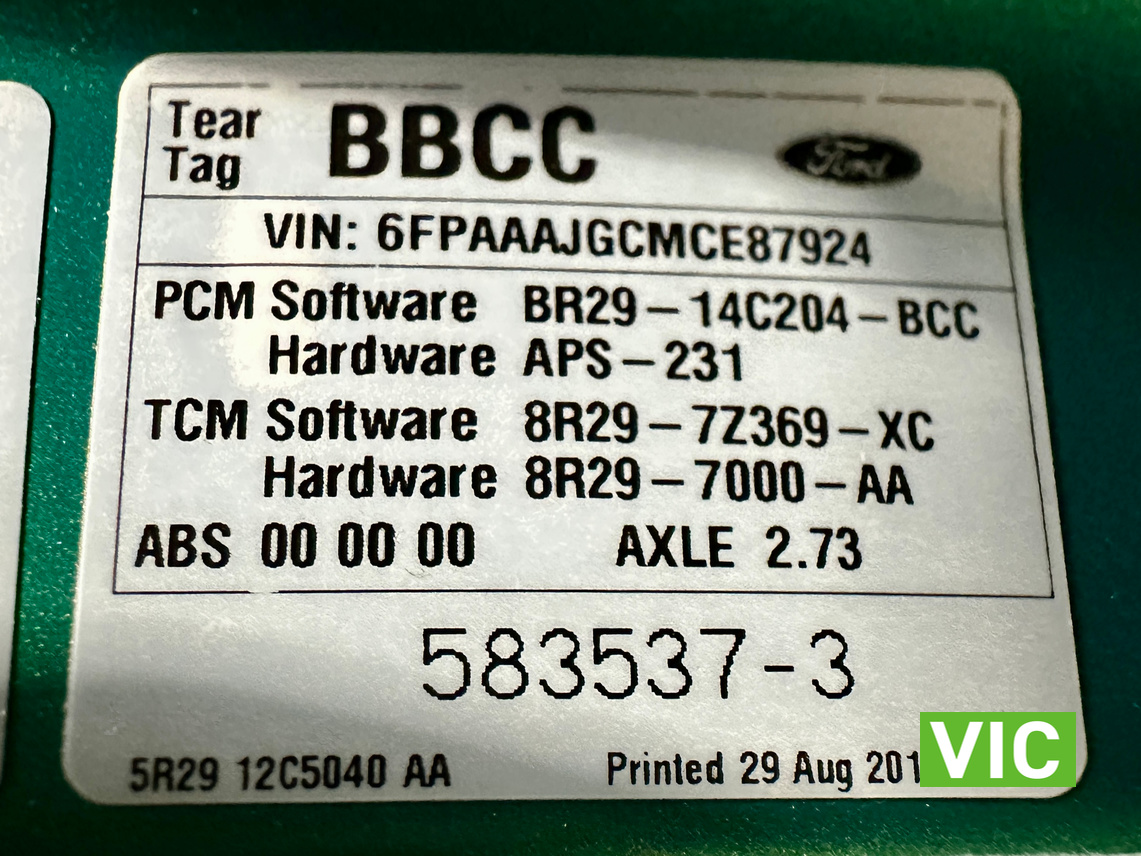 VIN / Chassis No.: 6FPAAAJGCMCE87924