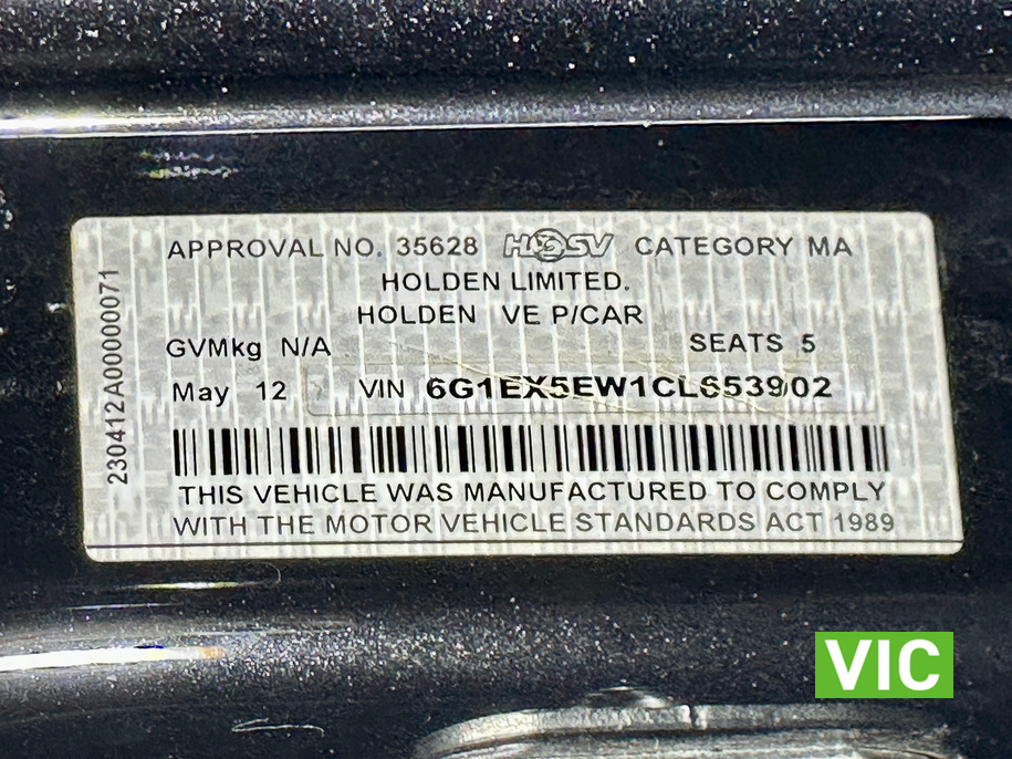 VIN / Chassis No: 6G1EX5EW1CL653902