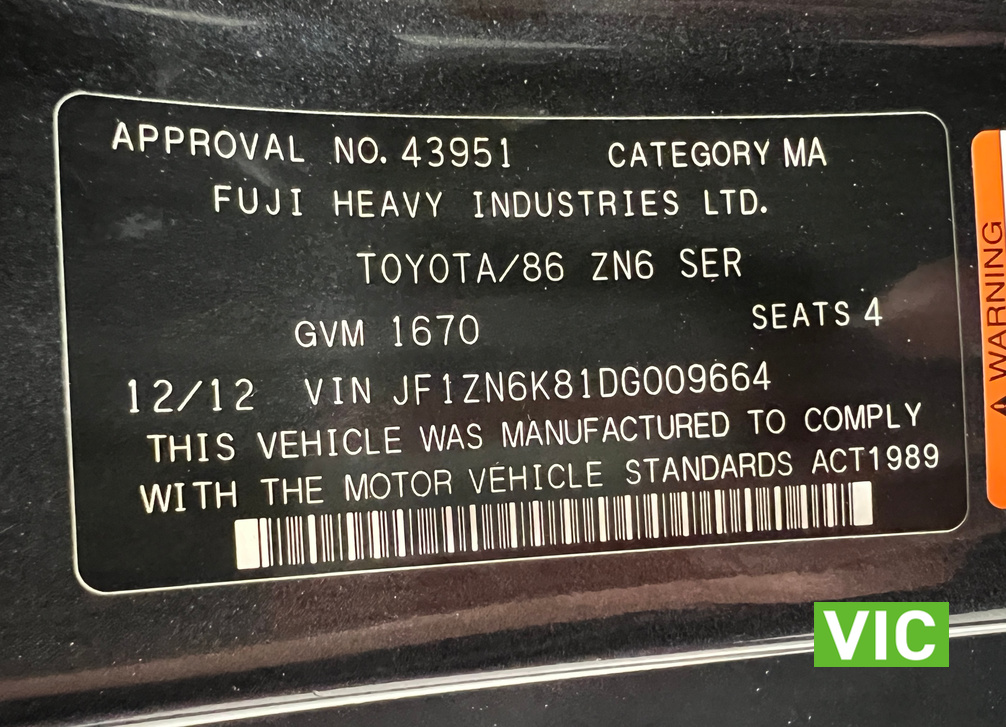 VIN / Chassis No.: JF1ZN6K81DG009664