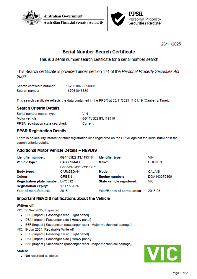 Arguably one of the most elegant colours in the VF range, Royal Peacock with a black interior. Fitted with the 6.0 Litre LS V8 coupled to an automatic transmission. This one has been a repairable write off and has been repaired, checked, inspected and reregistered in Victoria (sold unregistered).