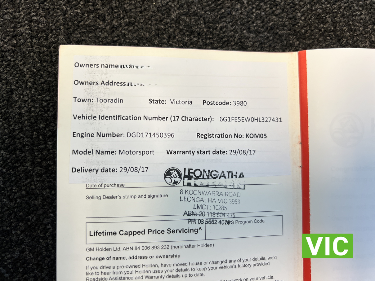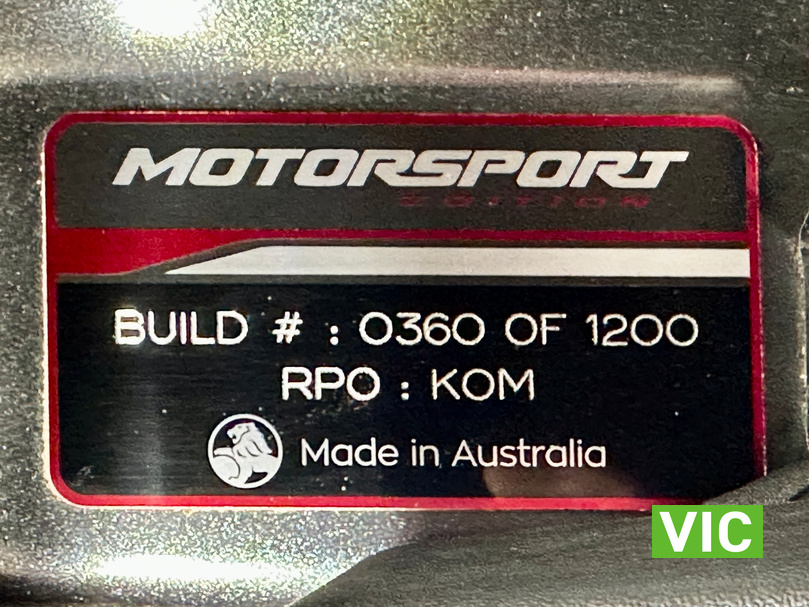 Supplied with the vehicle is the Motorsport edition owner’s box, original owner’s books and wallet and additional brochures/paraphernalia. This is a one owner example that was delivered new by Leongatha Holden on the 29/8/2017 to the vendor. Full logbook service history is also supplied with the vehicle. This is an excellent example of a hard to find model and one worthy of a place in a collection or museum.
