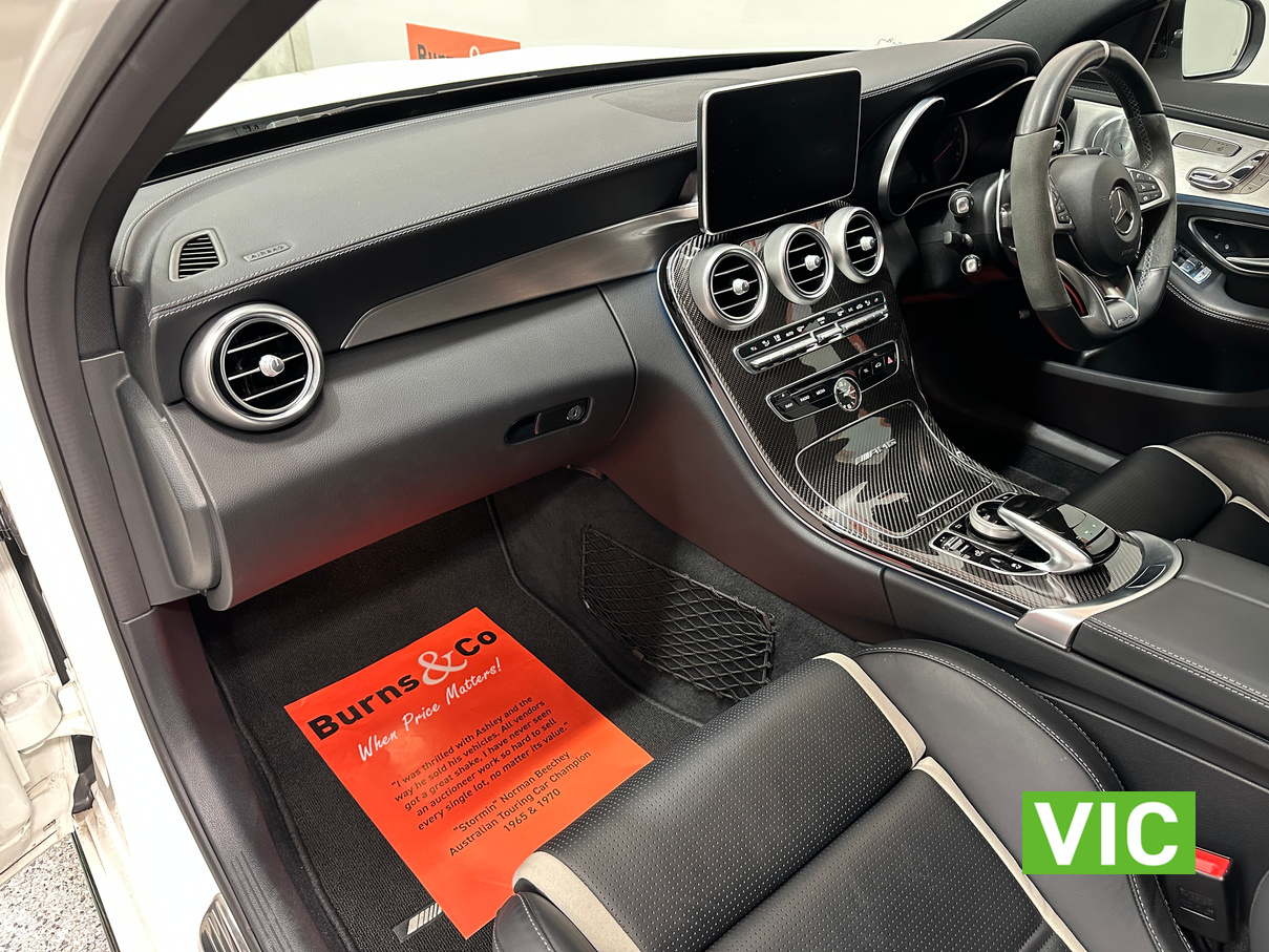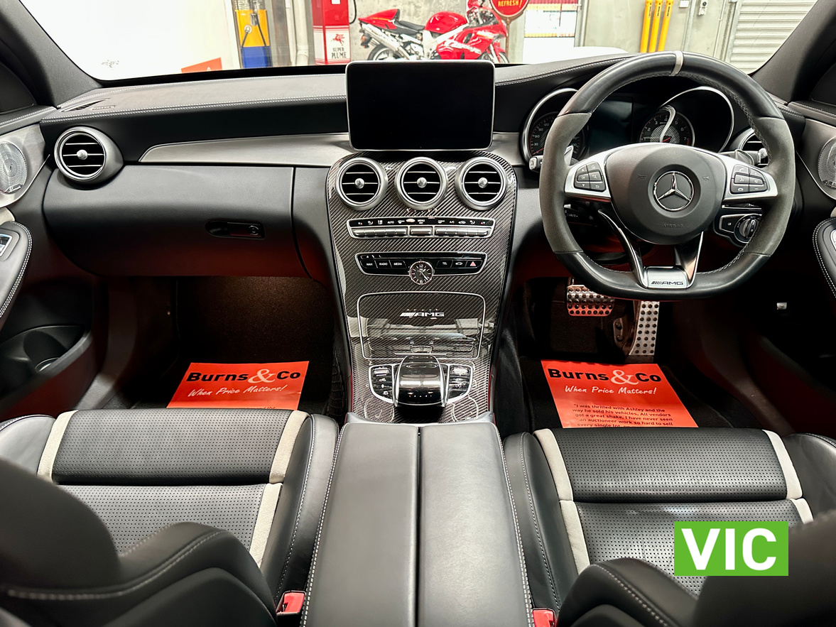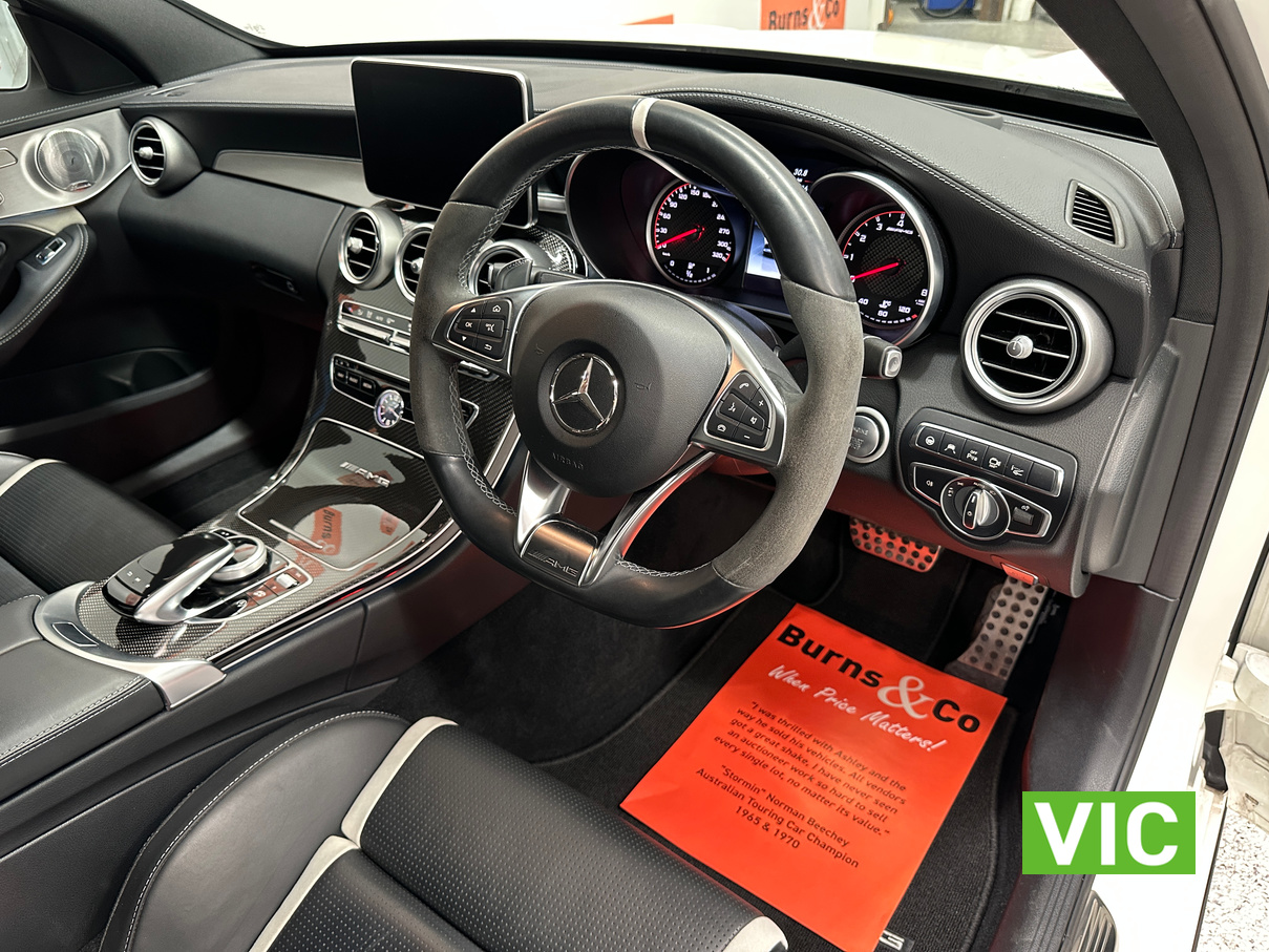 Top shelf modern luxury performance cruiser! <br><br> Purchased new by the vendor, this 1 owner 2017 Mercedes Benz C63S AMG Bi Turbo V8 looks like it’s just rolled of the showroom floor. Having only travelled a mere 022696 Km since new, it has always been serviced by Mercedes Benz Toorak. Complete with the original owner’s manual, Mercedes Benz wallet, delivery certificate and other supplementary manuals. Fitted with all the modern tech, including push button start, Keyless Entry, Blind Spot Alert, Rear Parking Camera, Assisted Cruise Control, auto braking, Auto Parking, Lane Assist, Heated Seats, Climate Control, Park Sensors and leather upholstery. The condition throughout can only be referred to as new and any inspection will not disappoint.