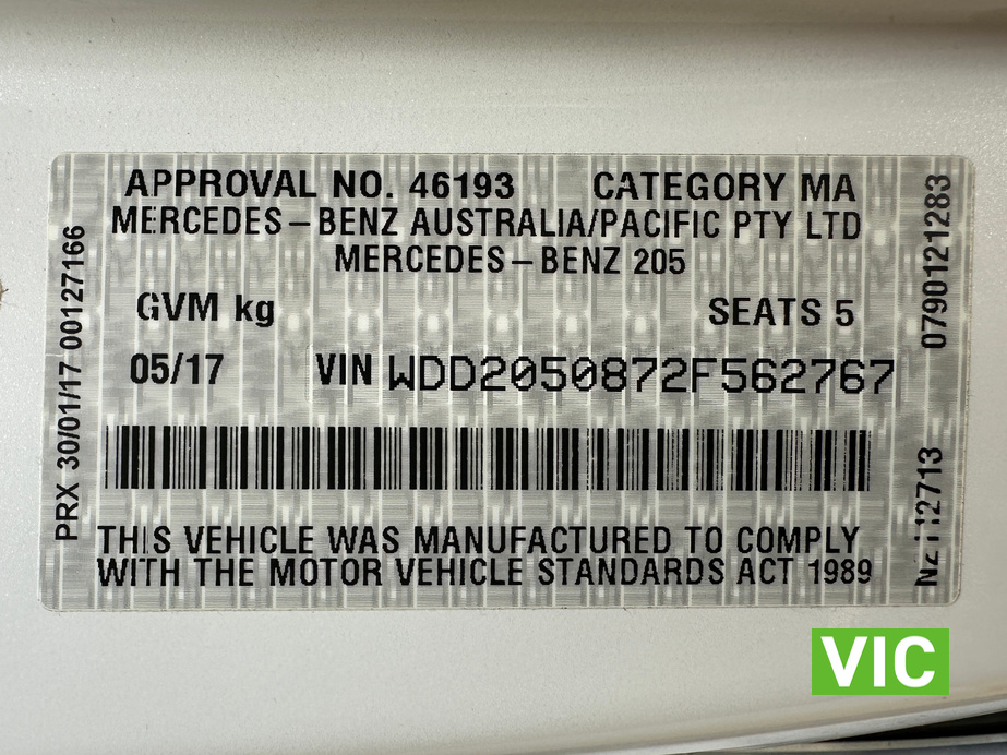 VIN / Chassis No: WDD2050872F562767