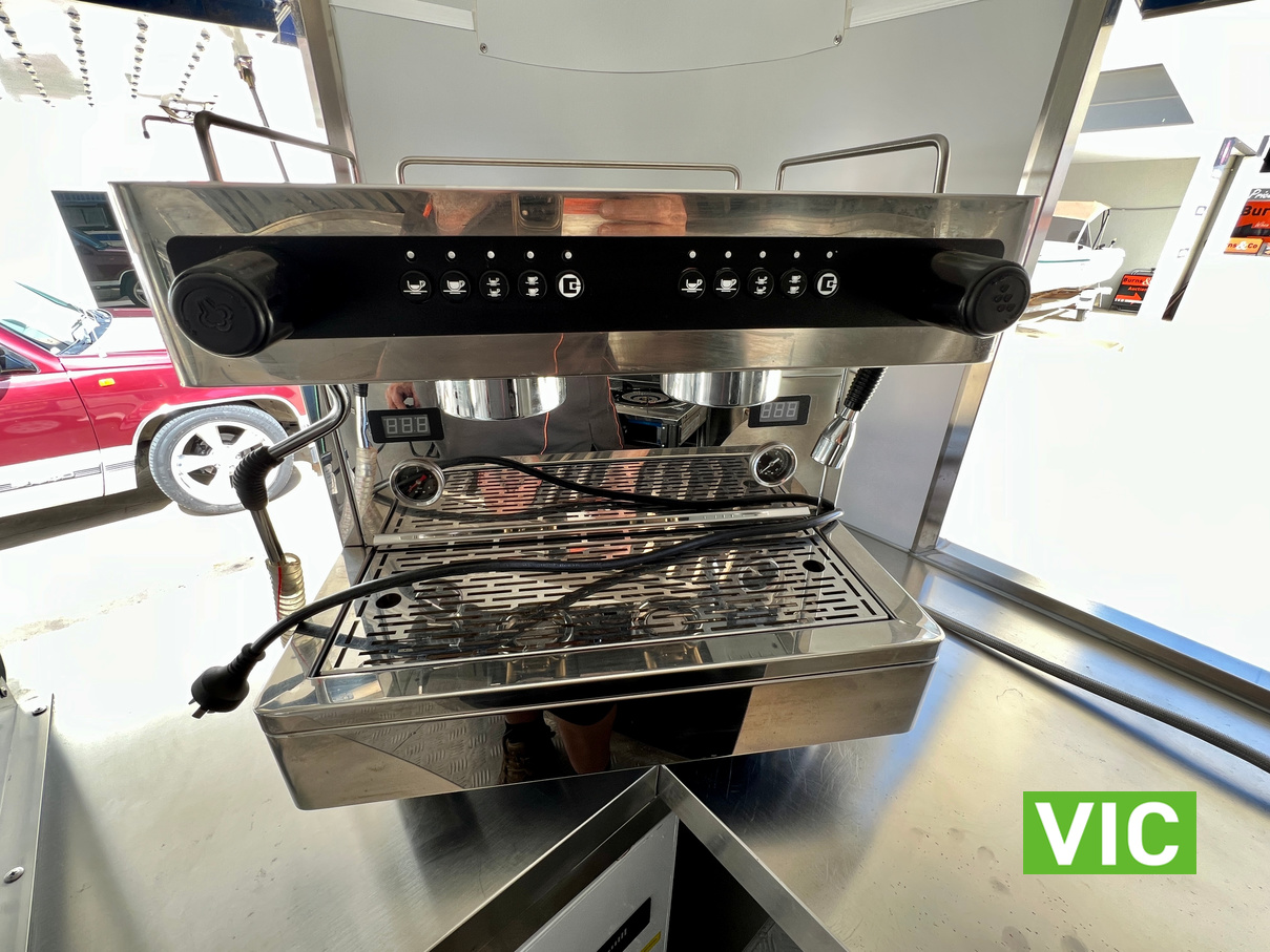 Features include: 3 generator outlets, generator leads included, no batteries, gas cooker, Australian axles upgraded to 80mm, upgraded to disc brakes + new hubs, new rims and tyres, water filter on coffee machine, water lines upgraded to poly, has grey water tank, has 2 sinks, 70l fresh water tank, outside lights are supplied with coffee equipment.