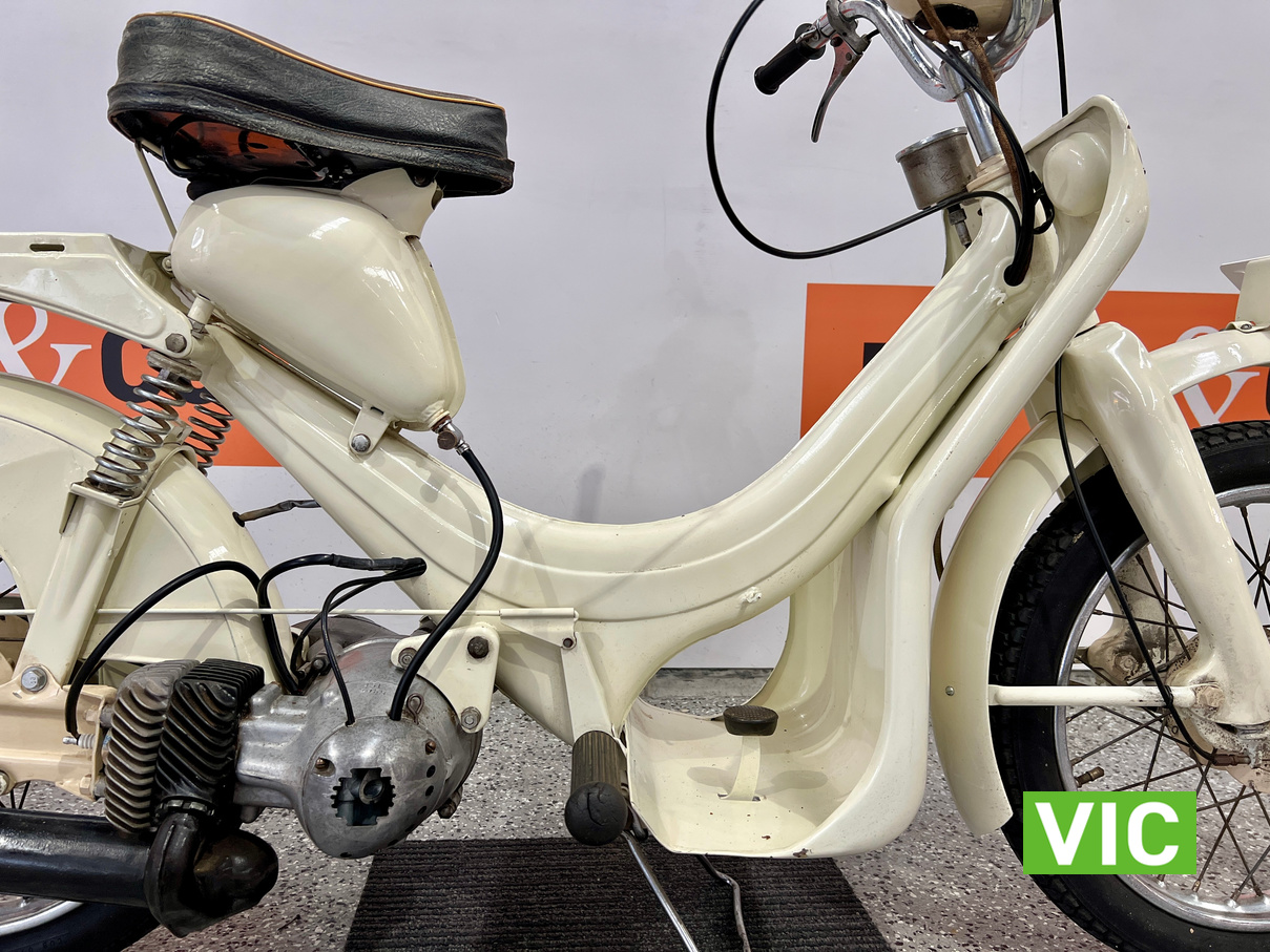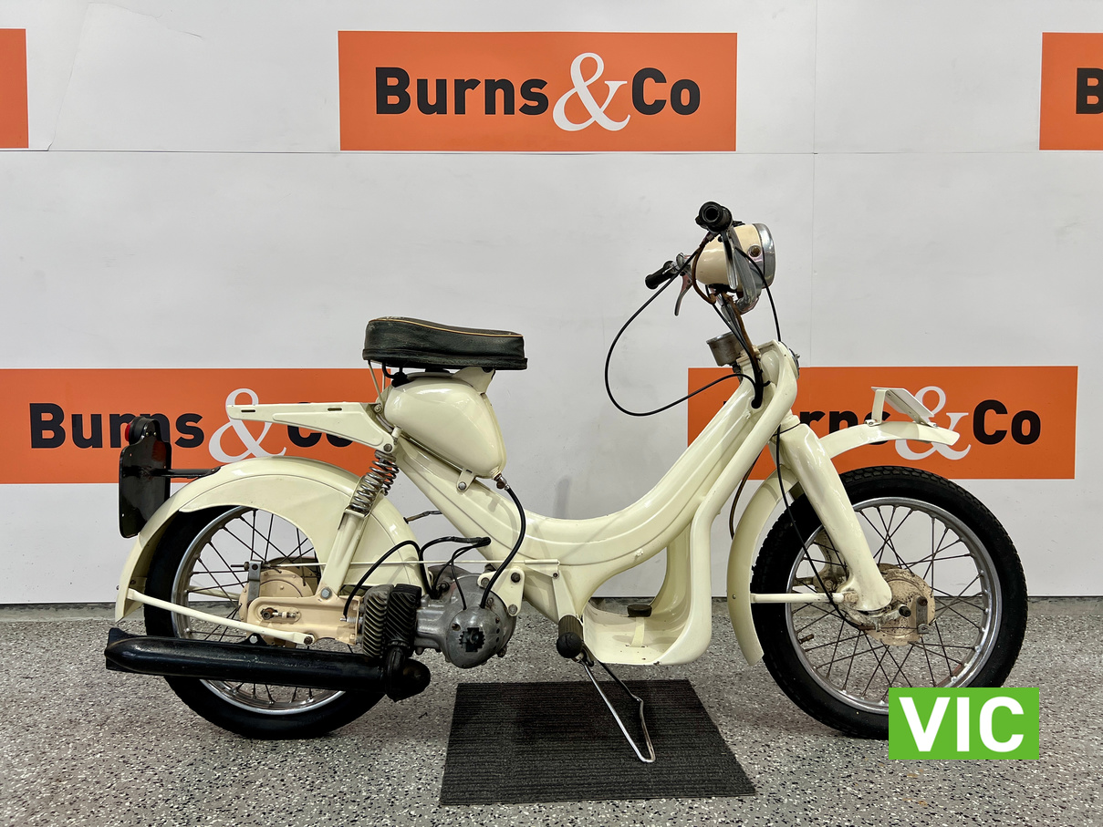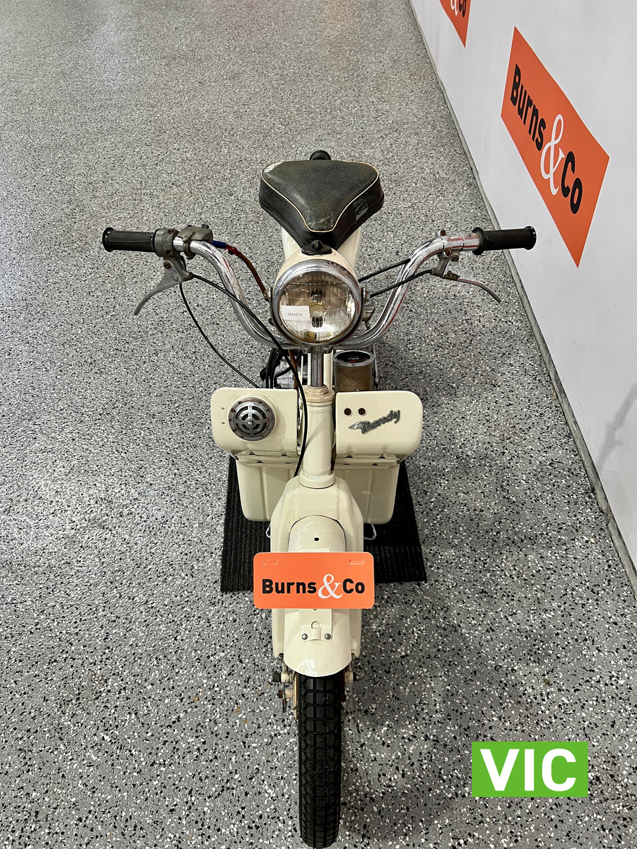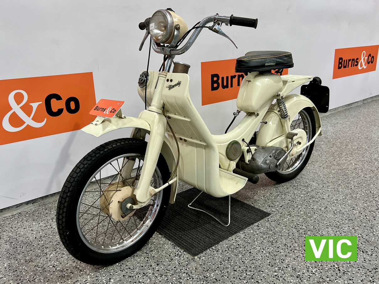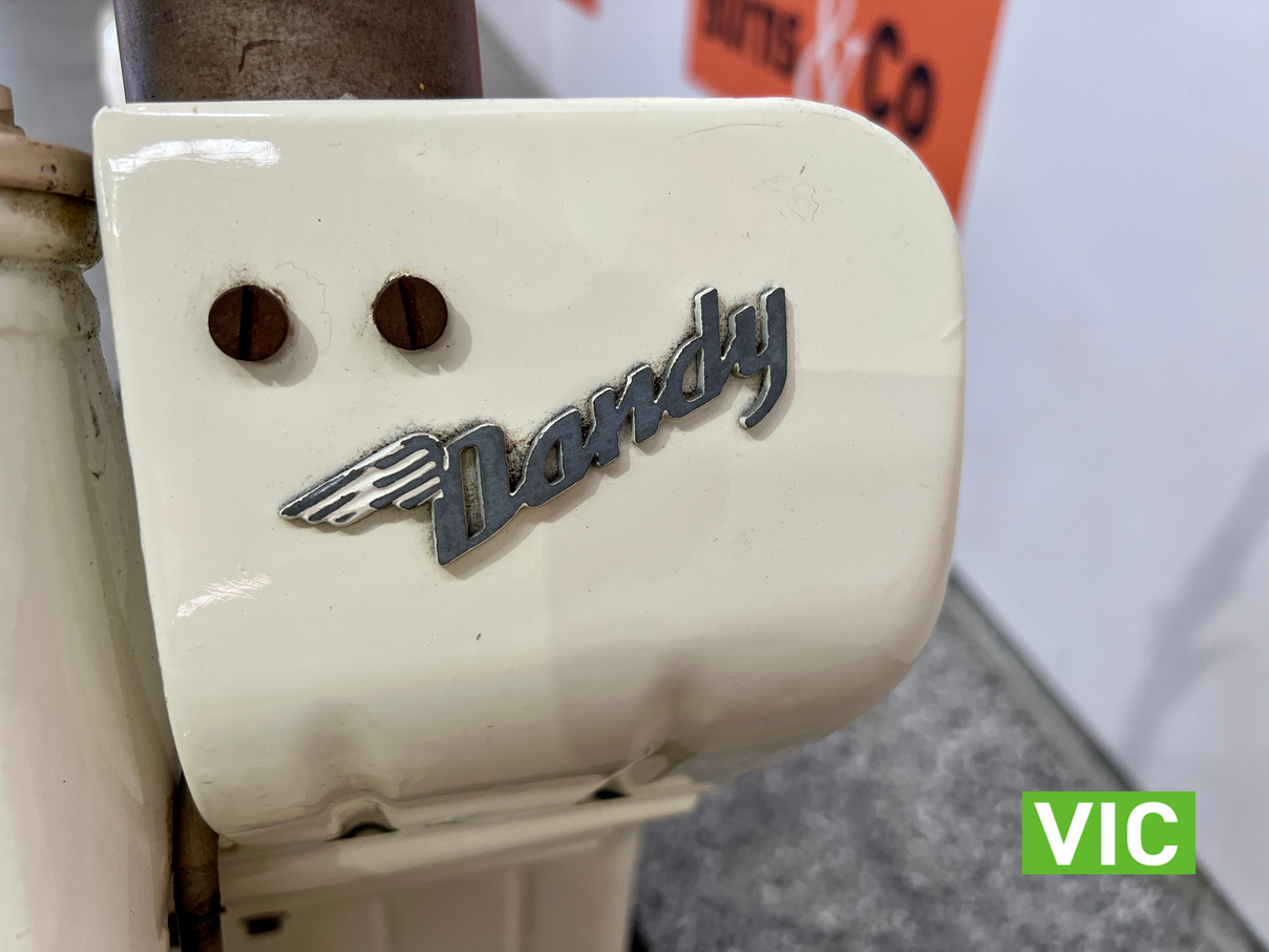 Well that’s just dandy! Original BSA Dandy fitted with a 70cc engine. This classic “scooterette” produced by the British Small Arms Company (BSA) between roughly 1956 and 1962 was designed as a lightweight, affordable commuter to compete with imported mopeds. This one is a rare survivor which would look perfect in the mancave or as a promotional vehicle. Vendor has shown us a video of the motorcycle running and riding approx 3 months ago.