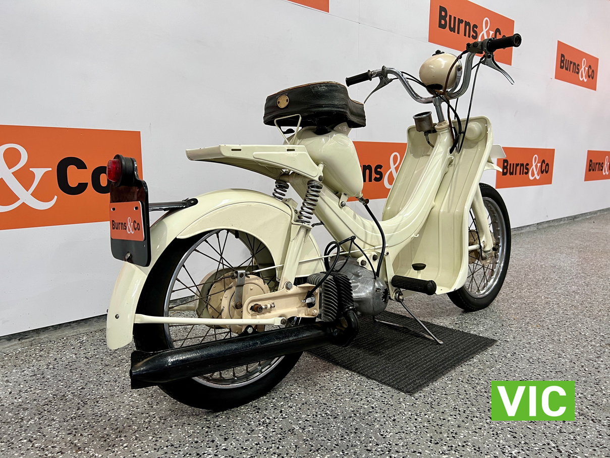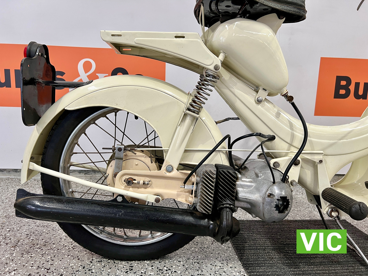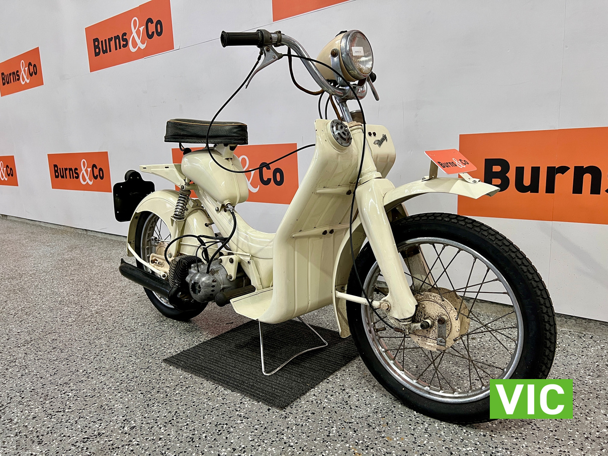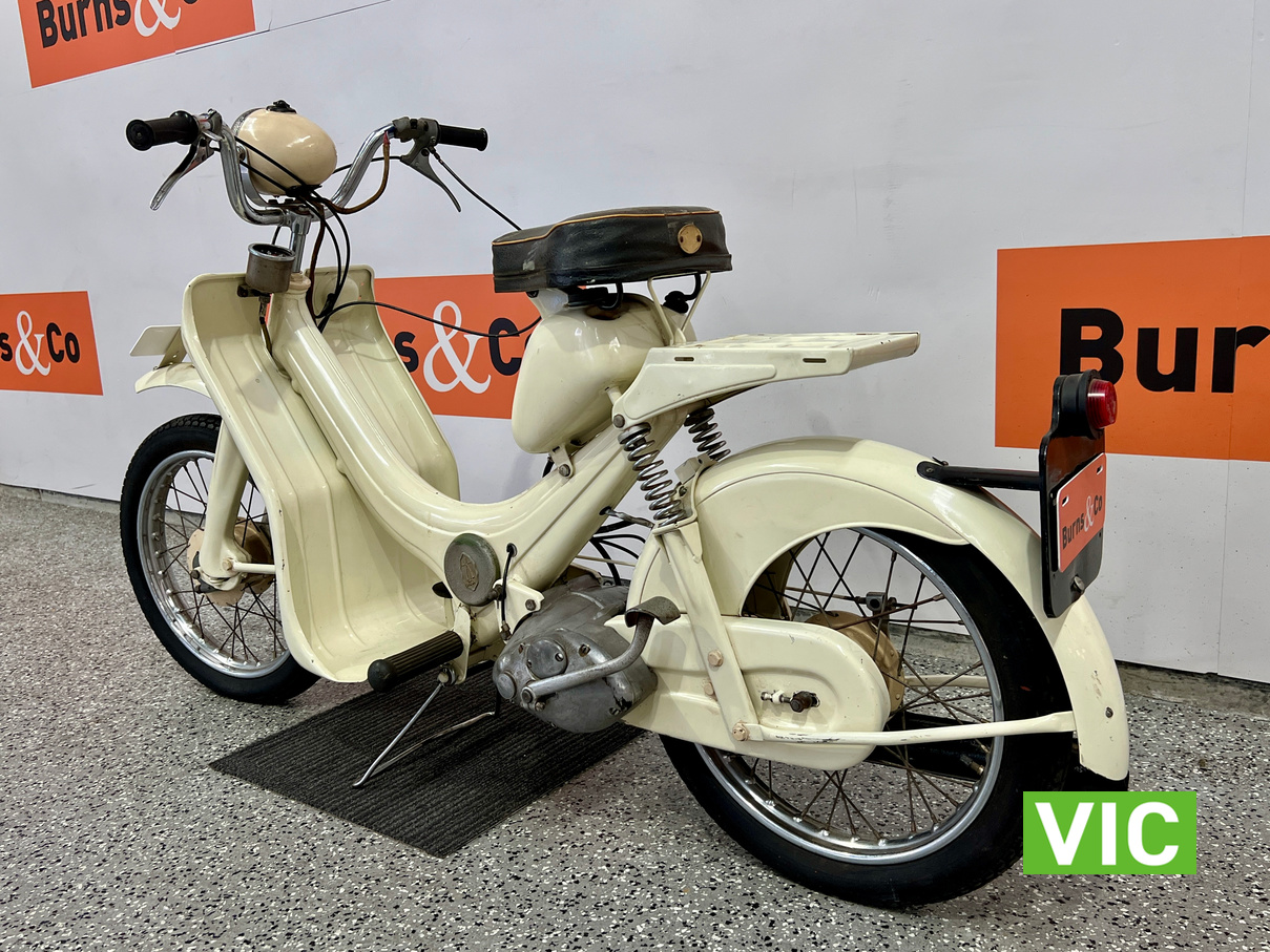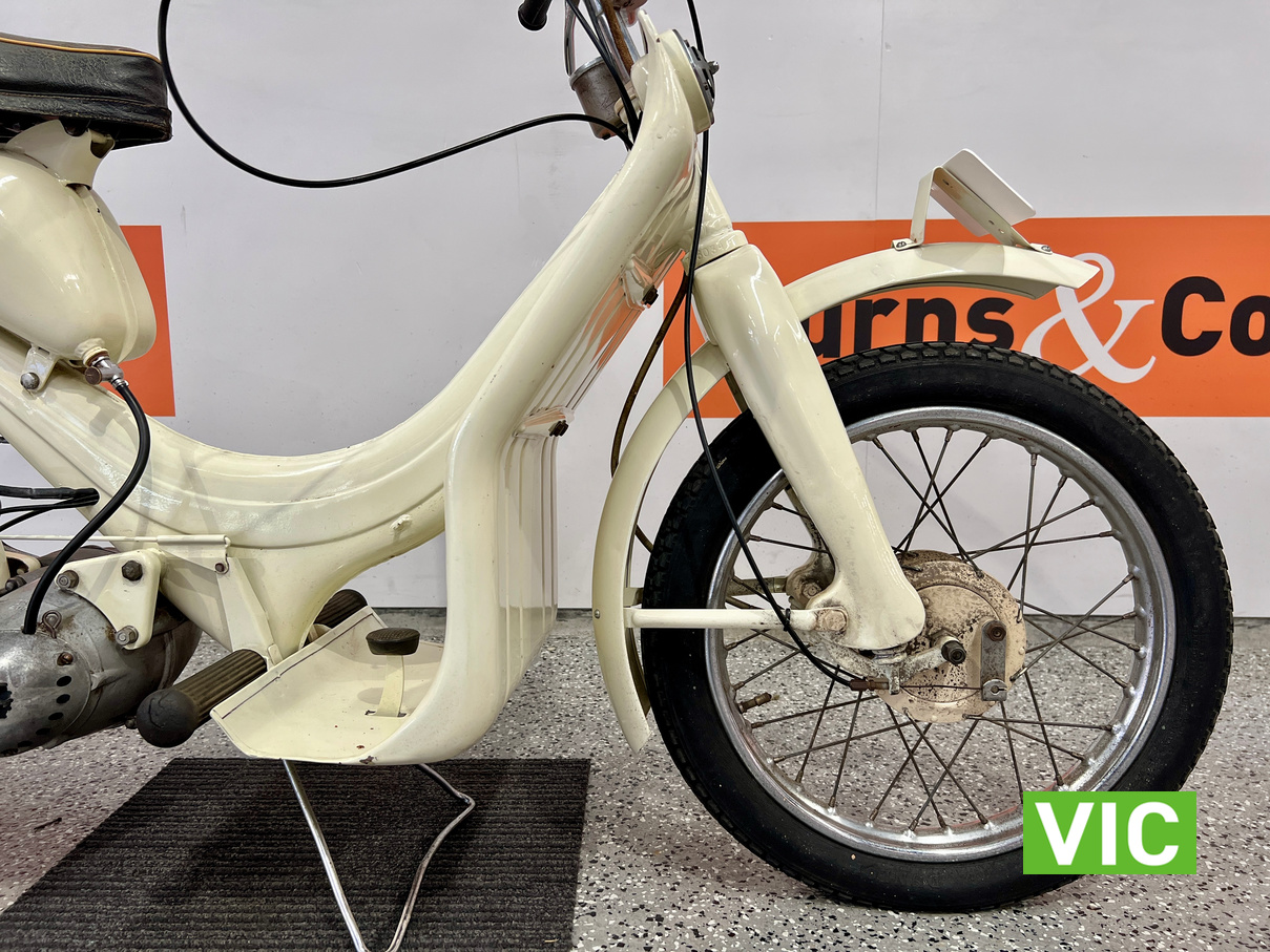 Well that’s just dandy! Original BSA Dandy fitted with a 70cc engine. This classic “scooterette” produced by the British Small Arms Company (BSA) between roughly 1956 and 1962 was designed as a lightweight, affordable commuter to compete with imported mopeds. This one is a rare survivor which would look perfect in the mancave or as a promotional vehicle. Vendor has shown us a video of the motorcycle running and riding approx 3 months ago.