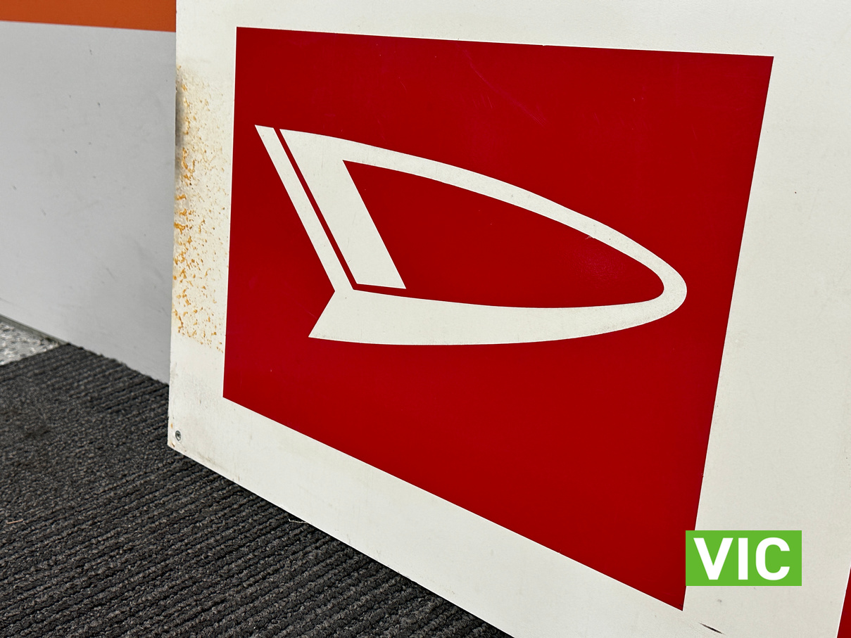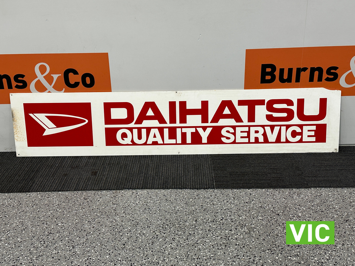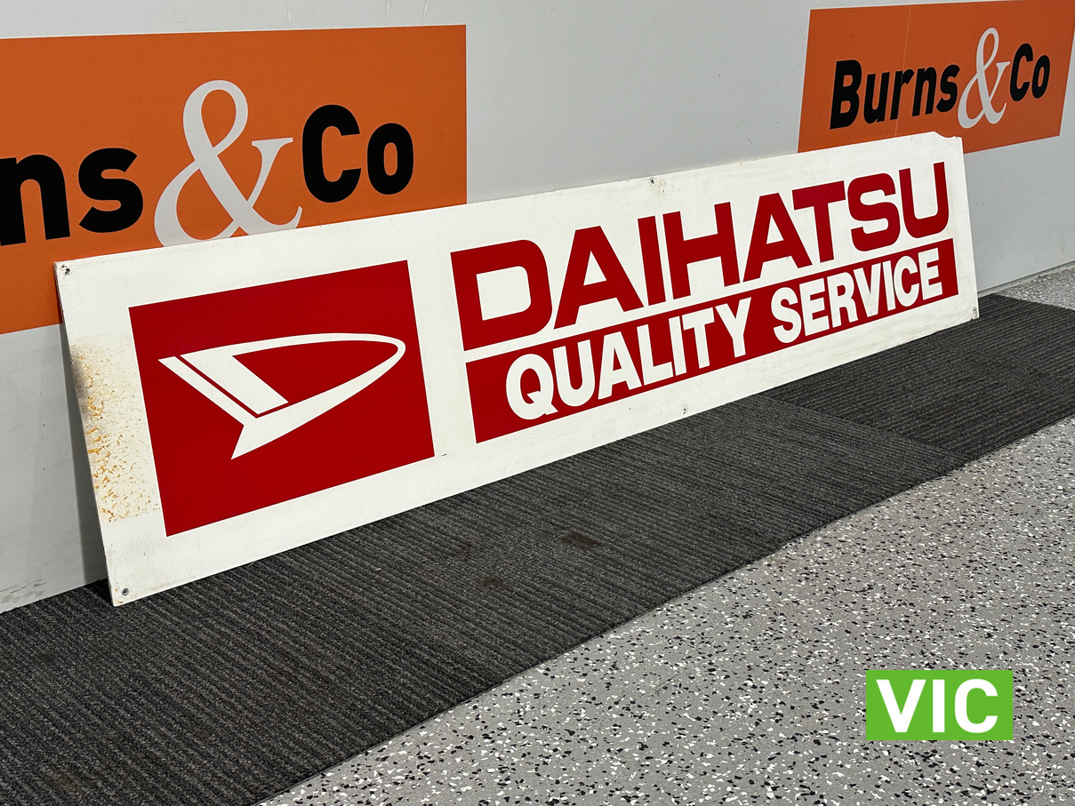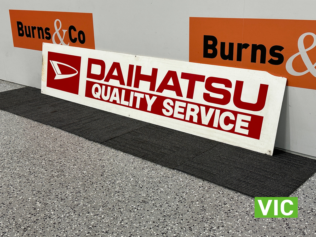 Sturdy, wooden sign that would fit well in a collection of motoring themed memorabilia or next to a Daihatsu in the garage.