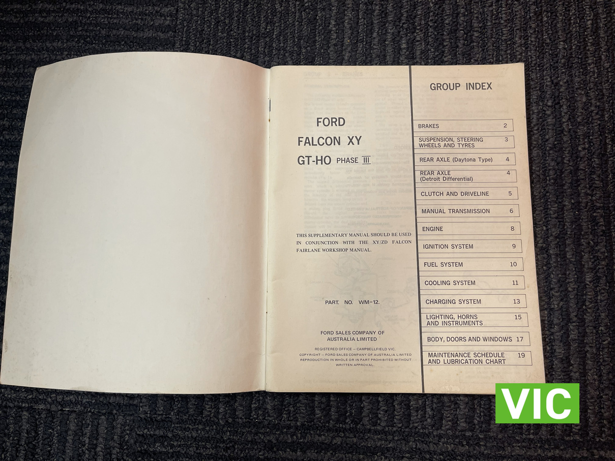 Genuine Ford Falcon XY GT-HO Phase III Manual.